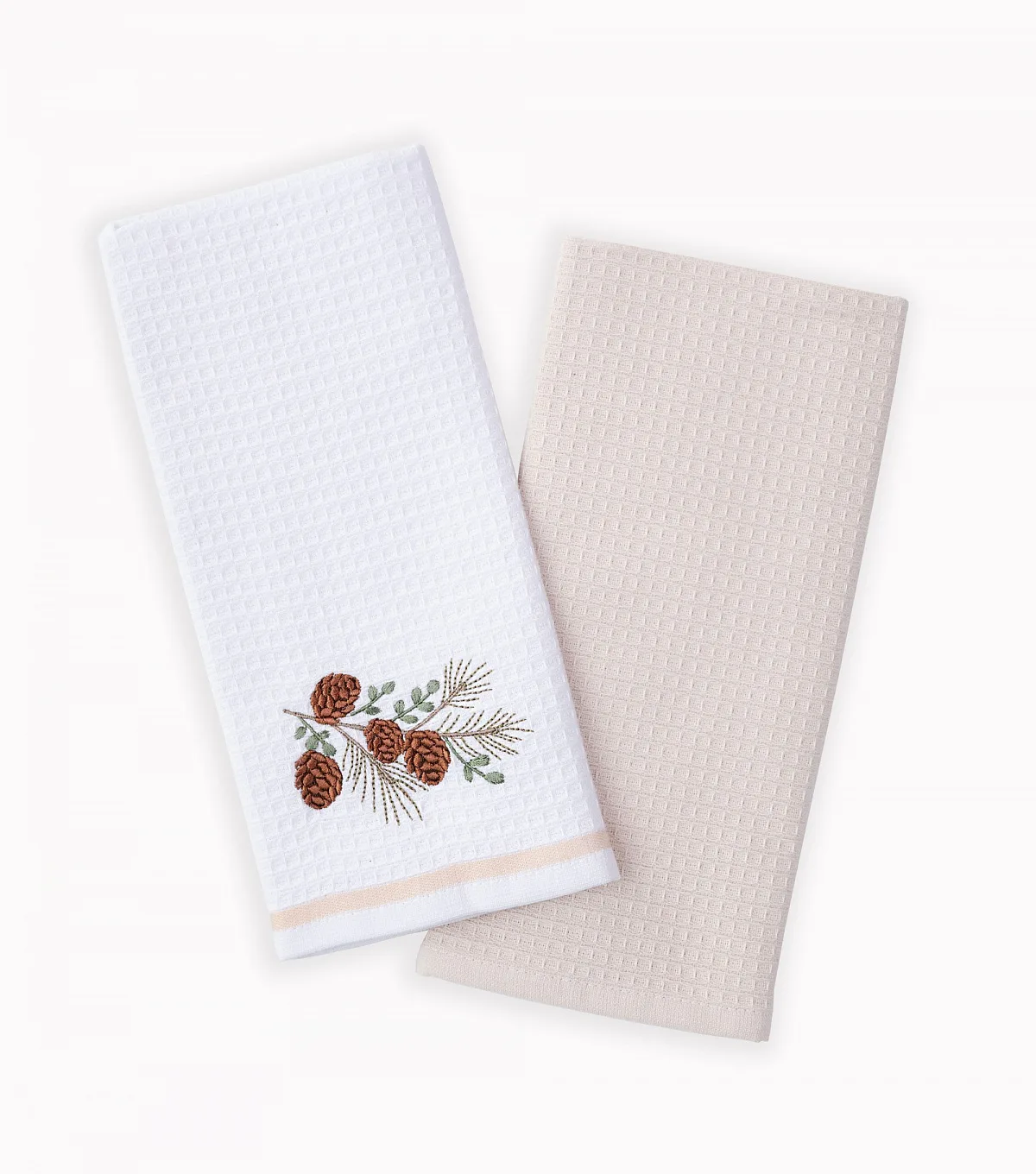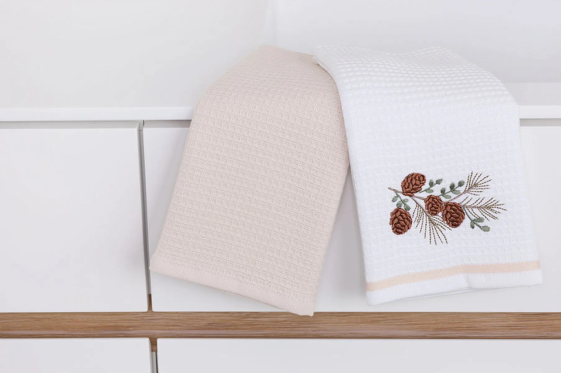Atraktivní a precizně provedené lesklé výšivky se skvěle doplňují s okouzlujícími barevnými odstíny napříč celou kolekcí vaflových utěrek.