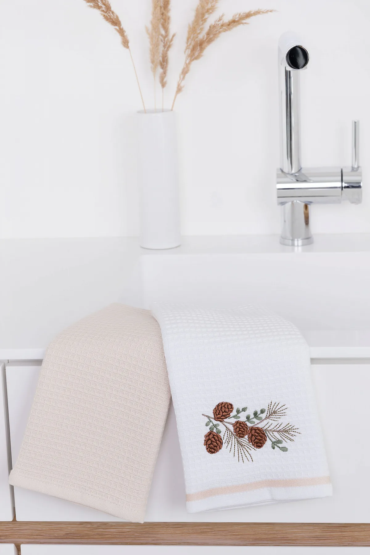• 1x bílá utěrka s výšivkou a béžovou bordurou