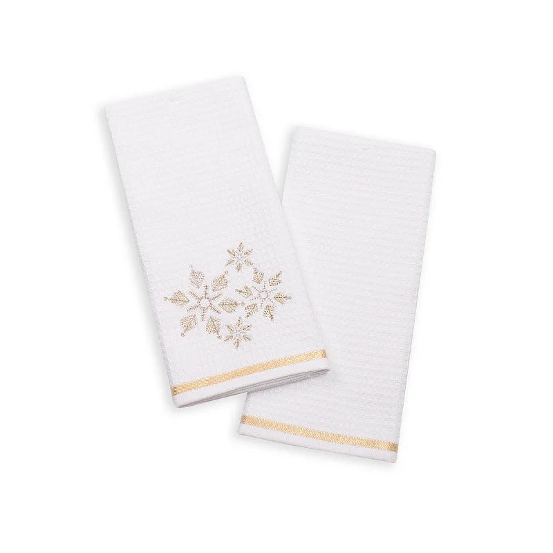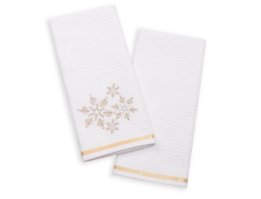 Atraktivní a precizně provedené lesklé výšivky se skvěle doplňují s okouzlujícími barevnými odstíny napříč celou kolekcí vaflových utěrek.