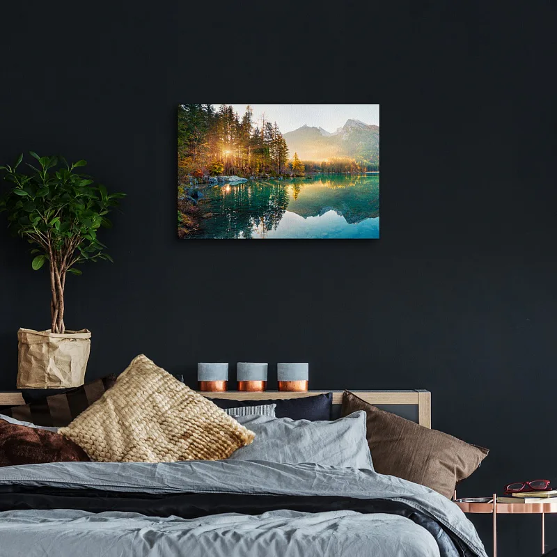 Dodejte interiéru nevšední atmosféru s obrazem Ezers. Vzor obrazu je vytištěn na prémiovém bavlněném plátně s nepravidelnou strukturou canwas PowerSol Satin. Povrch je odolný proti protržení a navíc dodává plátnu sametový vzhled. Obraz dodáváme již napnutý na dřevěném rámu, je opatřen závěsem pro umístění na stěnu.