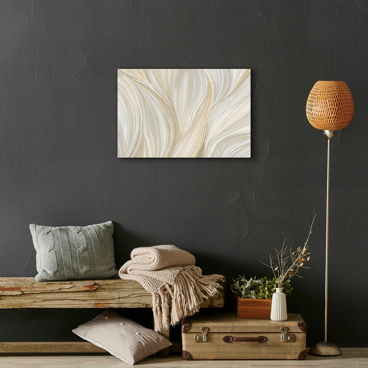 Dodejte interiéru nevšední atmosféru s obrazem Infinitum Beige. Vzor obrazu je vytištěn na prémiovém bavlněném plátně s nepravidelnou strukturou canwas PowerSol Satin. Povrch je odolný proti protržení a navíc dodává plátnu sametový vzhled. Obraz dodáváme již napnutý na dřevěném rámu, je opatřen závěsem pro umístění na stěnu.