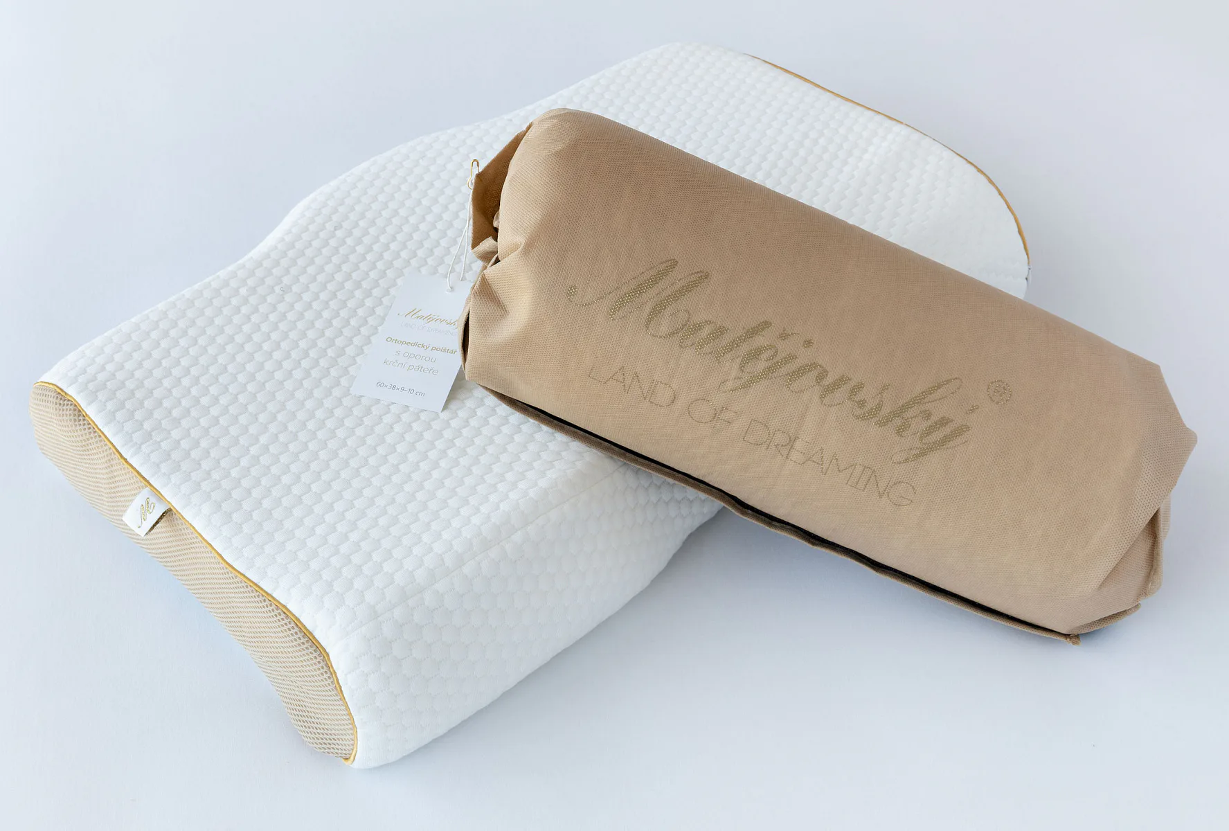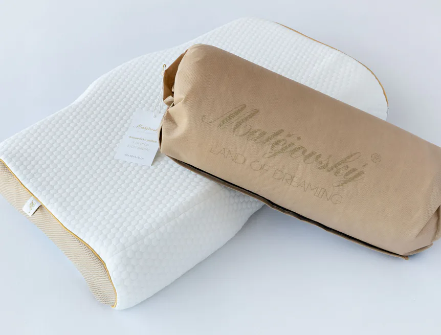 Balení: Anatomický polštář je balený v praktickém povlaku z netkané textilie, který vám umožní polštář znovu zabalit a uskladnit.