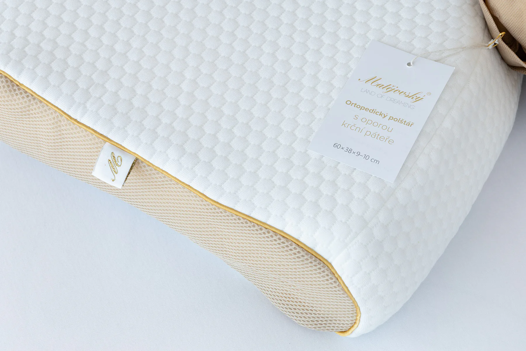Ortopedický polštář s oporou krční páteře je ideální volbou pro spánek na boku, na zádech i na břiše. Díky inovativnímu ergonomickému tvaru a paměťové visco pěně podporuje přirozené zakřivení krční páteře a uvolňuje tlak na šíji i ramena. Pomáhá předcházet bolestem krku, hlavy, ramen i zad a přispívá ke zdravému a spokojenému spánku.