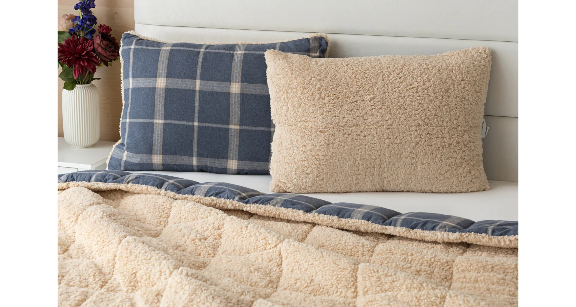 Nová kolekce flanelových polštářů s beránkem vám zajistí jedinečný tepelný komfort a úžasné pohodlí během sychravých dnů, chladných večerů a zimních nocí. Vrchní stranu polštáře tvoří hebký flanel s jemným chloupkem, spodní stranu pokrývá hřejivý nadýchaný beránek. Vrchní potah je snímatelný s praktickým zipovým uzávěrem na boku. Vnitřní výplň tvoří nadýchané polyesterové nano vlákno, které chrání potah z netkané textilie.
