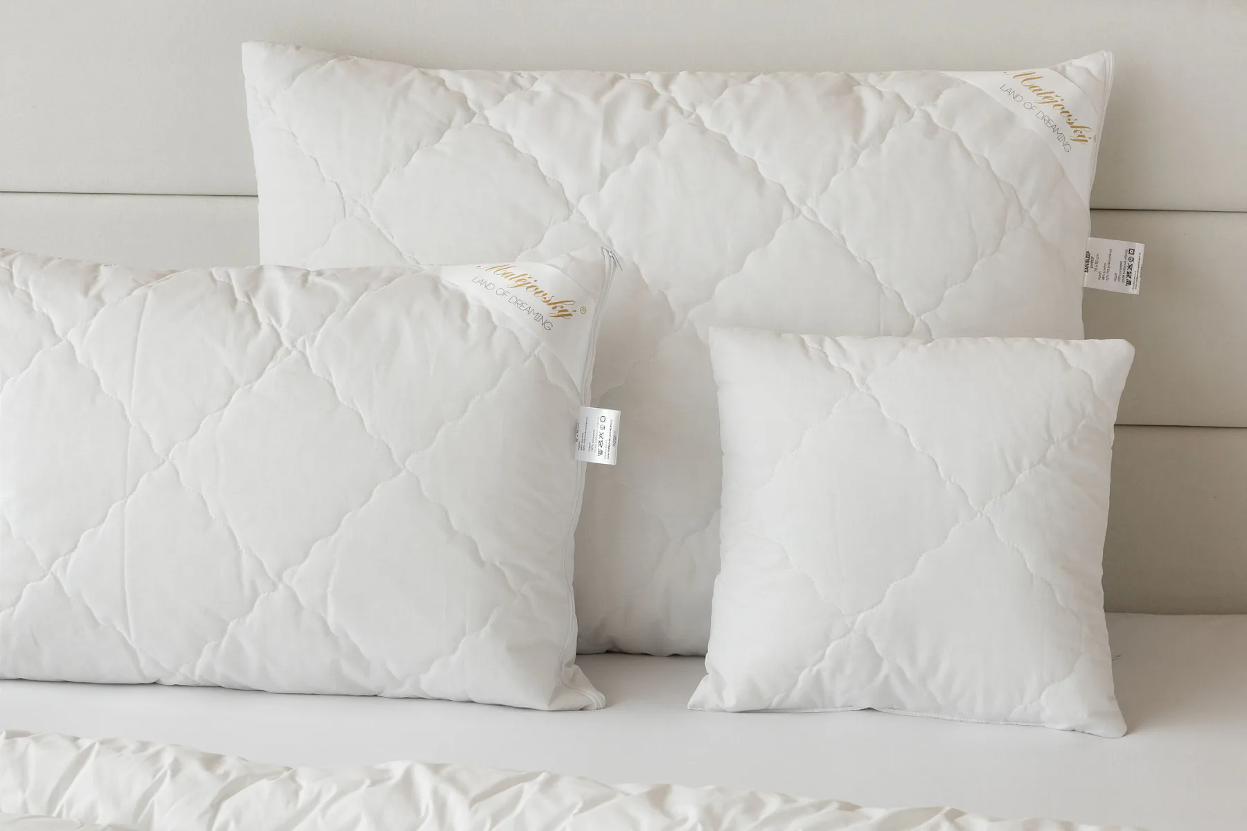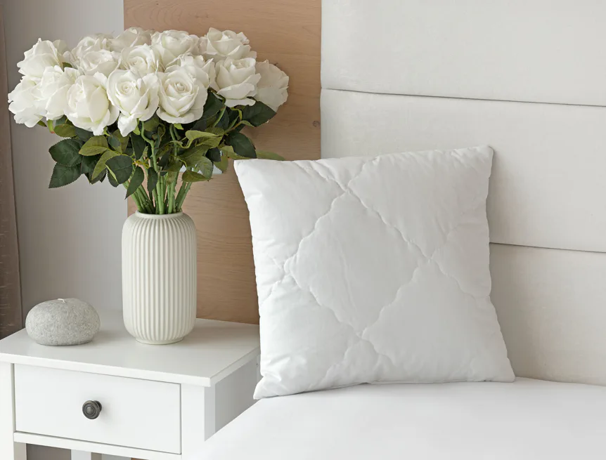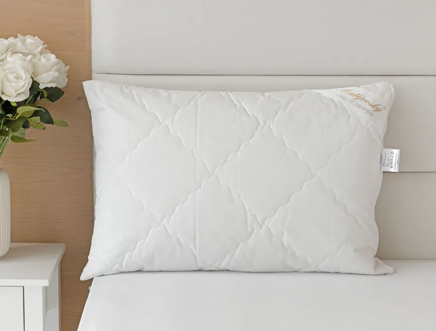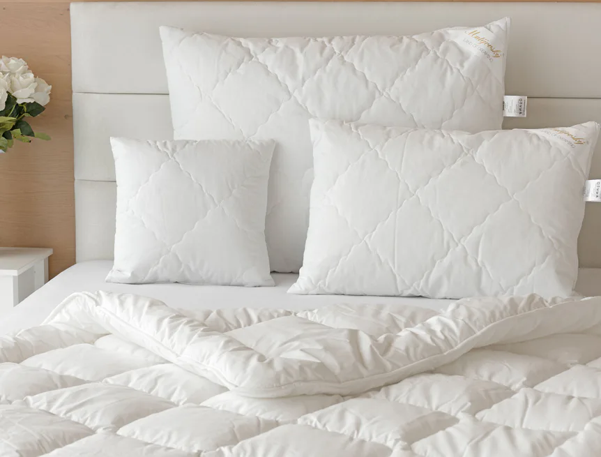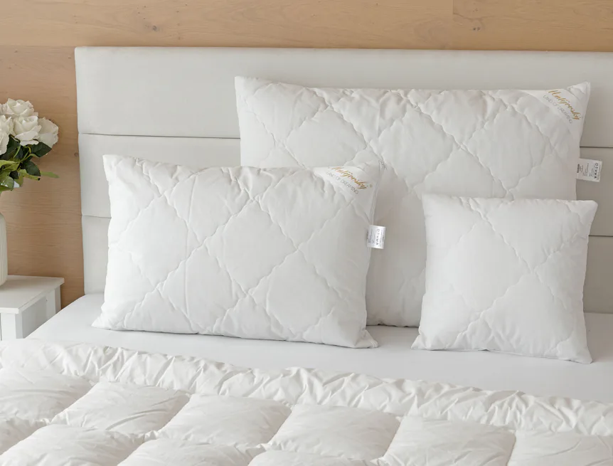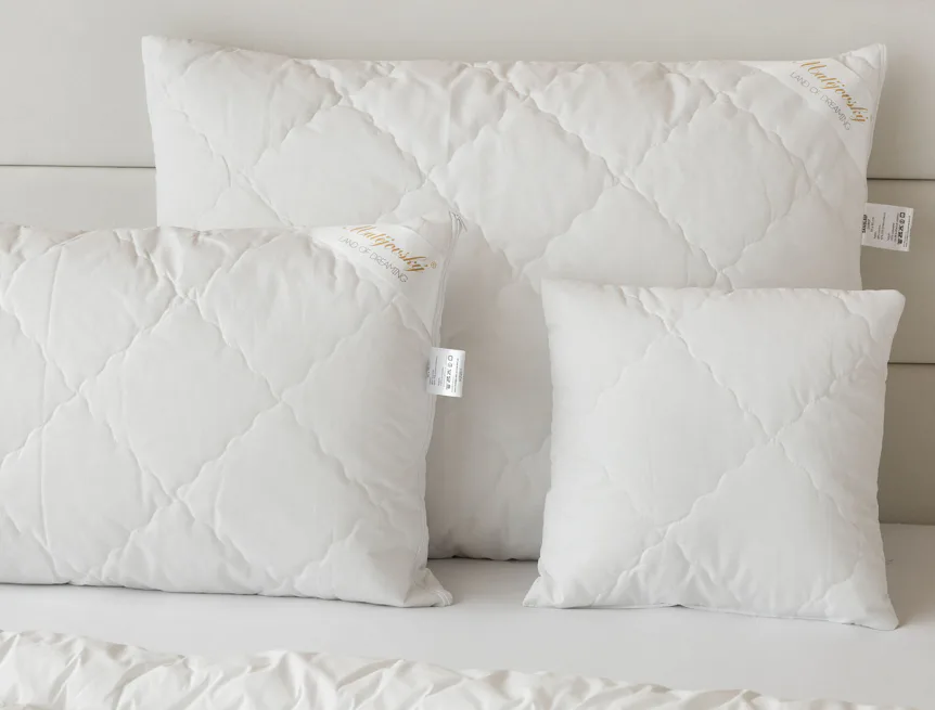 Díky použití odolných materiálů zůstávají polštáře nadýchané a tvarově stálé i po opakovaném praní při vysoké teplotě. Potah z broušeného mikrovlákna s příměsí bavlny je prodyšný a dobře absorbuje vlhkost. Vnitřní výplň polštáře tvoří duté kuličkové vlákno, které je pružné a nesléhá. U větších polštářů lze regulovat objem přidáním či odebráním kuličkové výplně.
