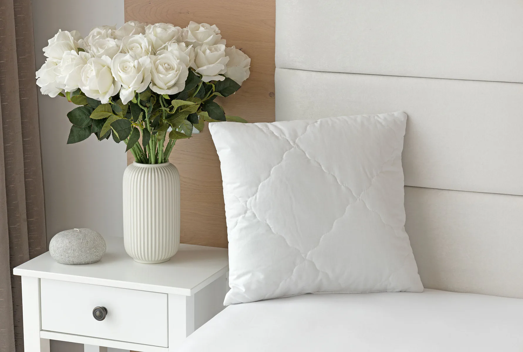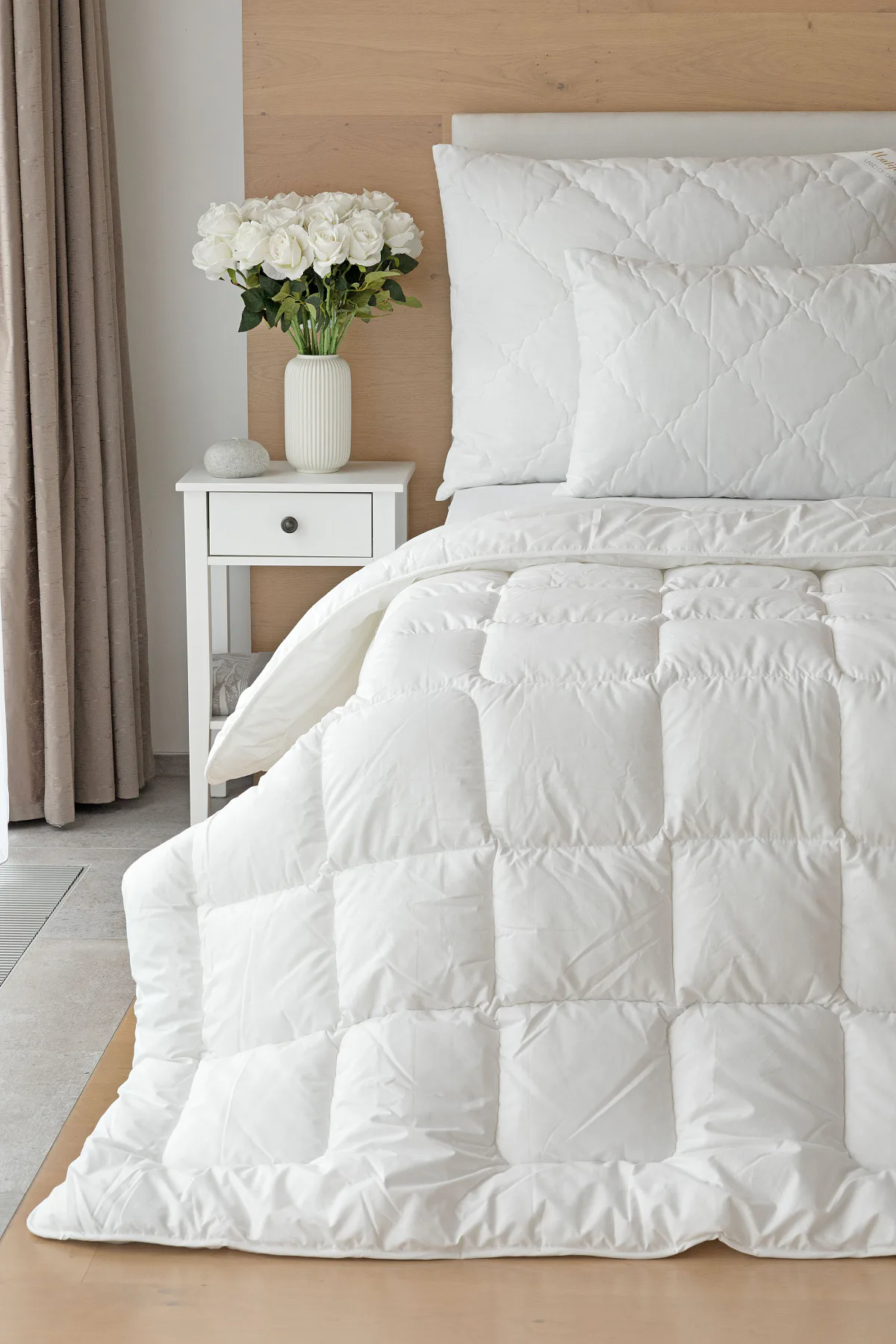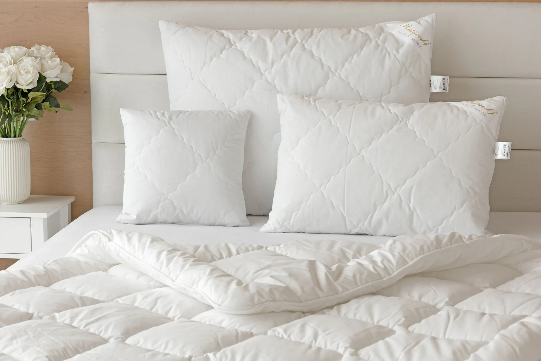 Díky použití odolných materiálů zůstávají polštáře nadýchané a tvarově stálé i po opakovaném praní při vysoké teplotě. Potah z broušeného mikrovlákna s příměsí bavlny je prodyšný a dobře absorbuje vlhkost. Vnitřní výplň polštáře tvoří duté kuličkové vlákno, které je pružné a nesléhá. U větších polštářů lze regulovat objem přidáním či odebráním kuličkové výplně.