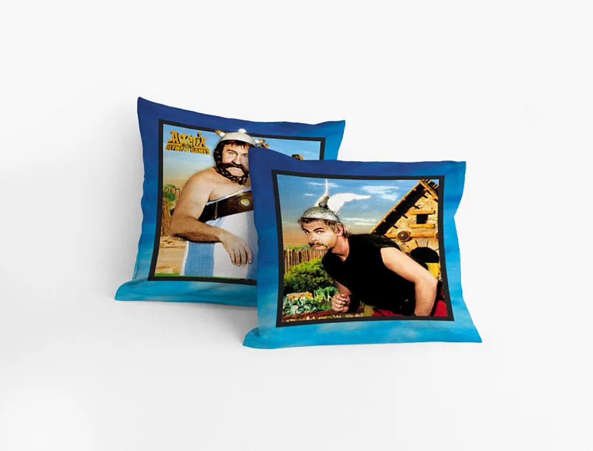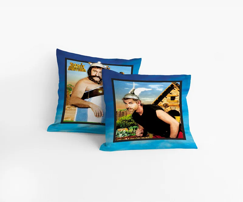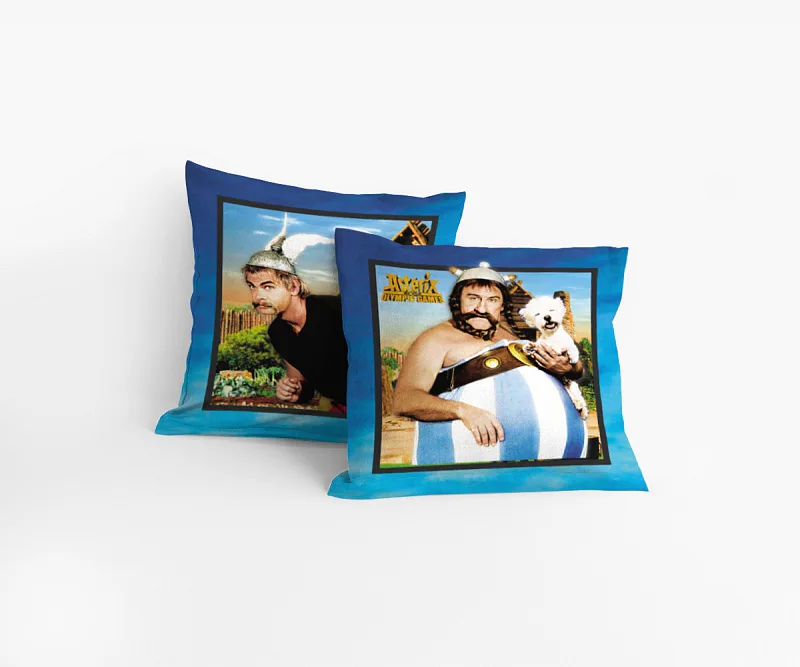 Oblíbené hrdiny Asterixe a Obelixe v jejich filmové podobě můžete mít i na polštářích. Rozveselí dětskou postýlku i pokojíček. Na ilustrační fotografii je znázorněna vrchní a spodní strana povlaku.