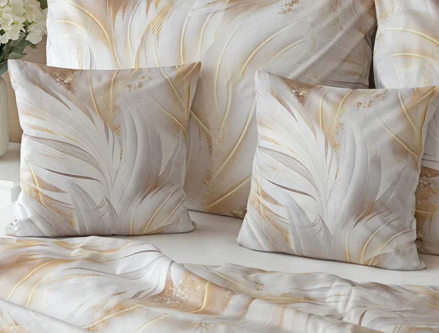 Dokonale vyladěný interiér se neobejde bez stylových polštářků! O nádherné barvy a precizní detaily povlaku Ember vyrobeného z luxusního bavlněného mako saténu se postarala nejmodernější digitální tisková technologie.