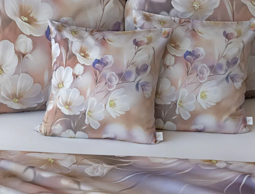 Dokonale vyladěný interiér se neobejde bez stylových polštářků! O nádherné barvy a precizní detaily povlaku Estrella vyrobeného z luxusního bavlněného mako saténu se postarala nejmodernější digitální tisková technologie.