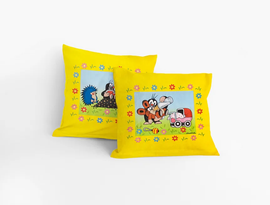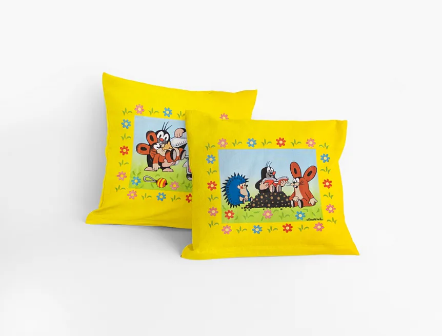 Veselý povláček s postavičkami Krtka a jeho kamarádů. Povláček je vyrobený ze 100% bavlny a je opatřen zipovým uzávěrem.