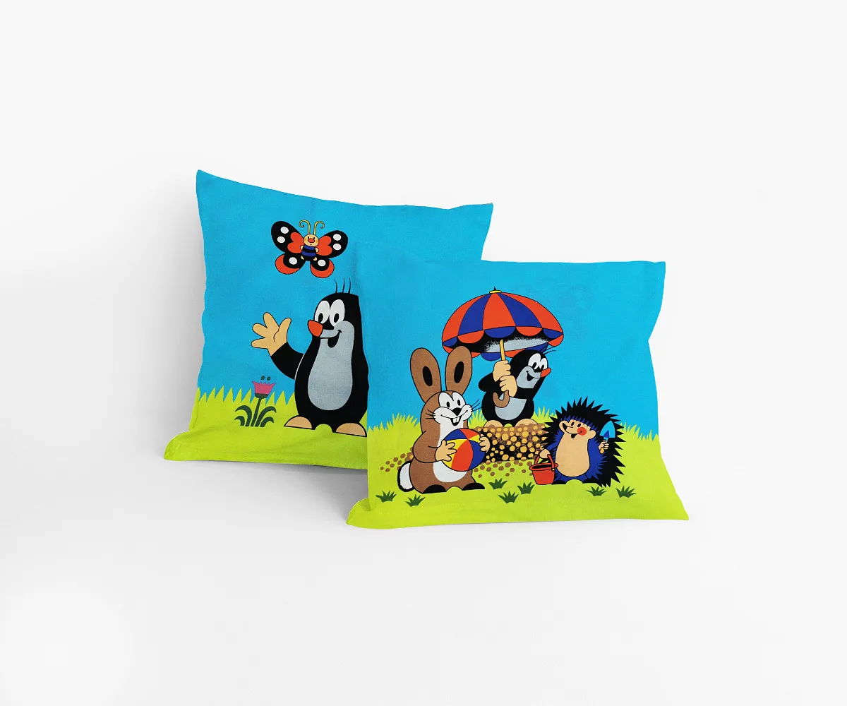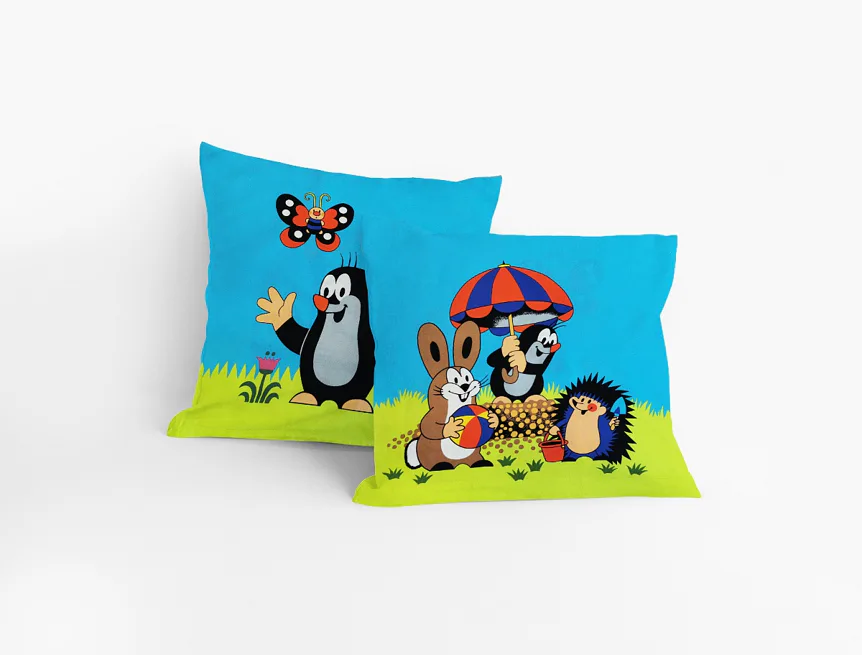 Krtek a jeho přátelé na veselých polštářcích budou veselým doplňkem každého dětského pokojíčku. Komfortní provedení ve 100 % bavlně, opatřeno zipovým uzávěrem. Na ilustrační fotografii je vyobrazena přední a zadní strana jednoho kusu povlaku.