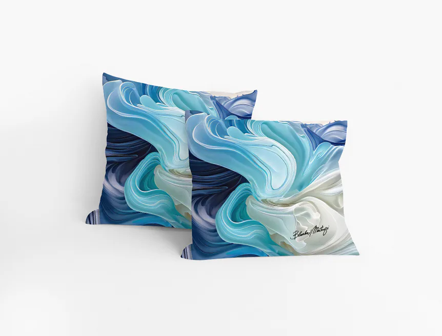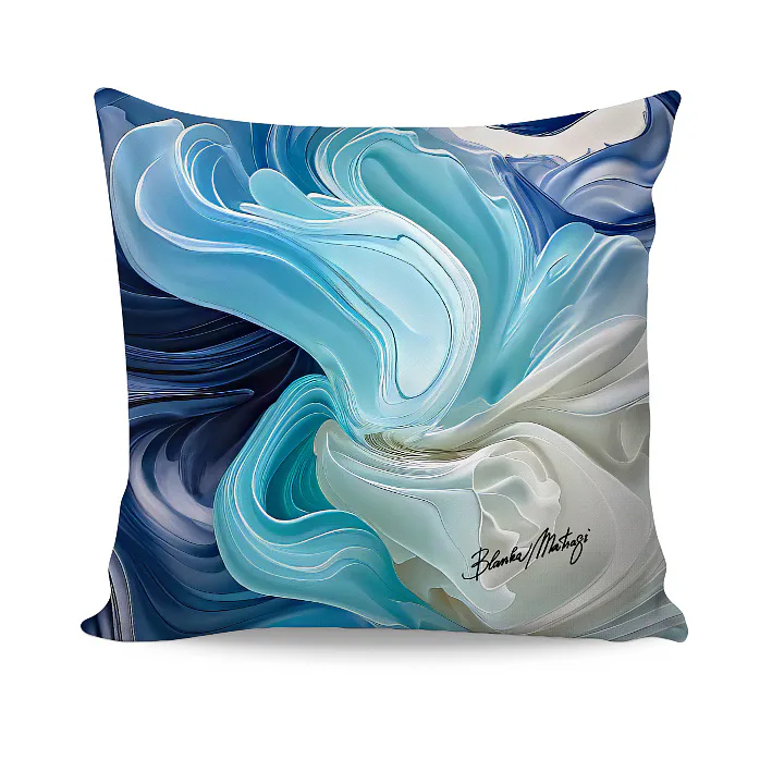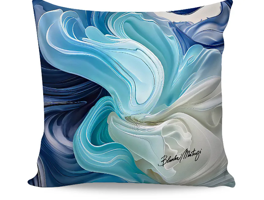 "Zrození z mořské pěny. Modré tóny vyjadřují klid, uvolněnost, mír, věrnost a oddanost. Modrá uklidňuje, podněcuje intuici a vnímání. Nechala jsem se unášet, jako bych plula na jemných vlnách." (Blanka Matragi)