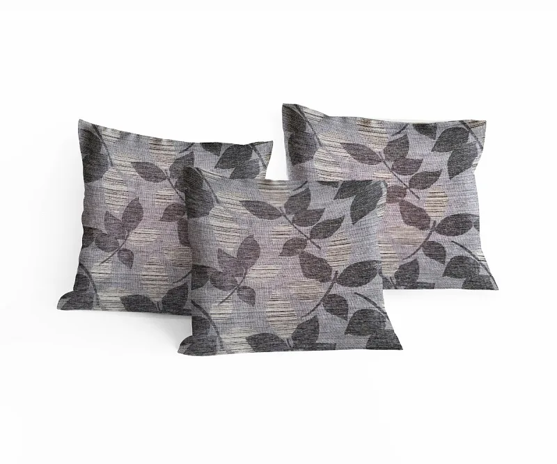 Doplňte svůj interiér elegantními dekoračními povlaky Melissa. Proužkovanou strukturu doplňuje jemný lístečkový vzor, jehož výsledná barevnost se skládá z perfektně sladěných odstínů černé, antracitové šedé a šedobéžové. Povlak je opatřen komfortním zipovým uzávěrem.