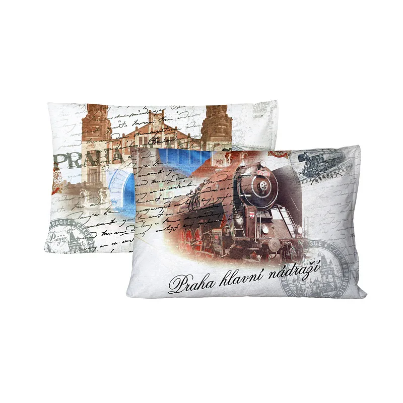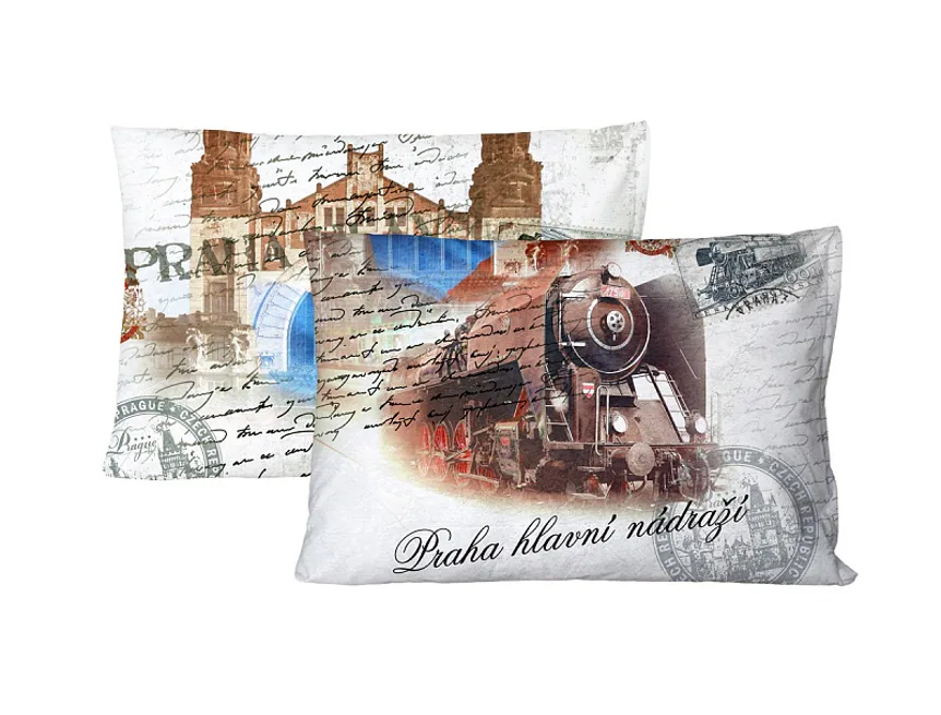 Retro motiv NÁDRAŽÍ PRAHA nadchne především milovníky historické železniční dopravy. Na světle šedém podkladu se vyjímá vkusná koláž - nechybí parní lokomotiva ani budova pražského hlavního nádraží.