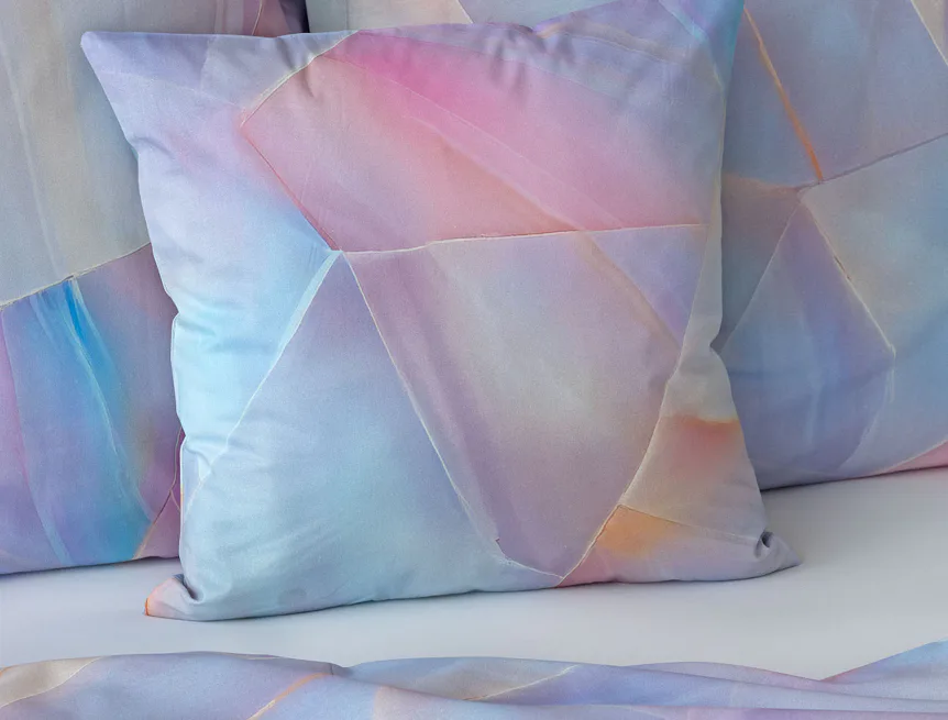 Povlaky jsou šité z metráže, každý kus je proto jiný, resp. zachycuje jinou část vzoru. Přední a zadní strana jednotlivých kusů se rovněž liší s ohledem na zachycenou část vzoru.