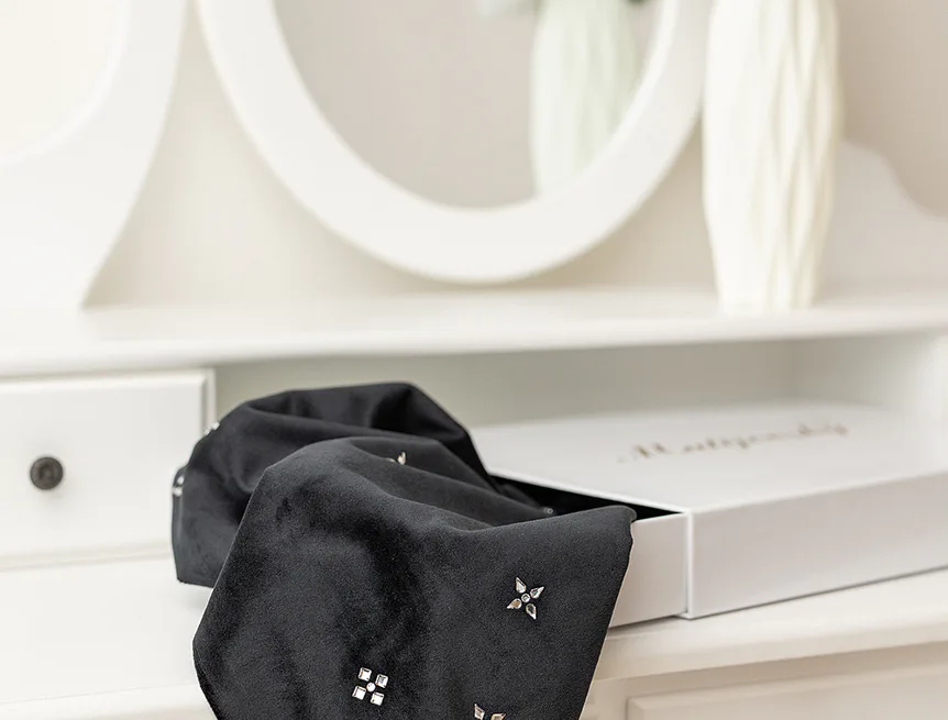 Motivy kolekce vznikaly s důrazem na nadčasovou estetiku, harmonii a dokonalé sladění jednotlivých kamenů. Krystaly vytvářejí působivé vzory – od minimalistických struktur až po výrazné hvězdicové kompozice – a mění každý povlak v estetický klenot, který rozzáří váš domov noblesou a jemným třpytem.