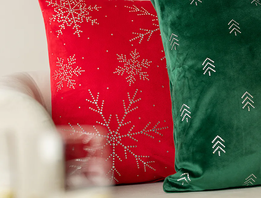 Motivy kolekce vznikaly s důrazem na nadčasovou estetiku, harmonii a dokonalé sladění jednotlivých kamenů. Krystaly vytvářejí působivé vzory – od minimalistických struktur až po výrazné hvězdicové kompozice – a mění každý povlak v estetický klenot, který rozzáří váš domov noblesou a jemným třpytem.
