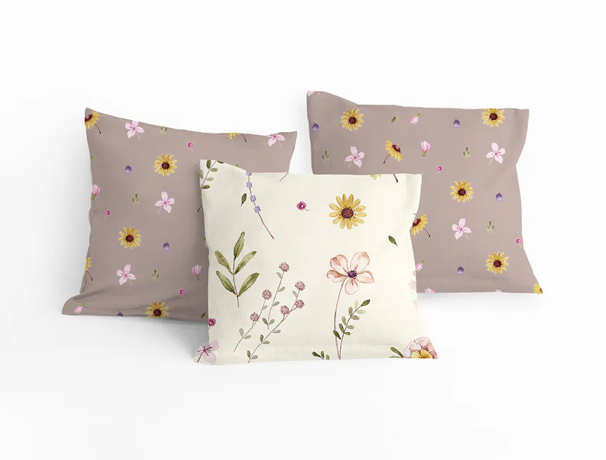 • florální motiv na krémově žlutém podkladu