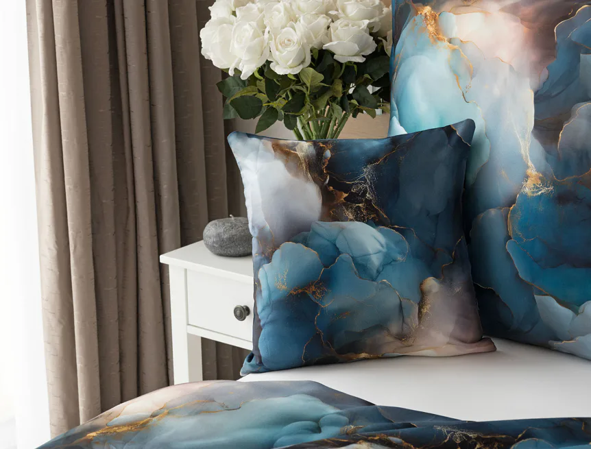 Povlaky jsou šité z metráže, každý kus je proto jiný, resp. zachycuje jinou část vzoru. Přední a zadní strana jednotlivých kusů se rovněž liší s ohledem na zachycenou část vzoru.