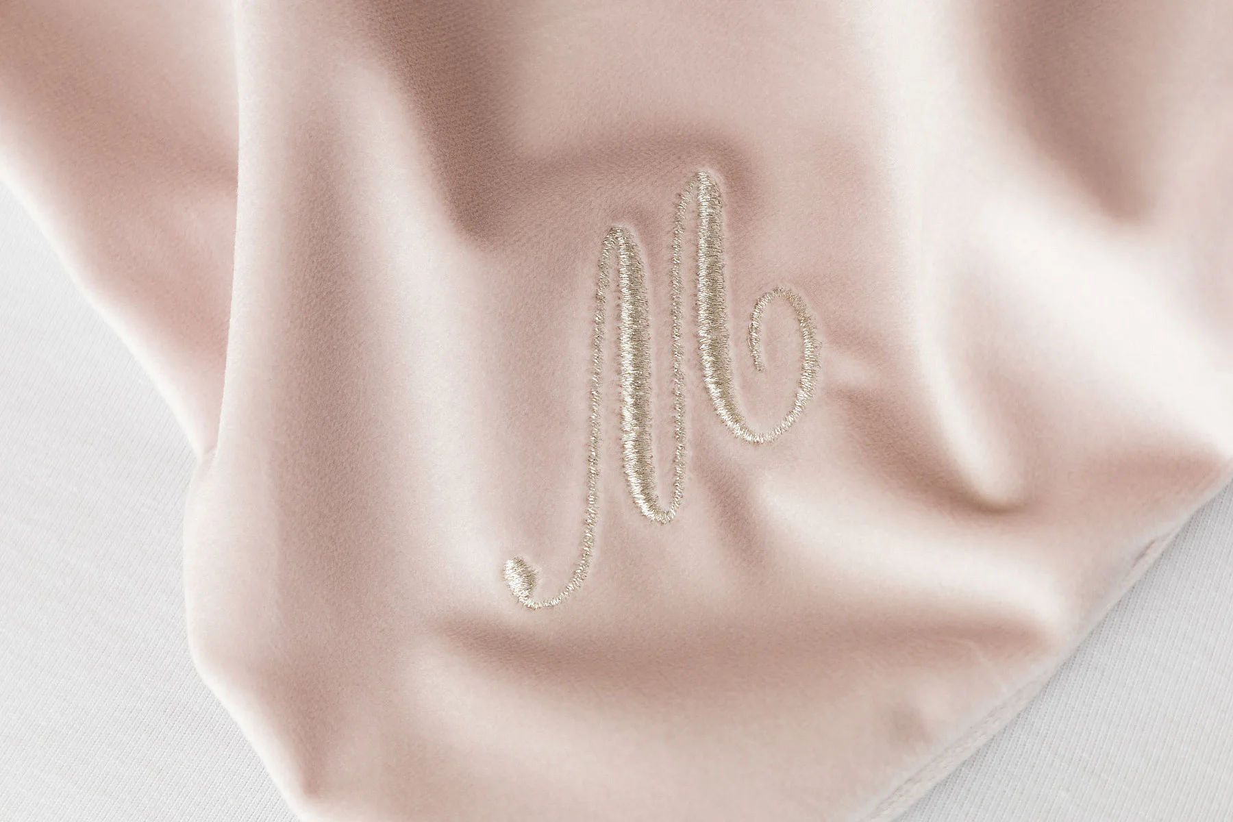 Pro luxusní efekt lze povlaky s výšivkou M skvěle doplnit krystalovými designy z limitované kolekce Matějovský x Preciosa. Vytvářejí společně harmonii mezi noblesním minimalismem a zářivými prvky.