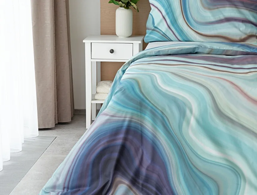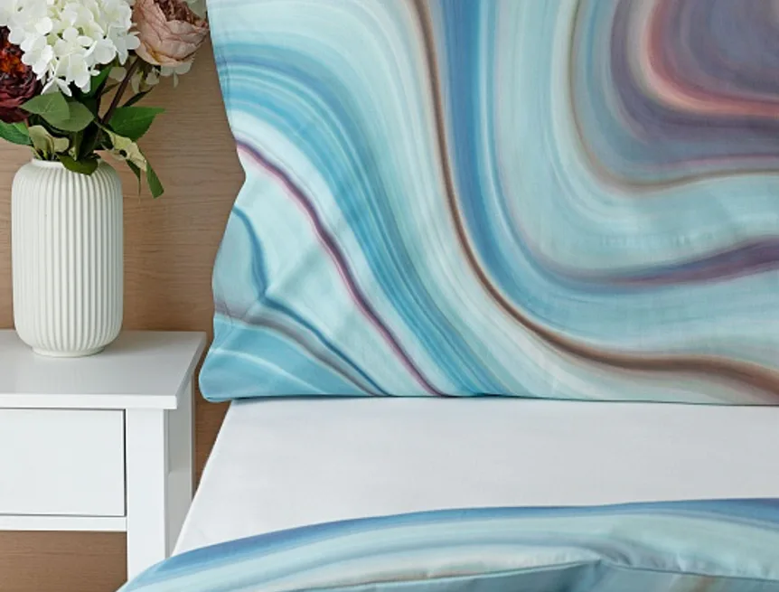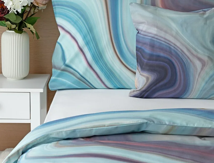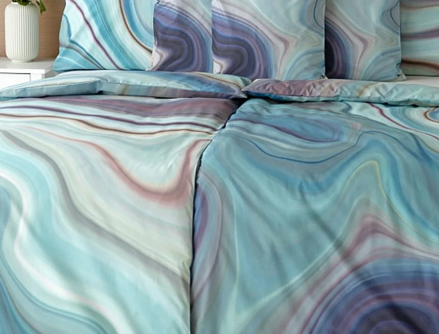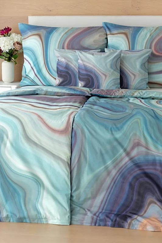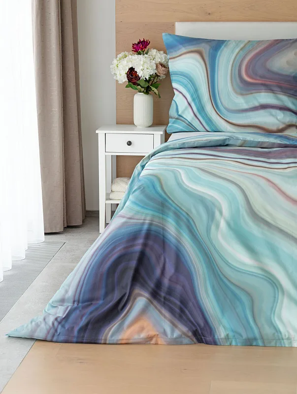 Moderní povlečení Achát se stane skutečným klenotem nejen minimalisticky zařízené ložnice. Nechte se okouzlit noblesně sladěnými barvami, ve kterých se odrážejí jemné tóny odstínů modré, šedé, fialové, starorůžové i zlatavě hnědé.