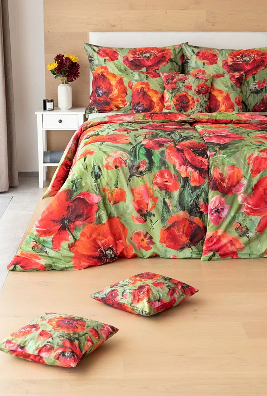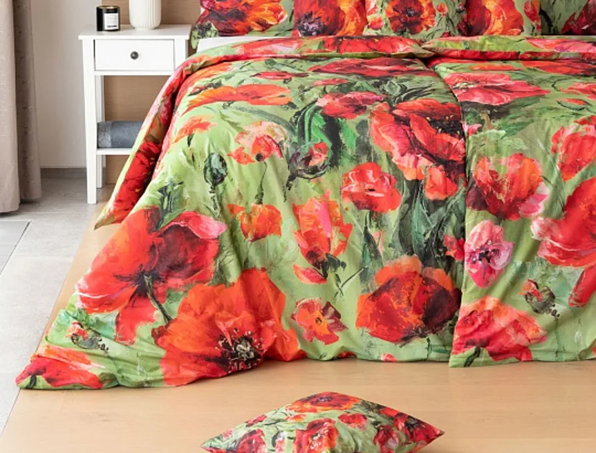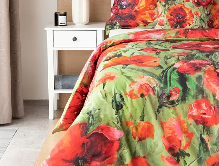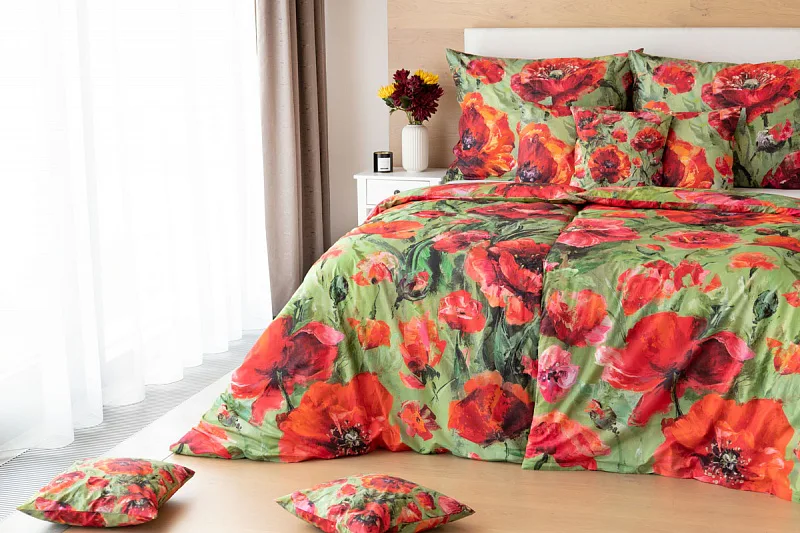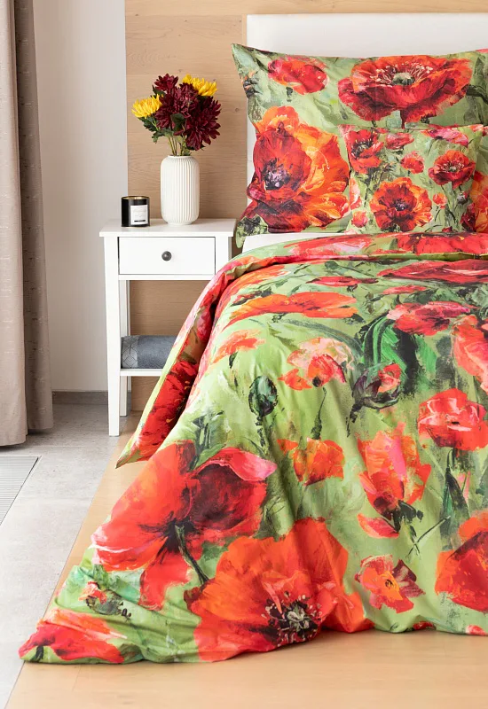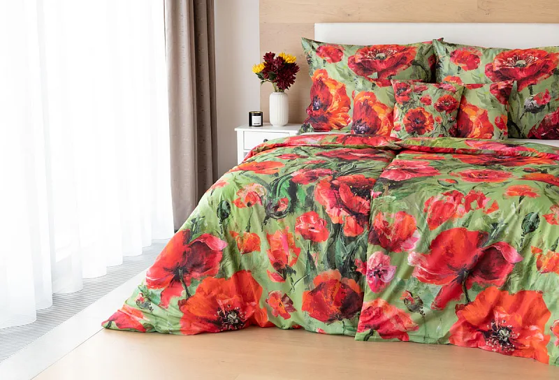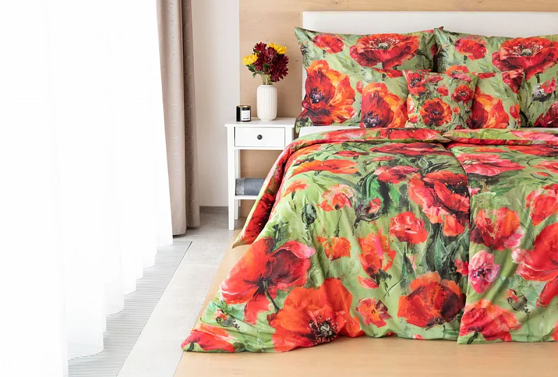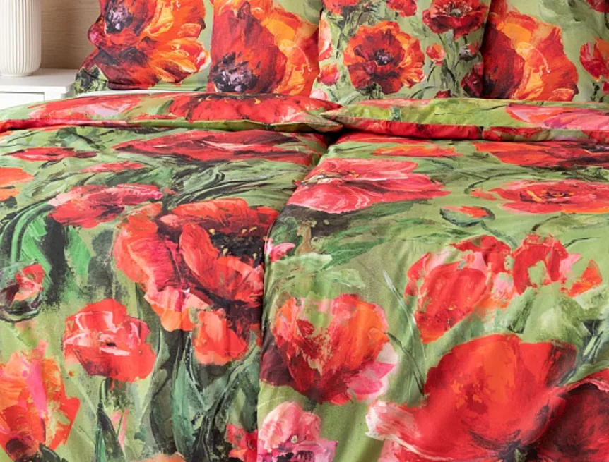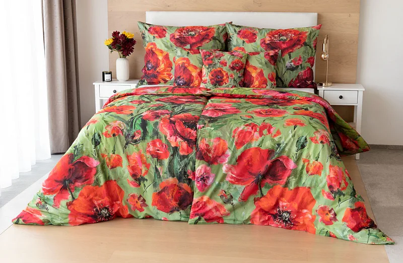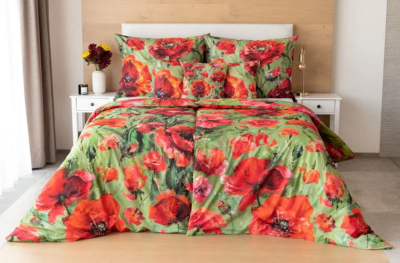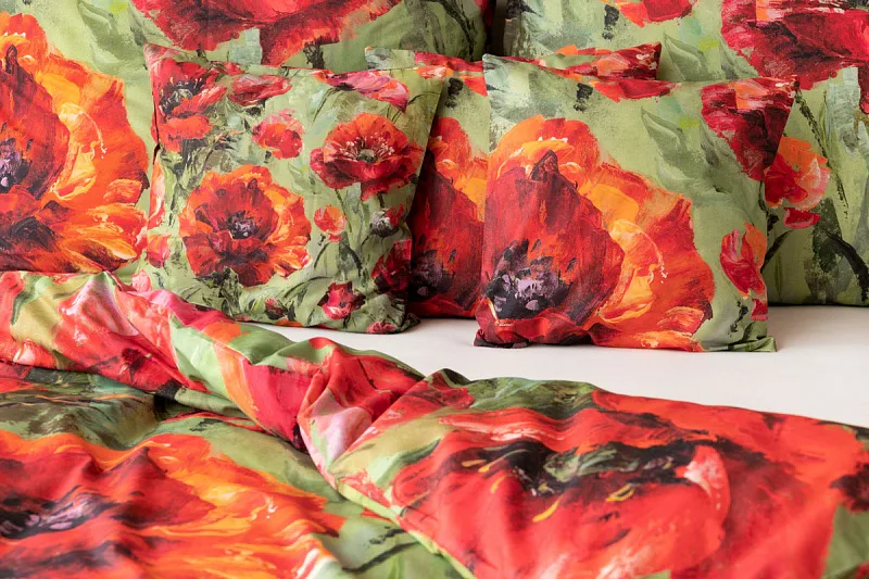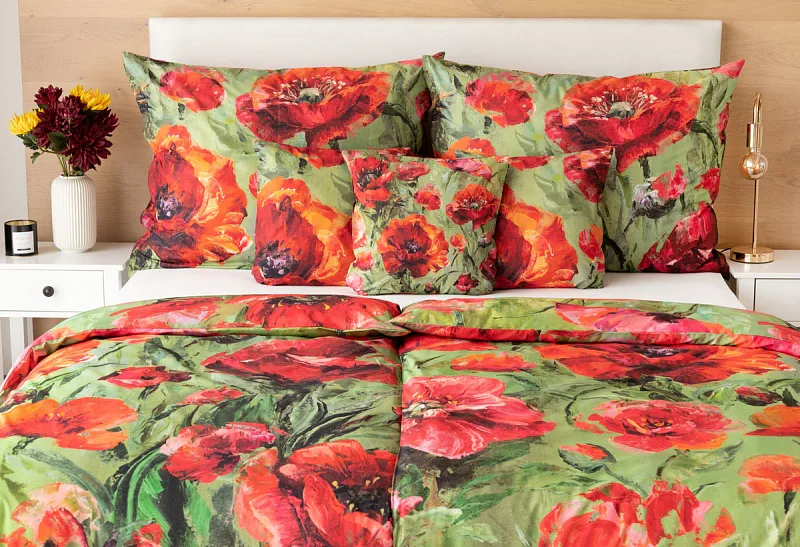 Nalaďte se na svěží jarní notu s okouzlujícím povlečením Alice. Inspirací vzoru se stala pestrá olejomalba vlčích máků, která se díky nejmodernějšímu digitálnímu tisku odráží v precizním detailu.