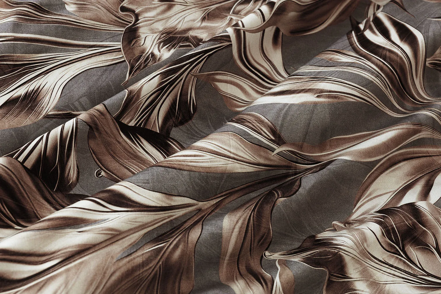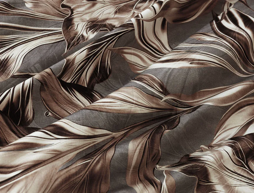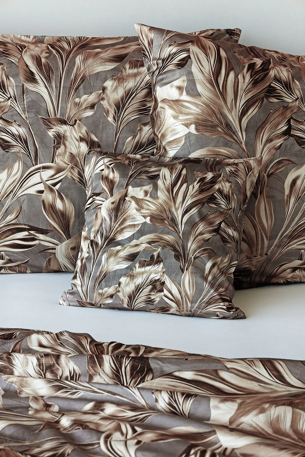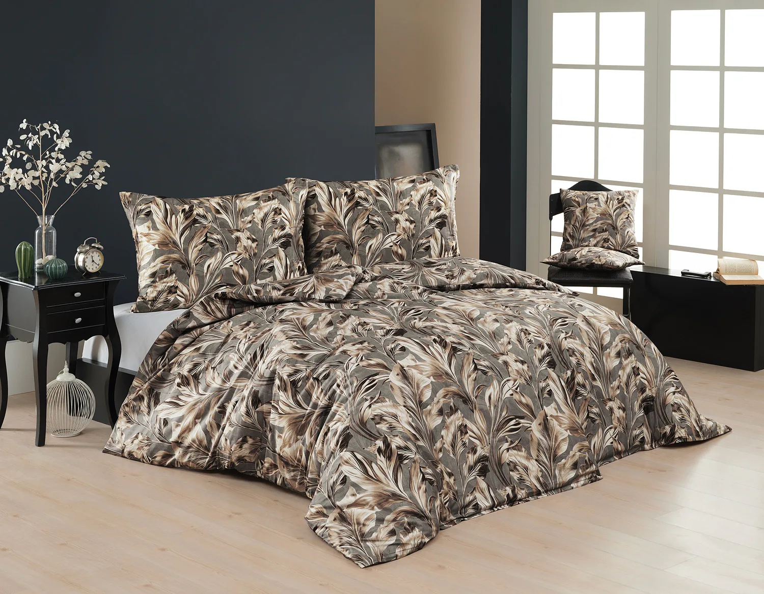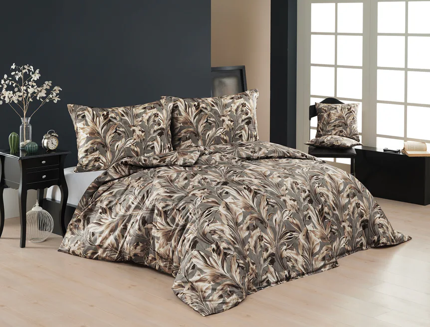 Vzor Ambient zdobí po celé ploše hnědo-zlaté listy na kovově šedém podkladu. Povlak na polštář i na přikrývku je z obou stran stejný, povlečení je opatřeno komfortním zipovým uzávěrem.