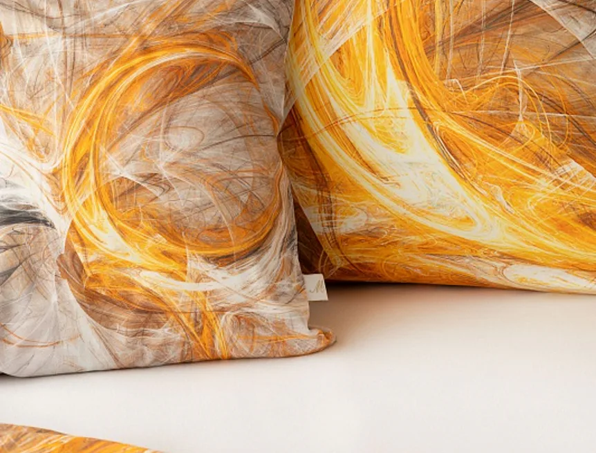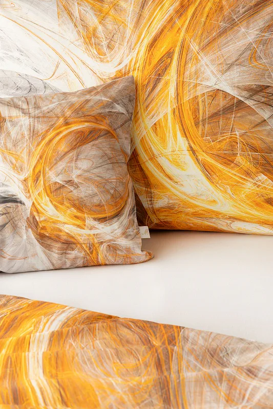 Dynamický vzor povlečení Ambrosia si získá vaši pozornost na první pohled. Umělecký dojem umocňuje originální souhra šedozlatých tónů protnutých v efektní kresbě plné energie. Díky úžasně hebkému mako bavlněnému saténu budete ložní povlečení Ambrosia zbožňovat i na dotek.