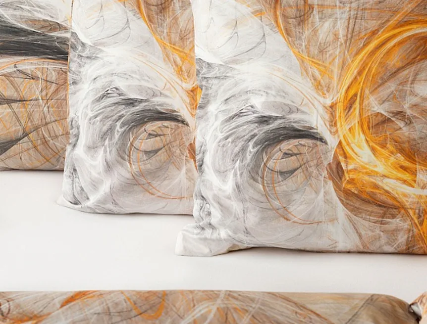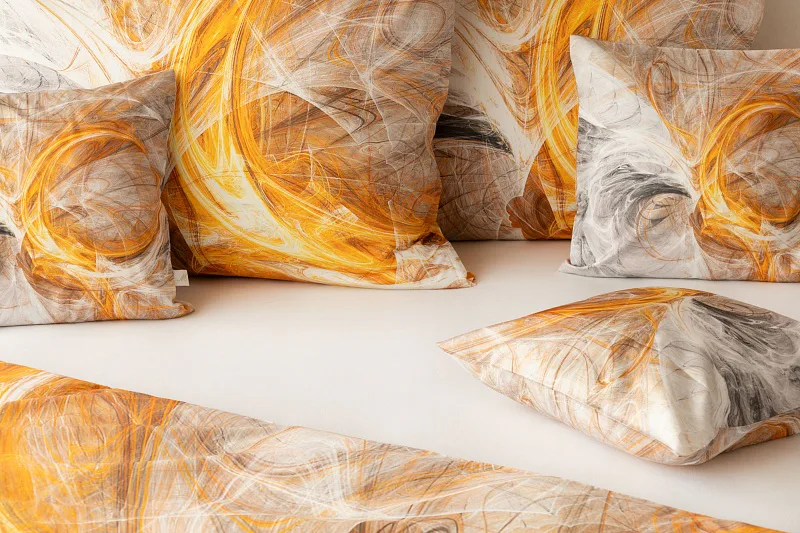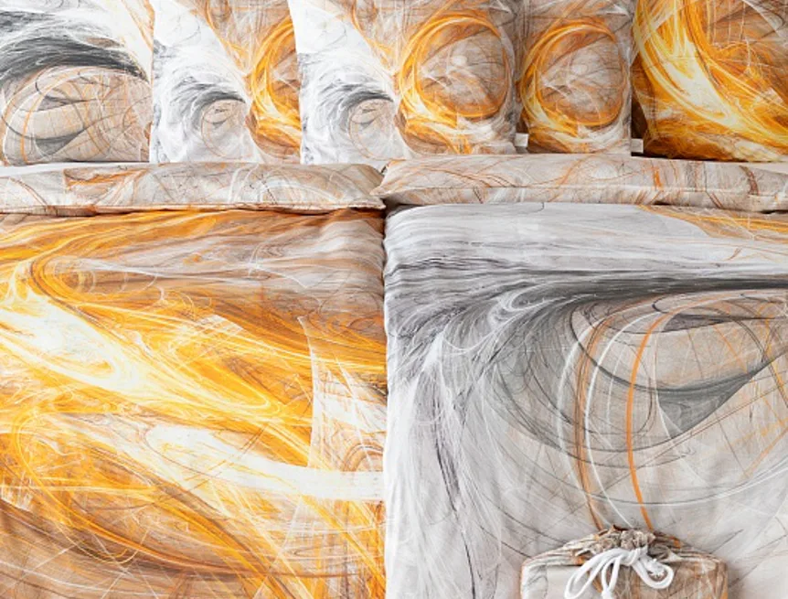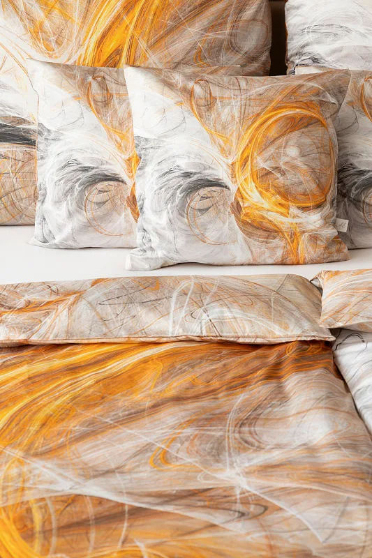 Dynamický vzor povlečení Ambrosia si získá vaši pozornost na první pohled. Umělecký dojem umocňuje originální souhra šedozlatých tónů protnutých v efektní kresbě plné energie. Díky úžasně hebkému mako bavlněnému saténu budete ložní povlečení Ambrosia zbožňovat i na dotek.