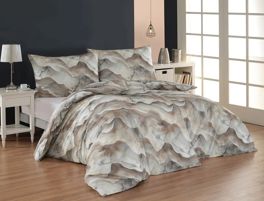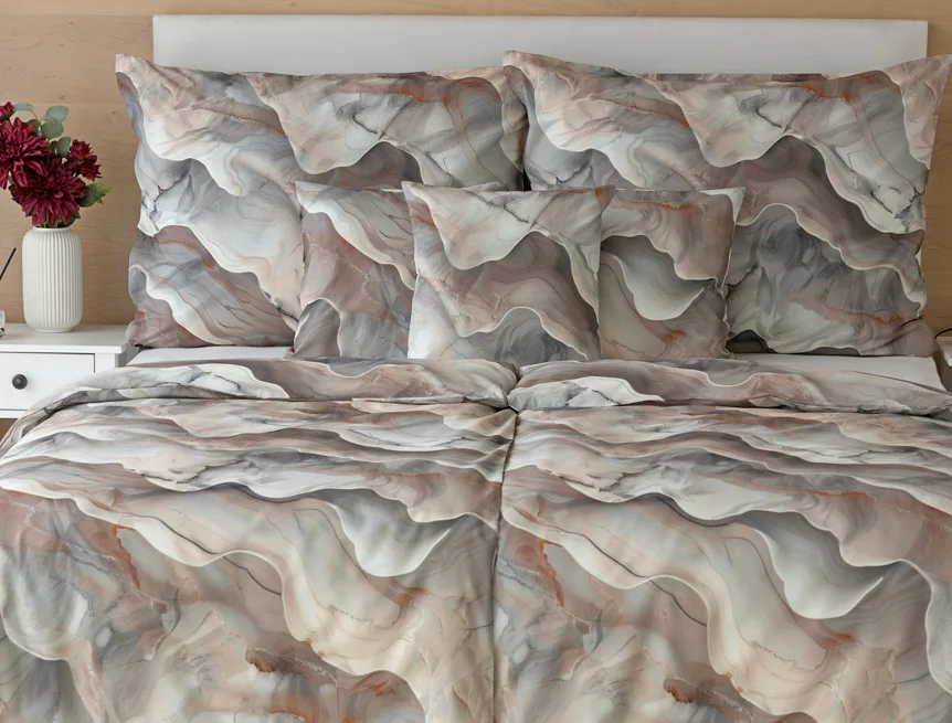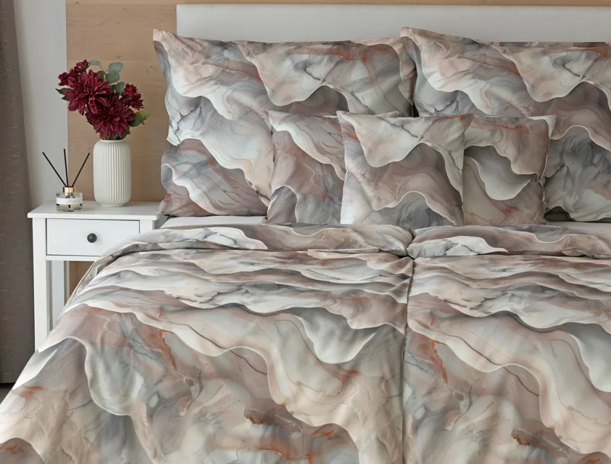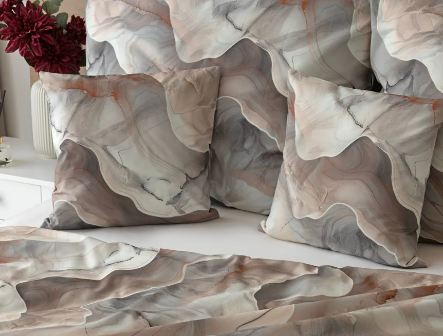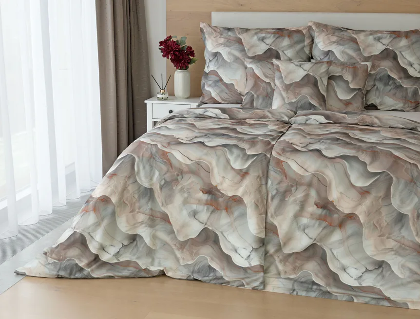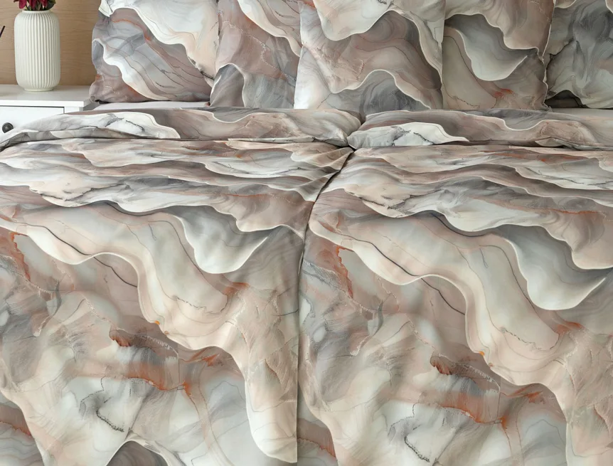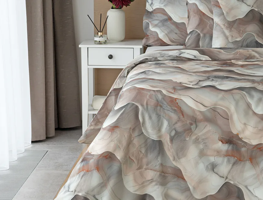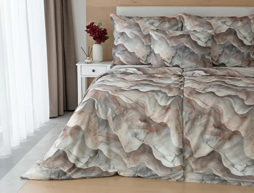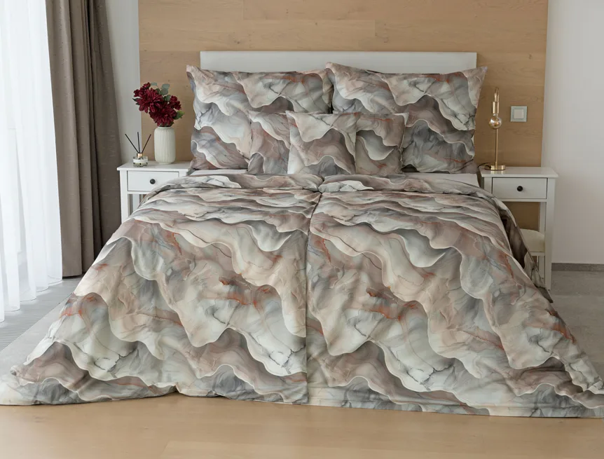 Bavlněné ložní povlečení Amede vnese do vaší ložnice pozitivní energii a nabudí vás do každého dne. Spojení zemitých tónů hnědé, cihlové a šedé barvy v abstraktním vzoru tvoří dokonalý celek, který vyladí váš interiér k dokonalosti. Díky nejmodernější digitální tiskové technologii vyniká vzor v precizním detailu.