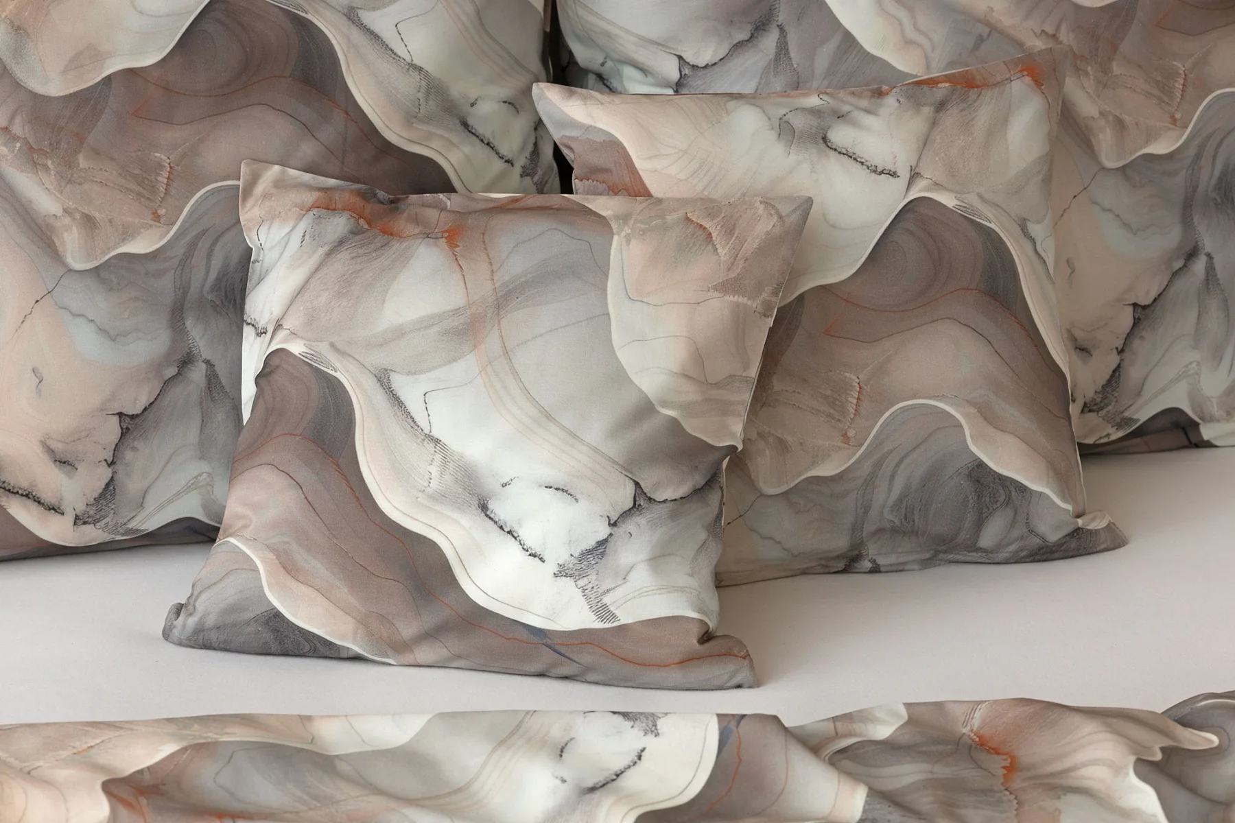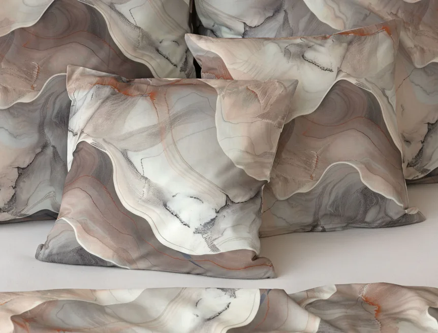 Povlaky na polštářky 40/40 cm se šijí ze stejné látky jako ložní povlečení, vzhledem k rozmanitosti vzoru může být každý povláček jiný.
