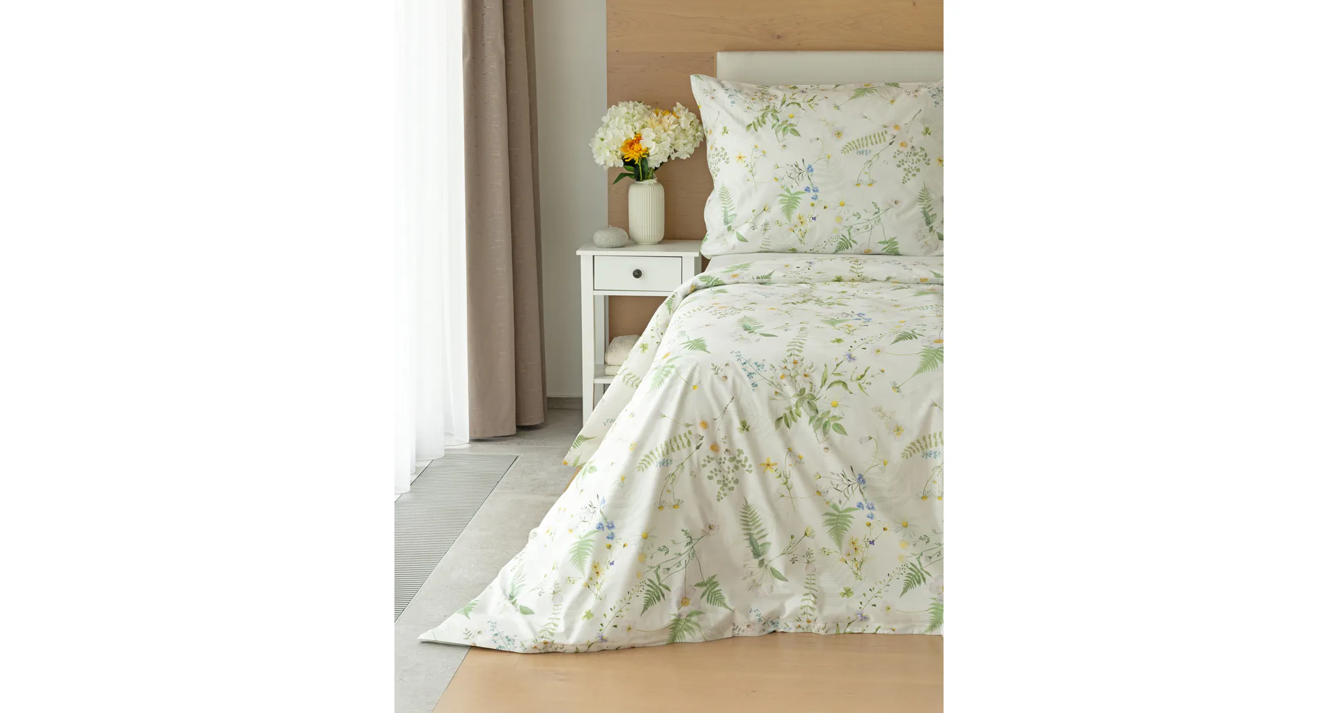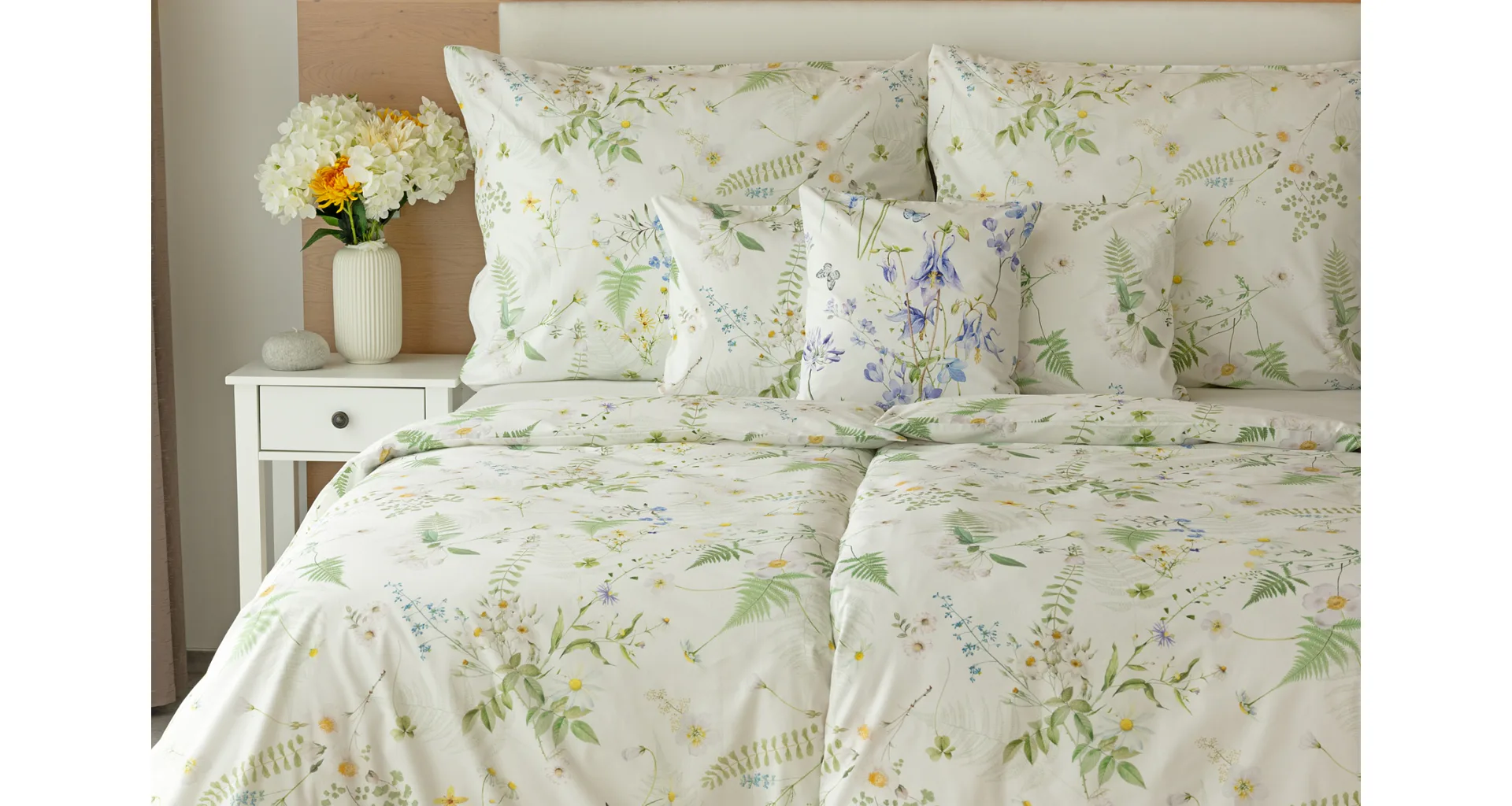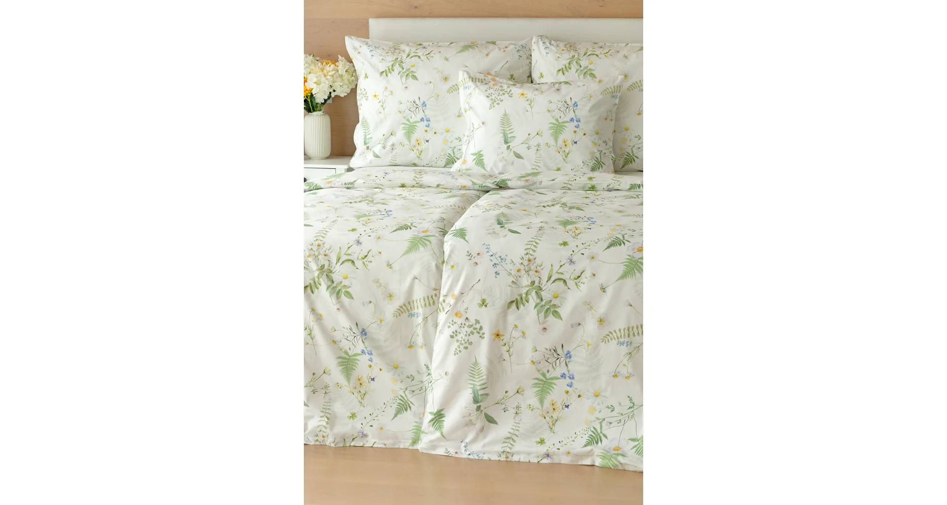 Něžný květinový motiv ložního povlečení Aria se zaslouží o vaši pozornost. Jemné luční kvítí různě propletené vyniká na bílém podkladu a působí nesmírně čistým dojmem. Dokonalá jarní svěžest. Díky nejmodernější digitální tiskové technologii vyniká každý kvítek v precizním detailu.
