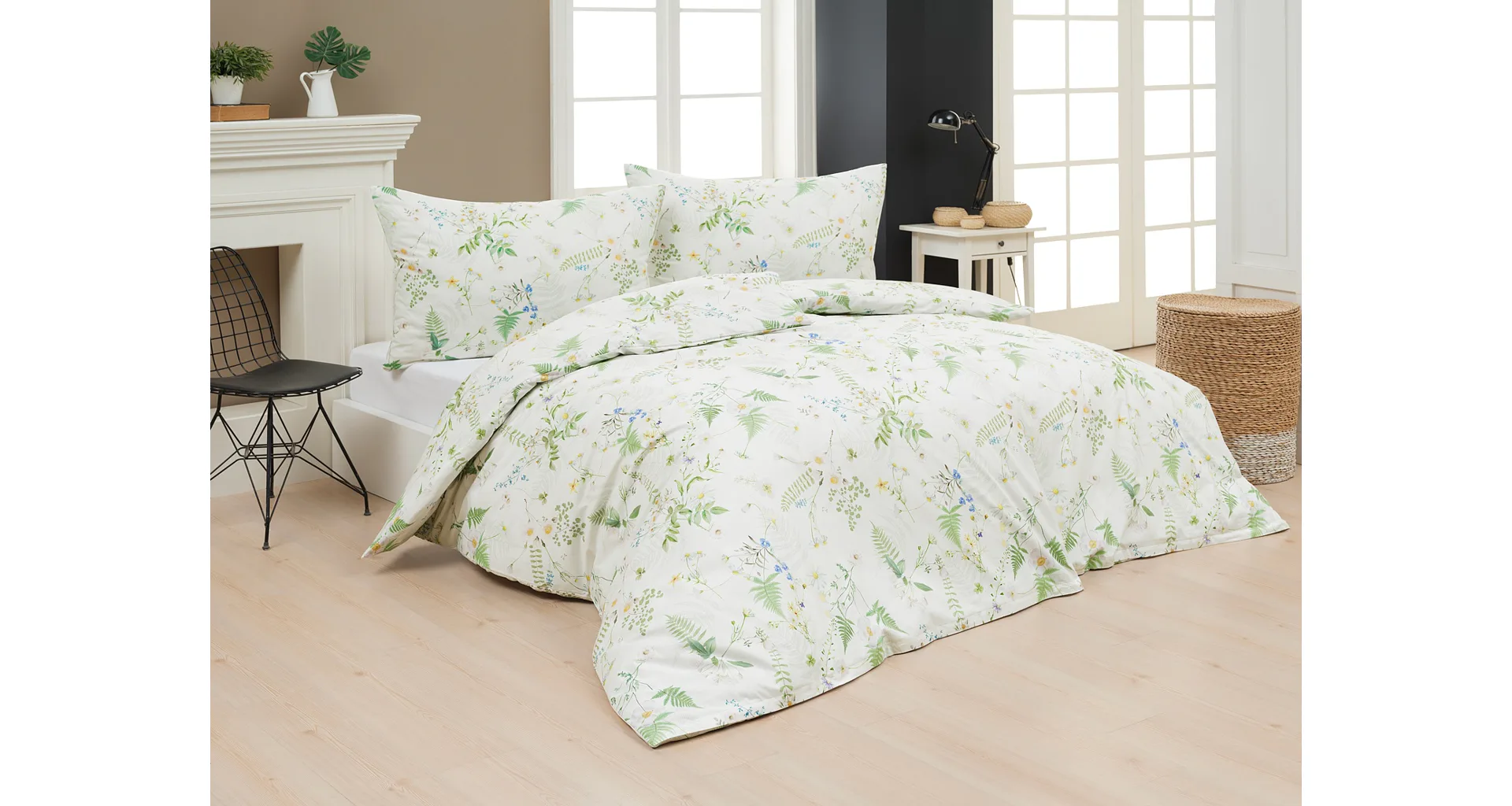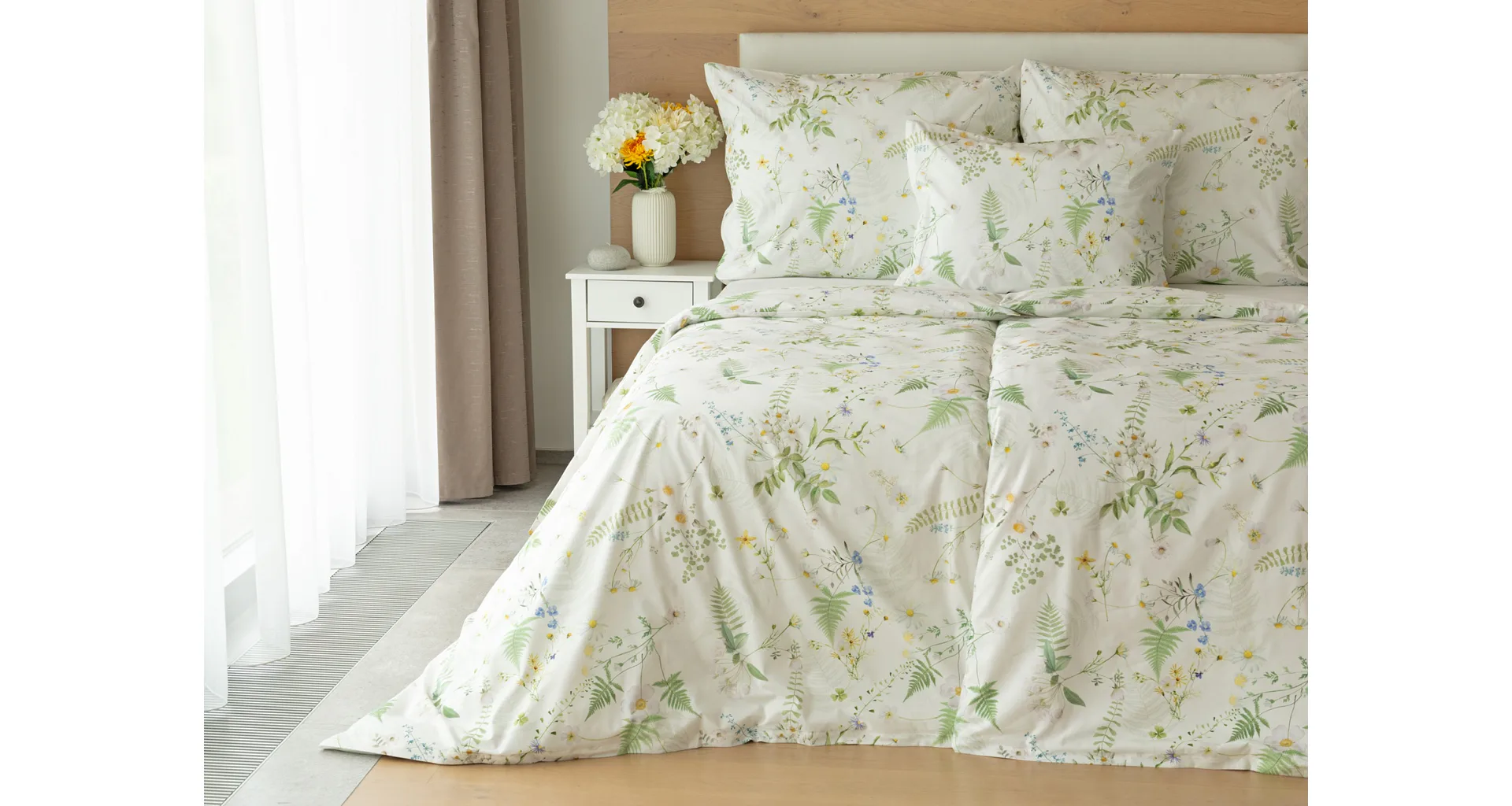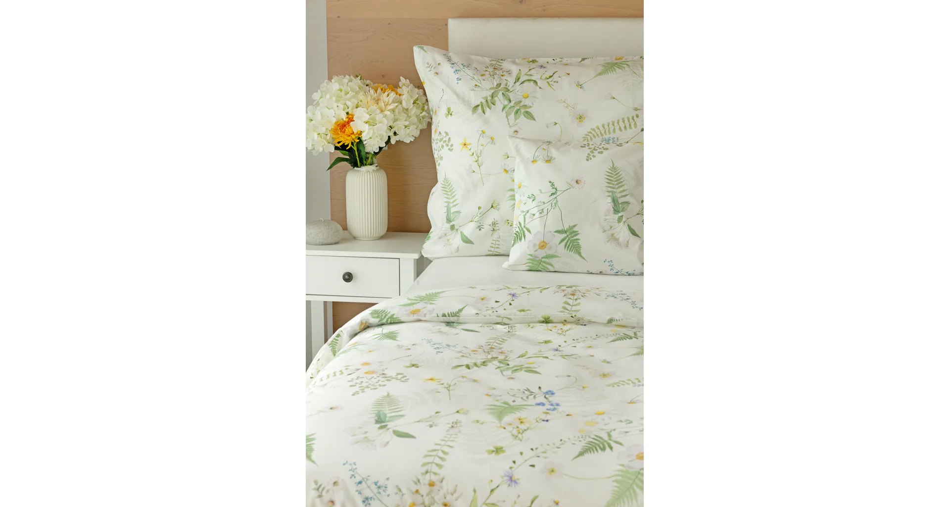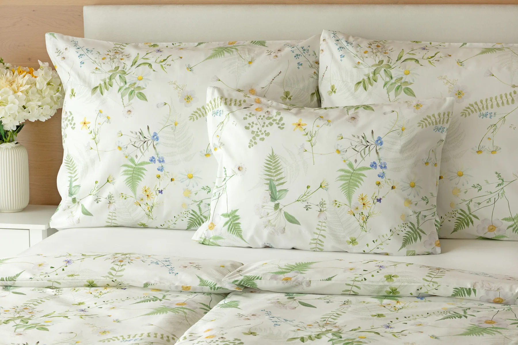 Něžný květinový motiv ložního povlečení Aria se zaslouží o vaši pozornost. Jemné luční kvítí různě propletené vyniká na bílém podkladu a působí nesmírně čistým dojmem. Dokonalá jarní svěžest. Díky nejmodernější digitální tiskové technologii vyniká každý kvítek v precizním detailu.