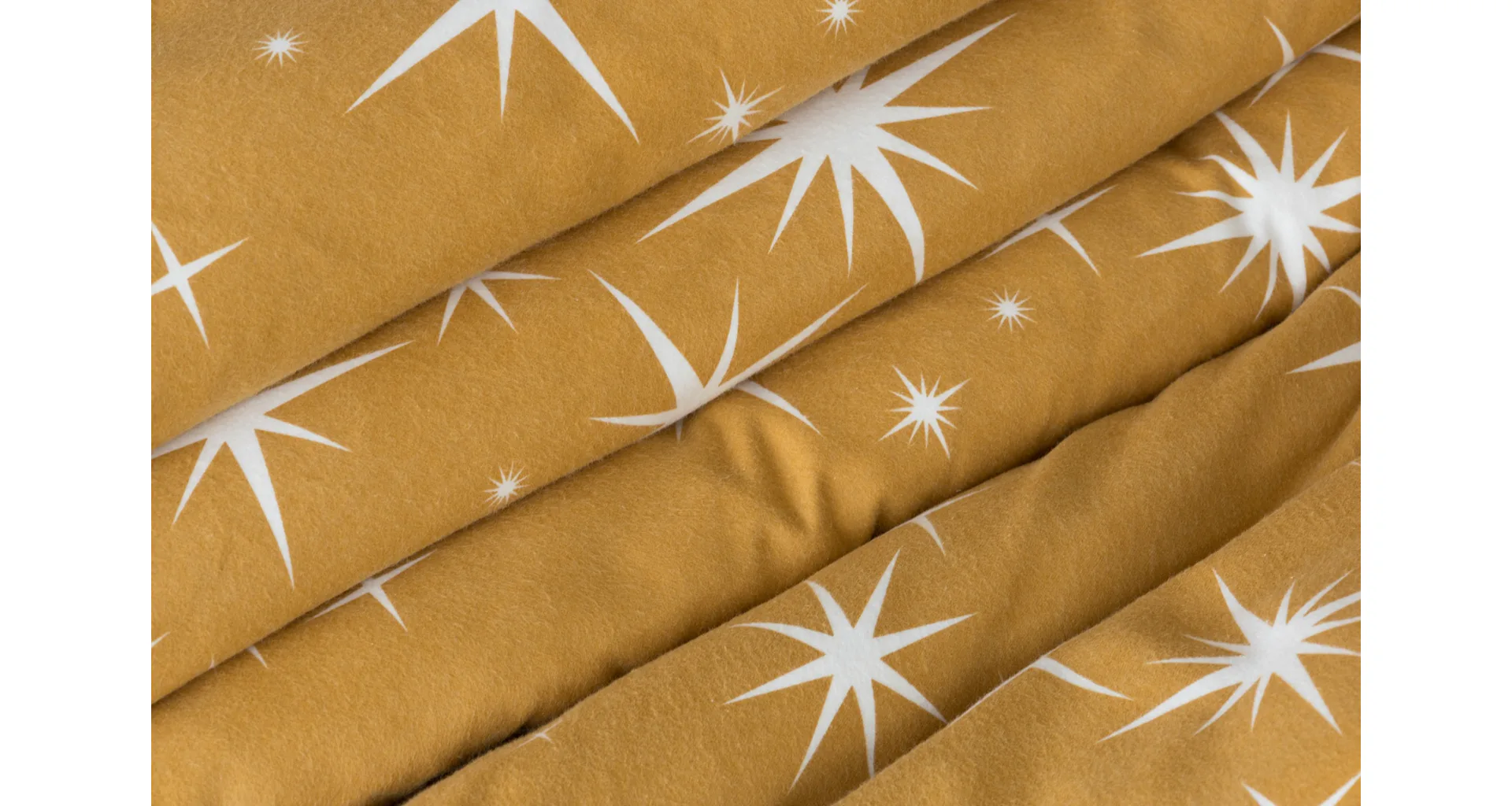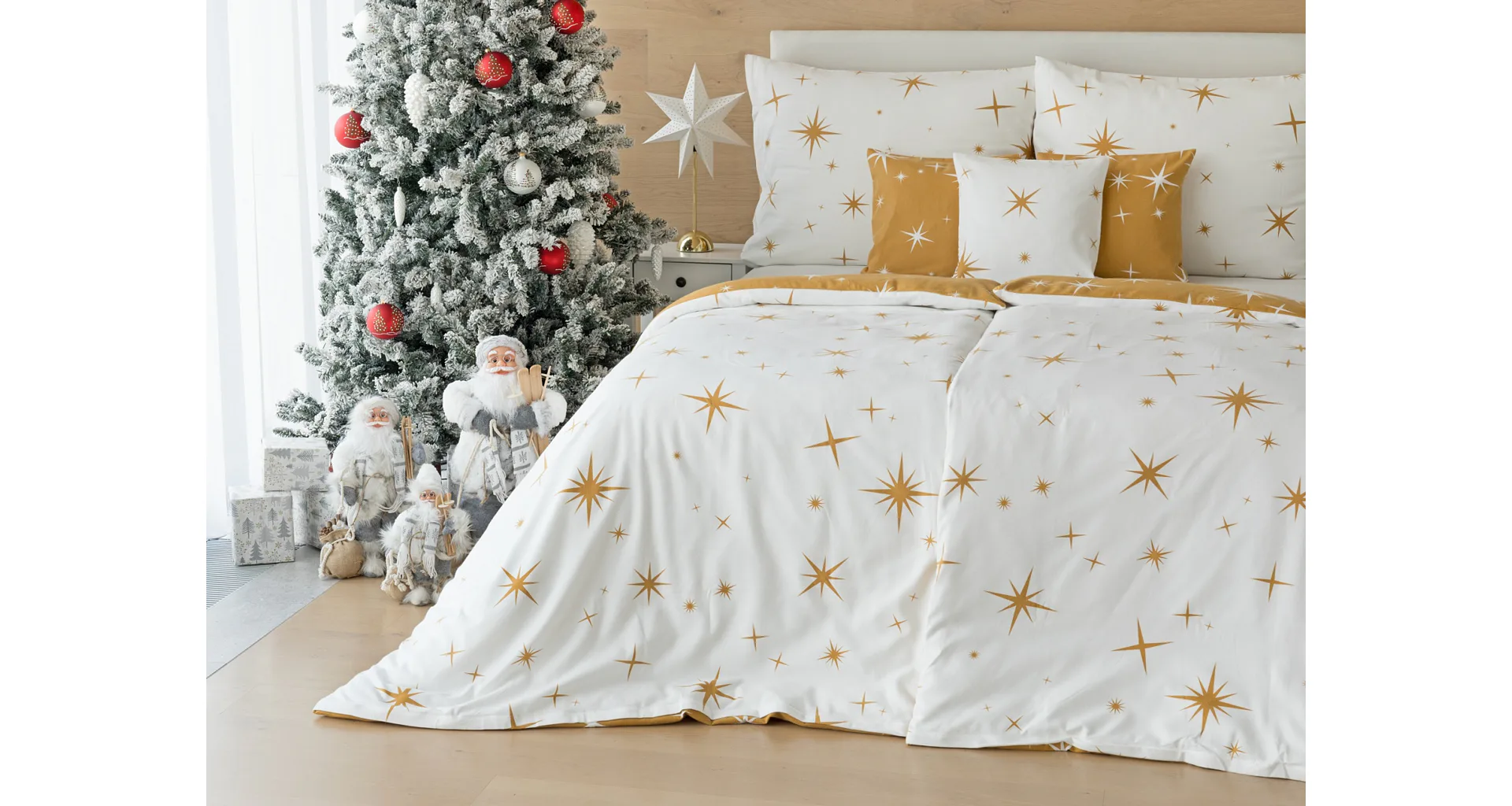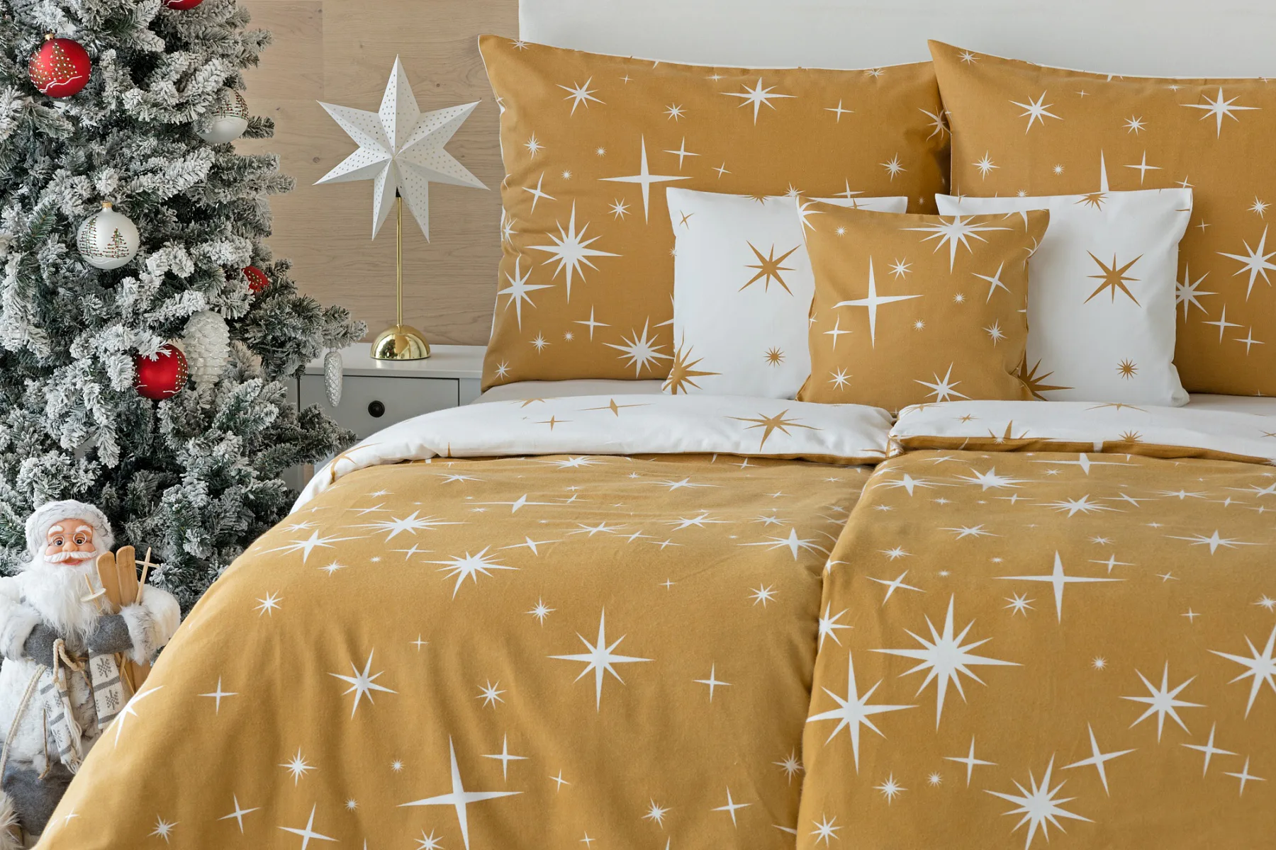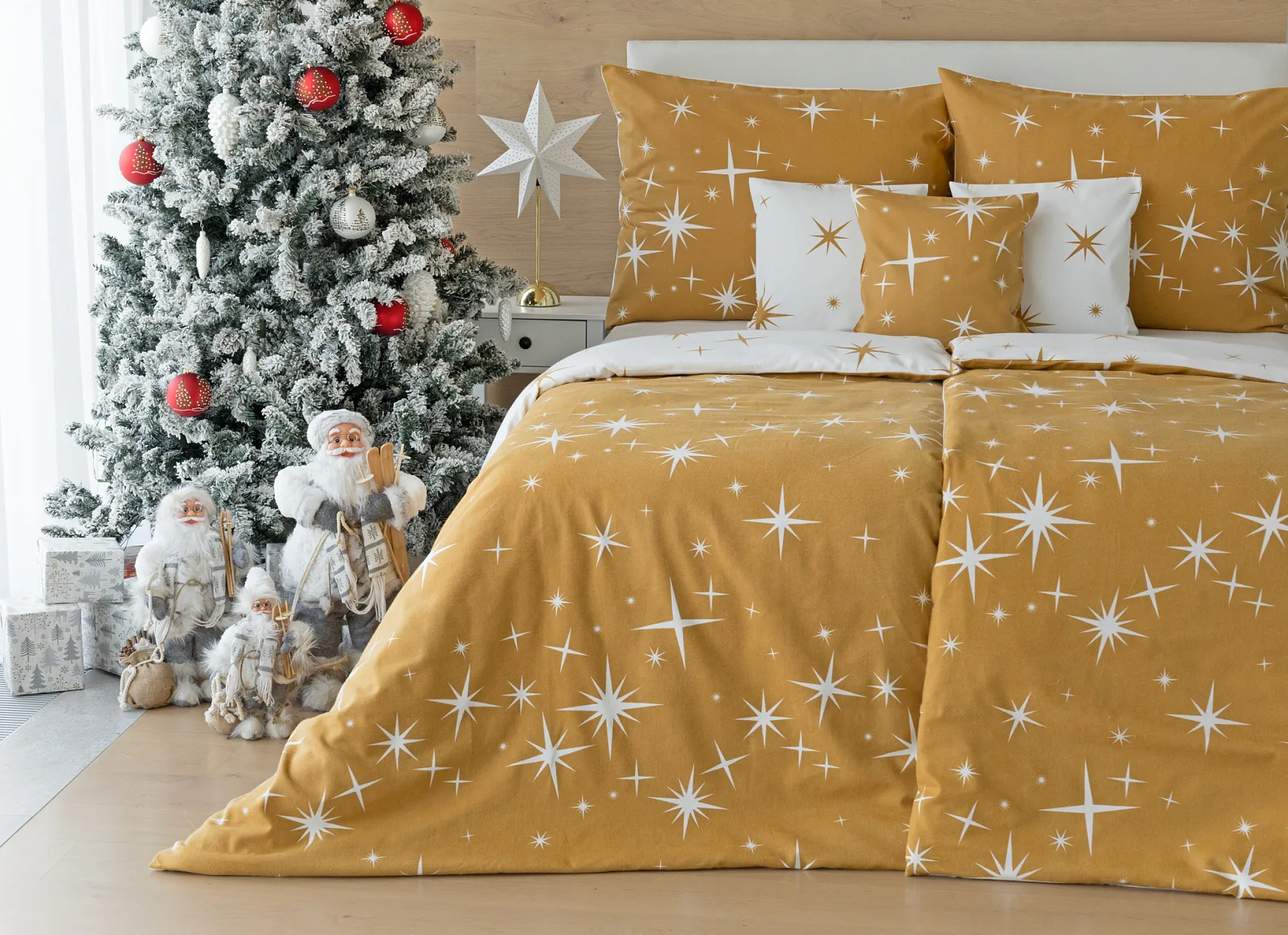 Vánoční povlečení Arietta Gold s motivem hvězdiček přináší do vaší ložnice hřejivou a útulnou atmosféru. Z jedné strany povlečení září bílé hvězdy na medově žlutém podkladu, spodní strana je provedna inverzně. Nechte se hýčkat a zachumlejte se do měkoučkého prémiového flanelu.