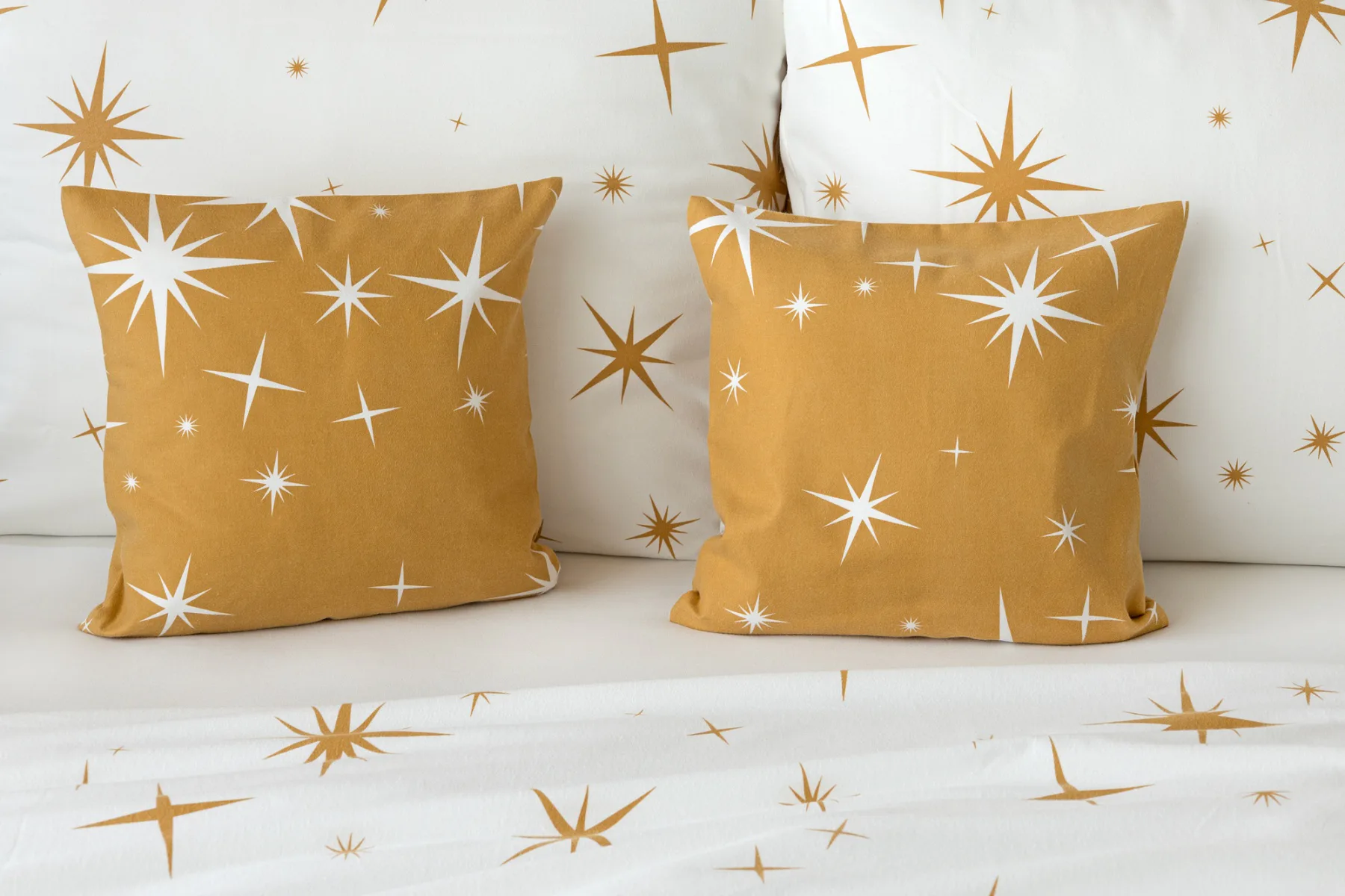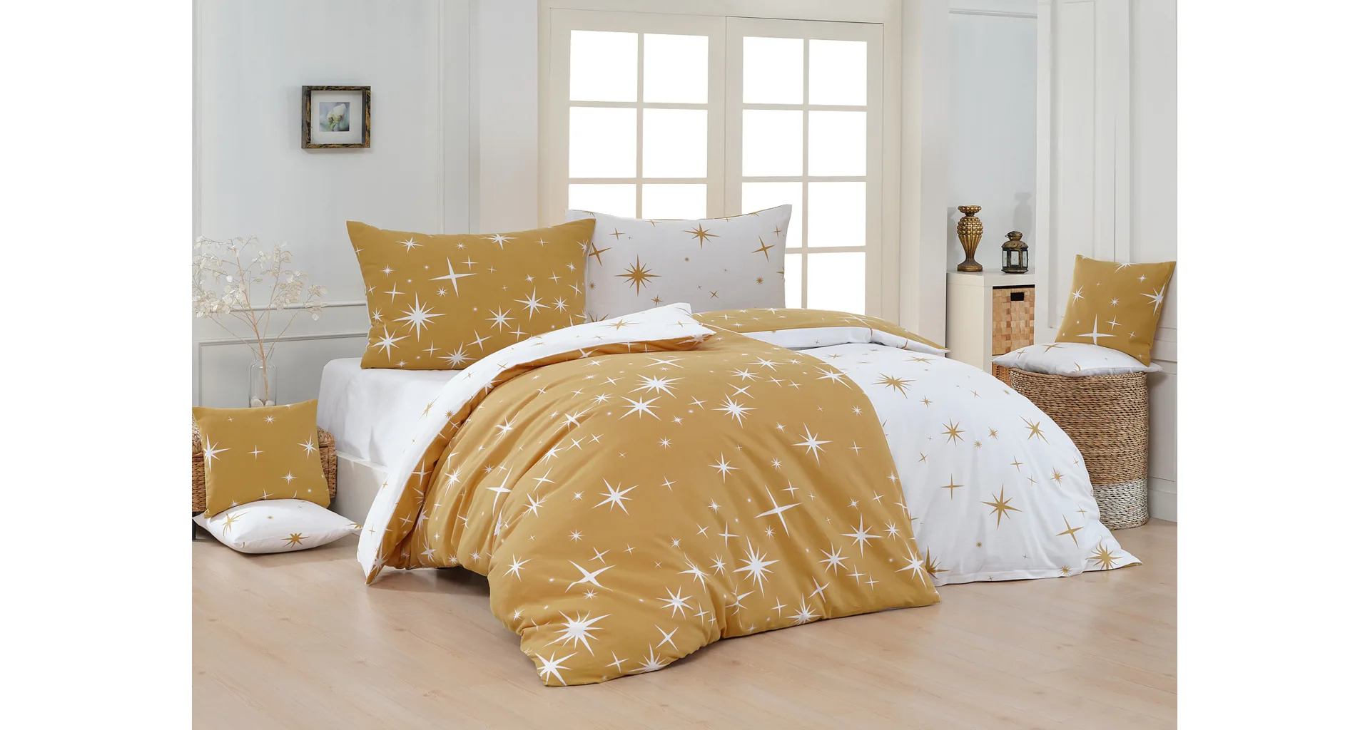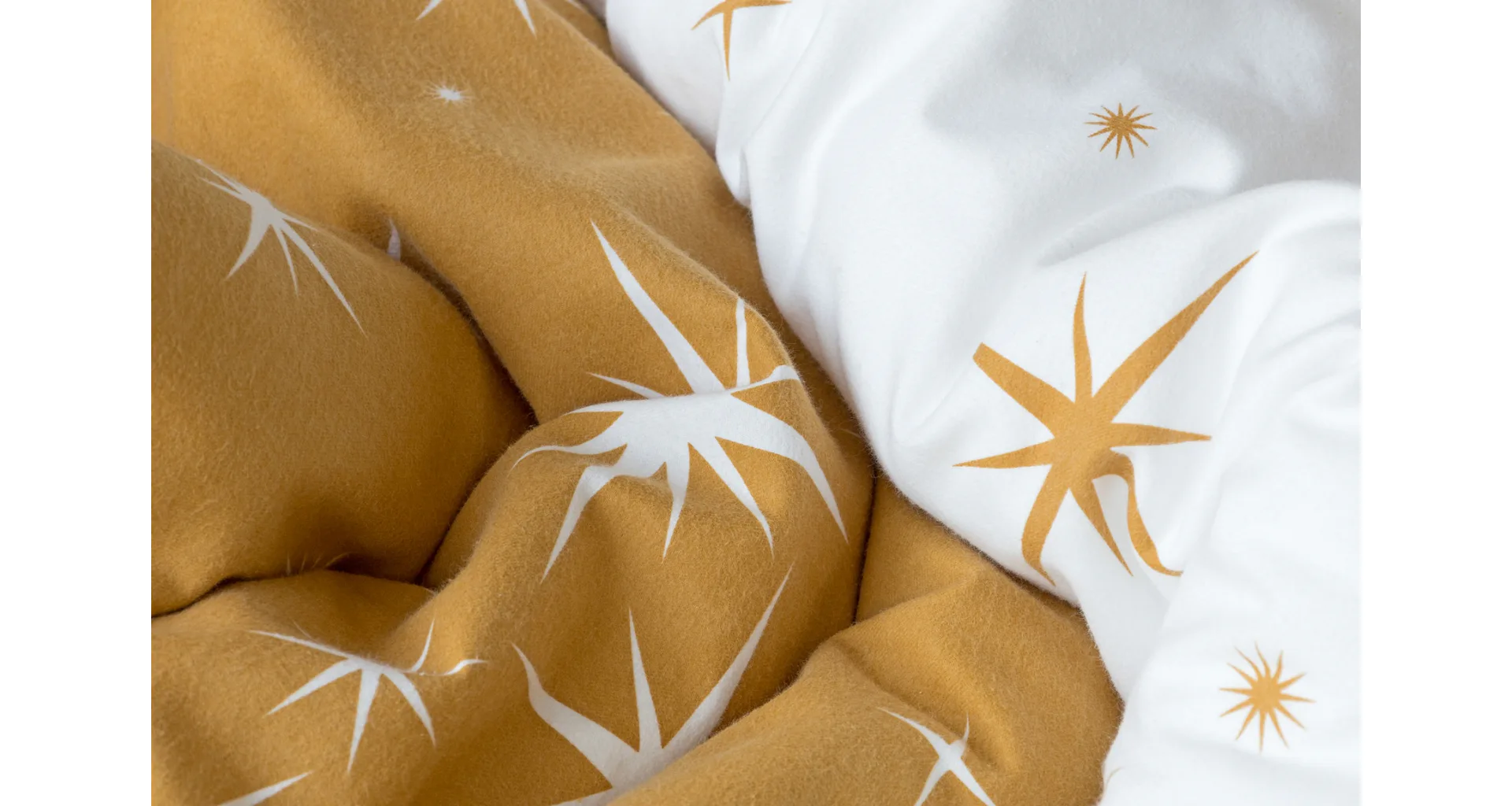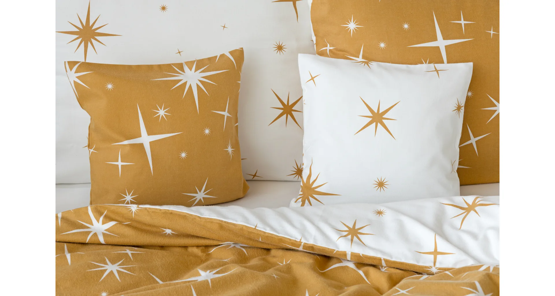 Vánoční povlečení Arietta Gold s motivem hvězdiček přináší do vaší ložnice hřejivou a útulnou atmosféru. Z jedné strany povlečení září bílé hvězdy na medově žlutém podkladu, spodní strana je provedna inverzně. Nechte se hýčkat a zachumlejte se do měkoučkého prémiového flanelu.