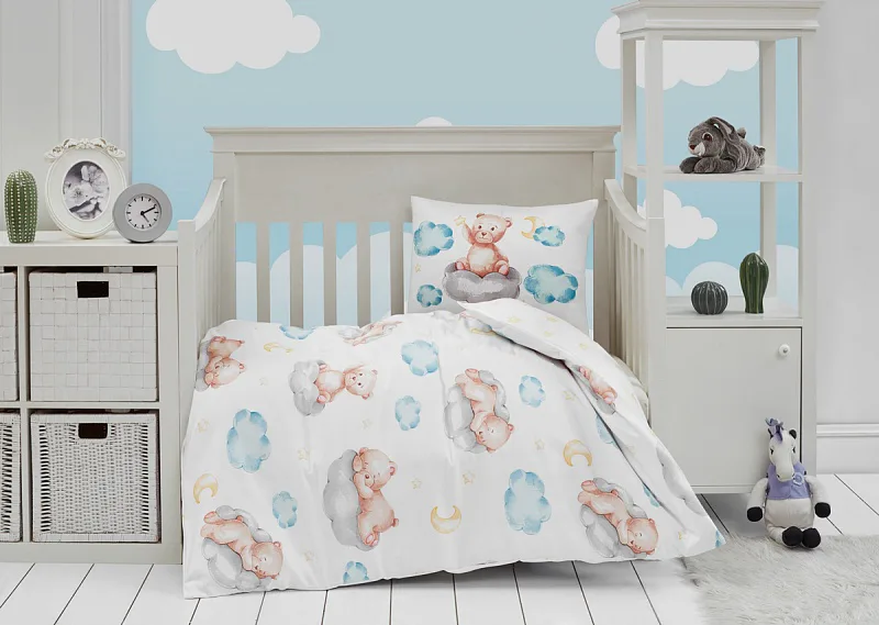 S něžným bavlněným povlečením Baby Bears bude vaše děťátko usínat jako v oblacích. Díky neutrálnímu barevnému zpracování může povlečení s roztomilým medvídkem zdobit holčičí i chlapecký pokojíček.