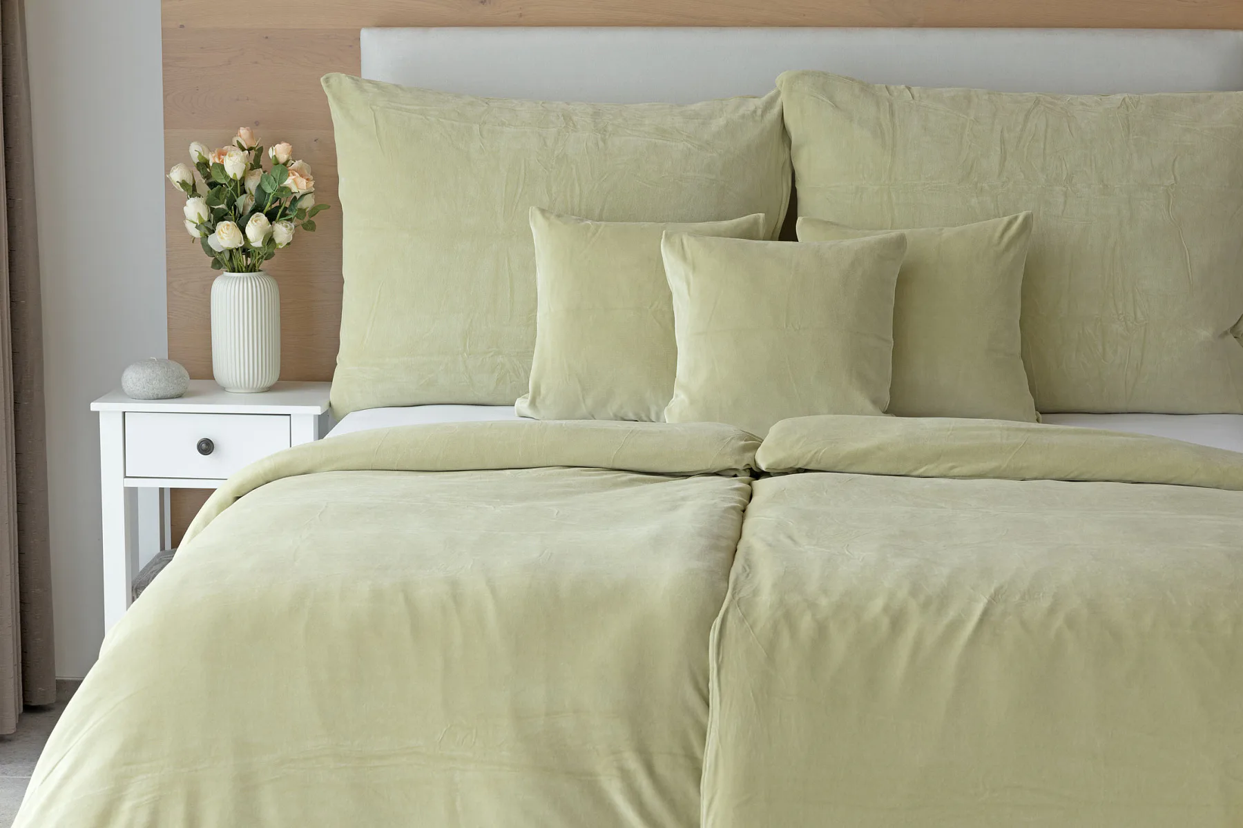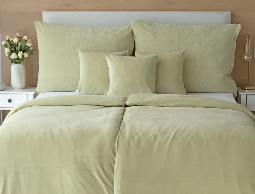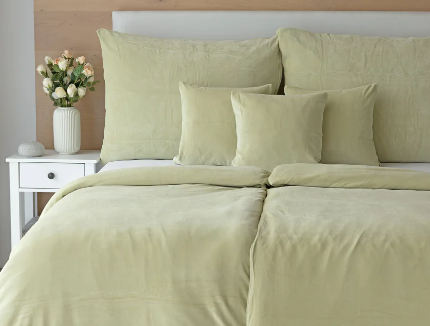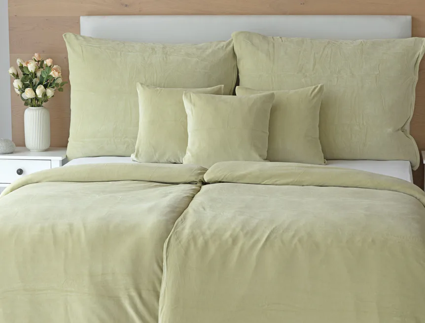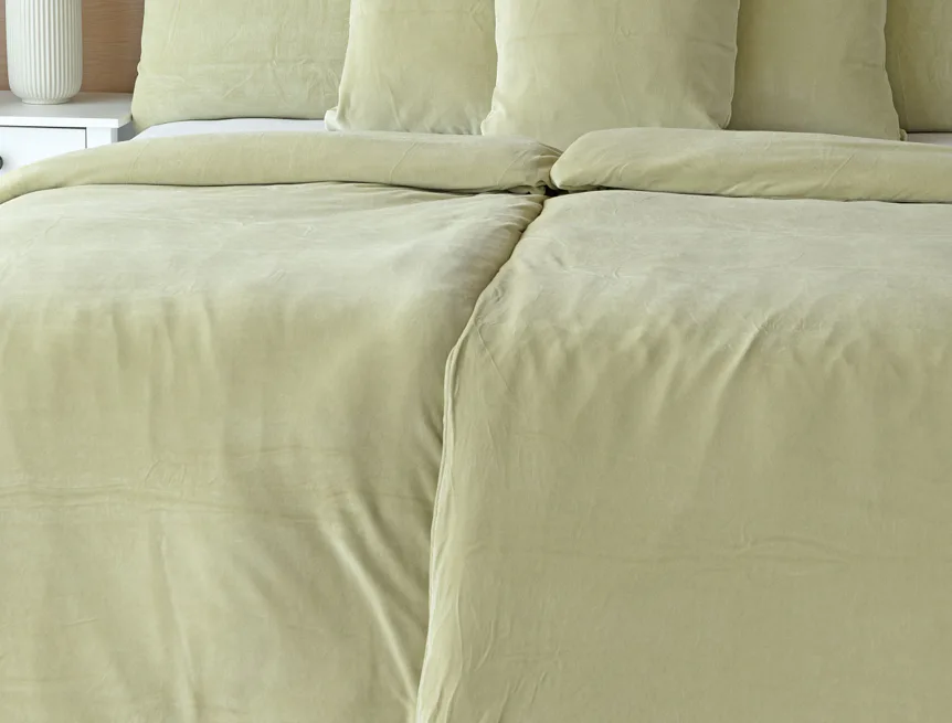 Údržba: Povlečení doporučujeme prát při teplotě 40°C. Nová vylepšená struktura umožňuje sušení v sušičce, která při prvním praní snadno odstraní zbytková vlákna z výroby. Tím se minimalizuje počáteční sklon k "prášení", který je u velurových tkanin běžný. Velurové povlečení je nenáročné na údržbu a nevyžaduje žehlení.