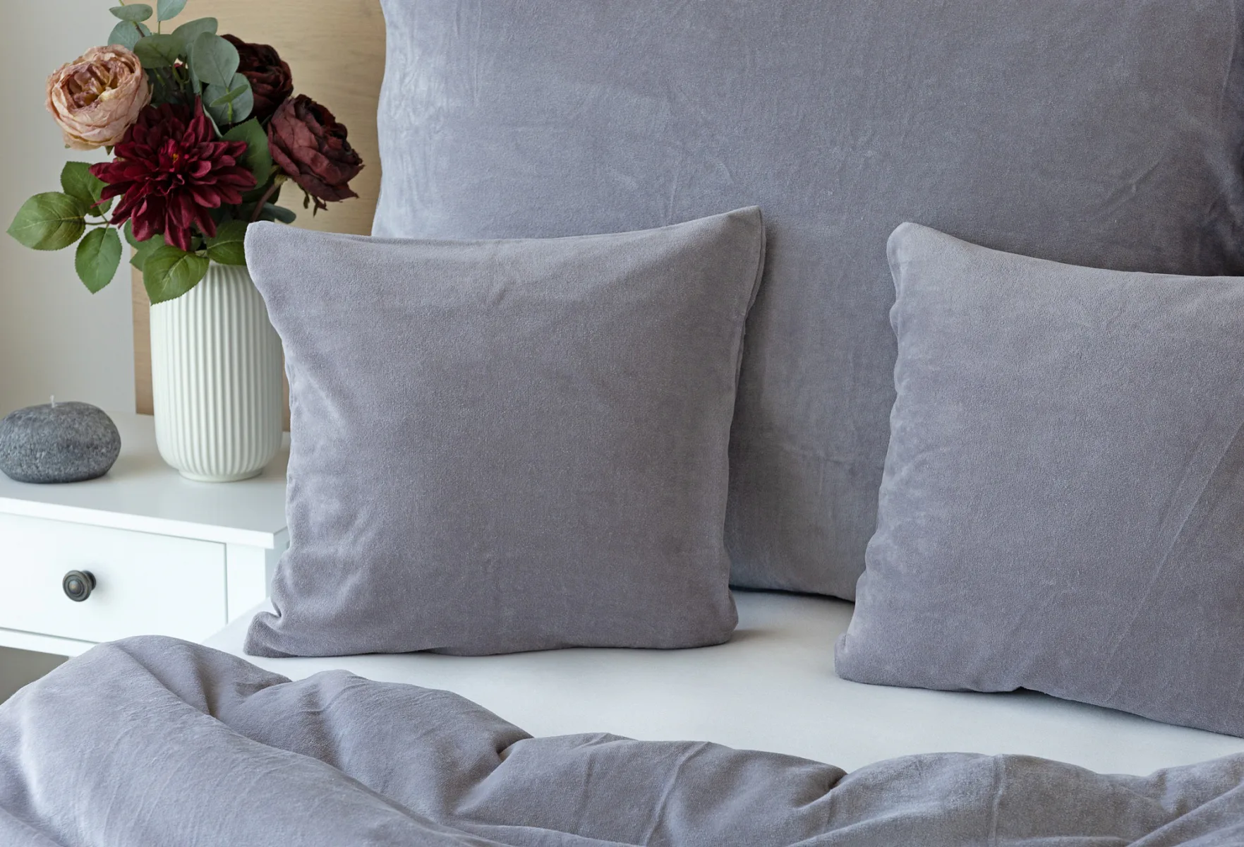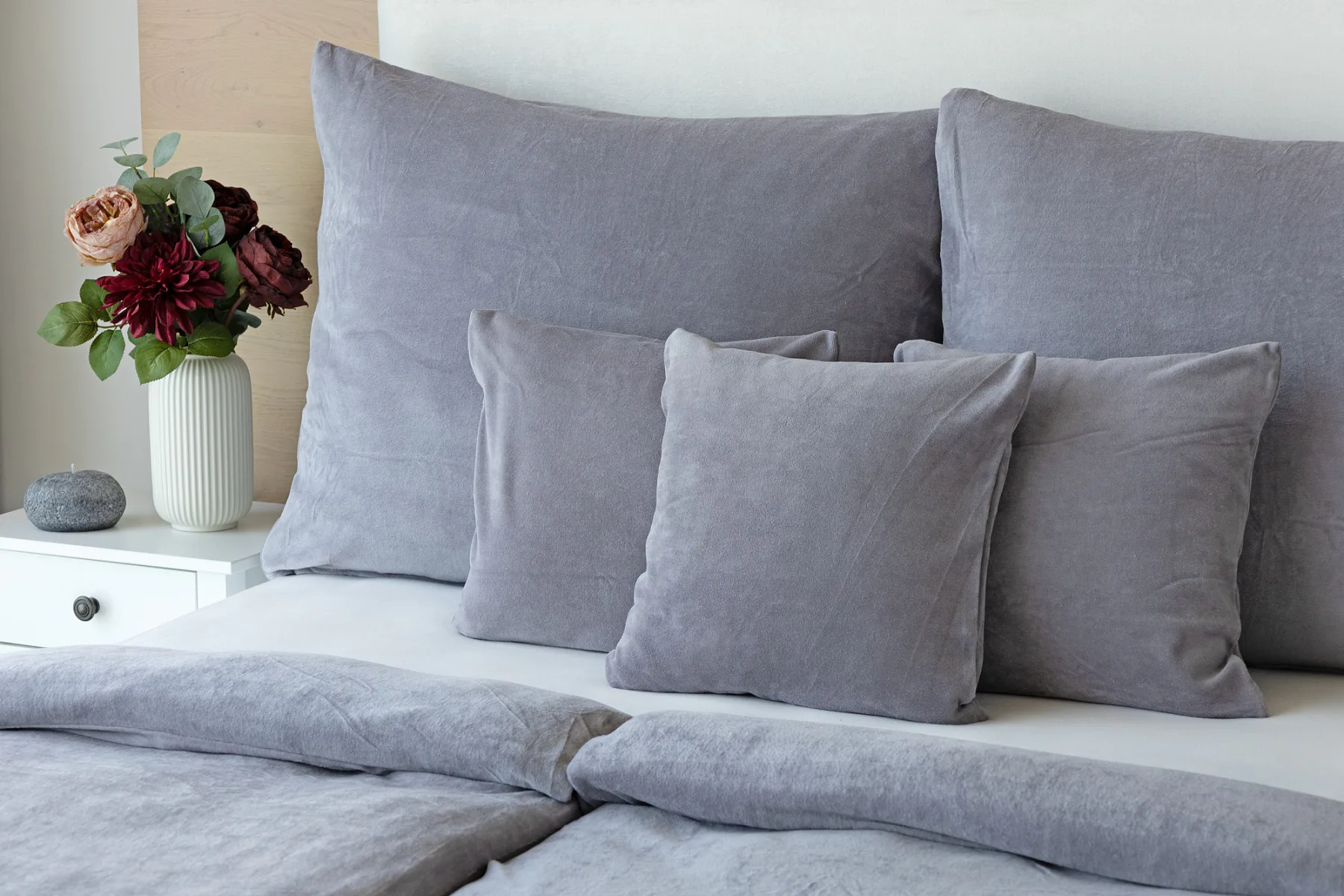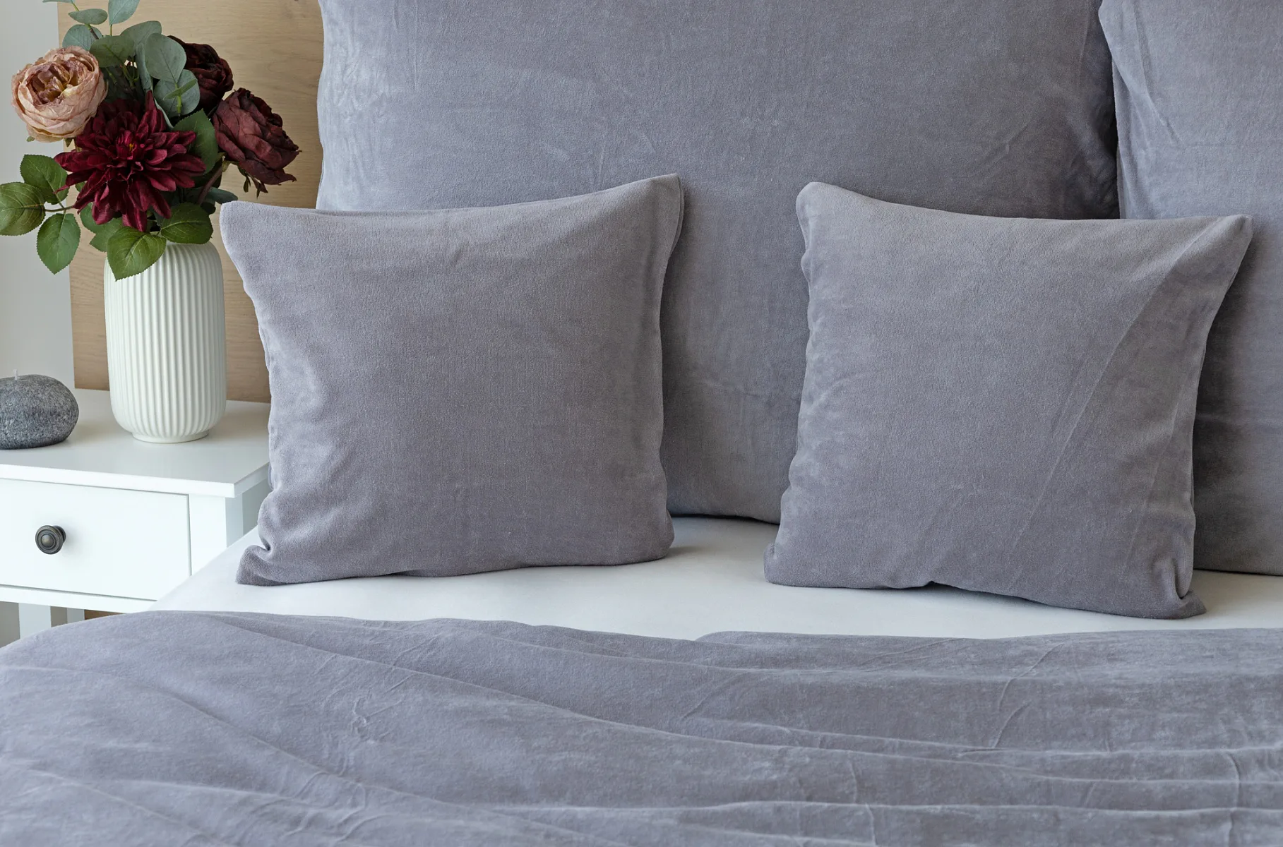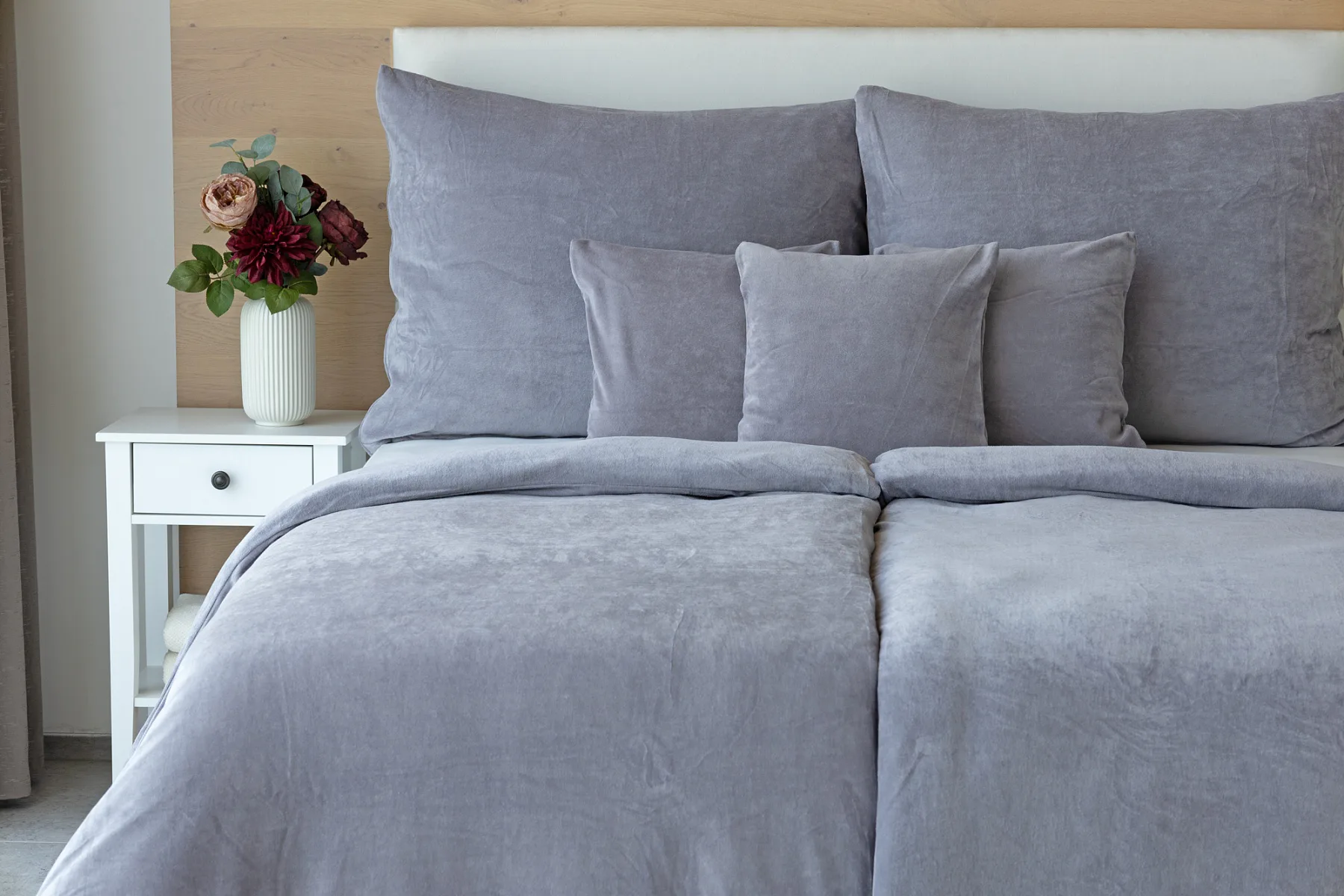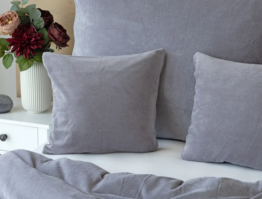 Bavlněný mikroplyš naší výroby se pyšní vysokým podílem bavlny (80%), kdy zbývajících 20% PE tvoří spodní strukturu pružné tkaniny. Velurové povlečení je nenáročné na údržbu a nevyžaduje žehlení. Kolekce velurového povlečení splňuje kritéria mezinárodní certifikace Oeko-Tex Standard 100.