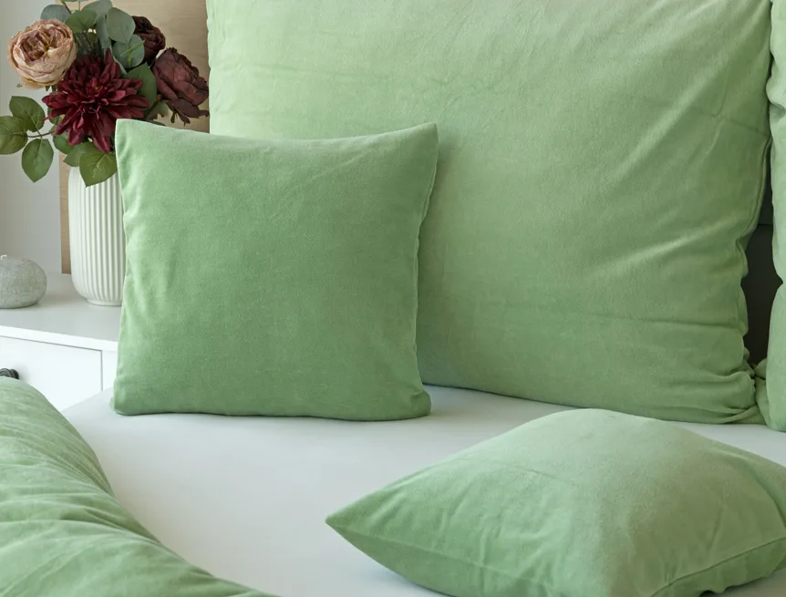 Bavlněný mikroplyš naší výroby se pyšní vysokým podílem bavlny (80%), kdy zbývajících 20% PE tvoří spodní strukturu pružné tkaniny. Velurové povlečení je nenáročné na údržbu a nevyžaduje žehlení. Kolekce velurového povlečení splňuje kritéria mezinárodní certifikace Oeko-Tex Standard 100.