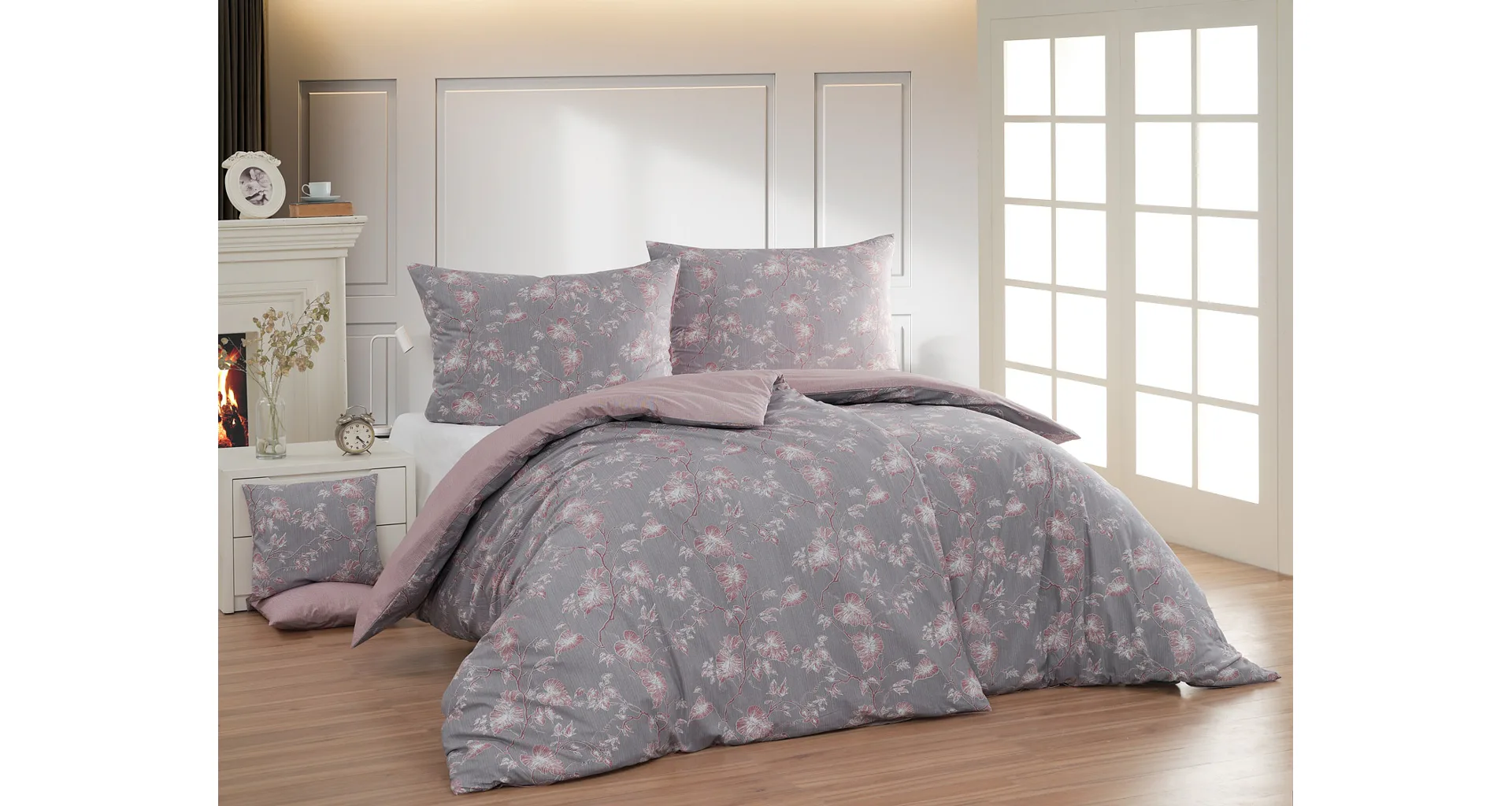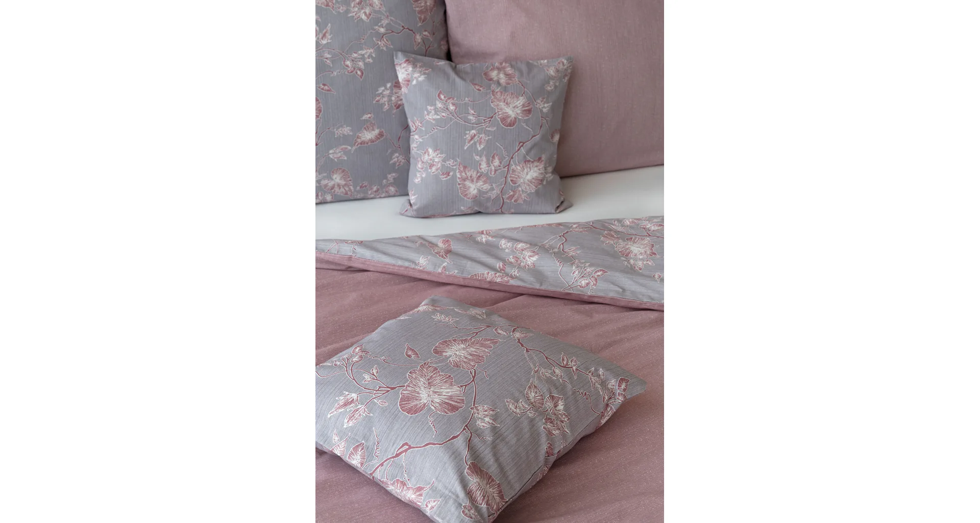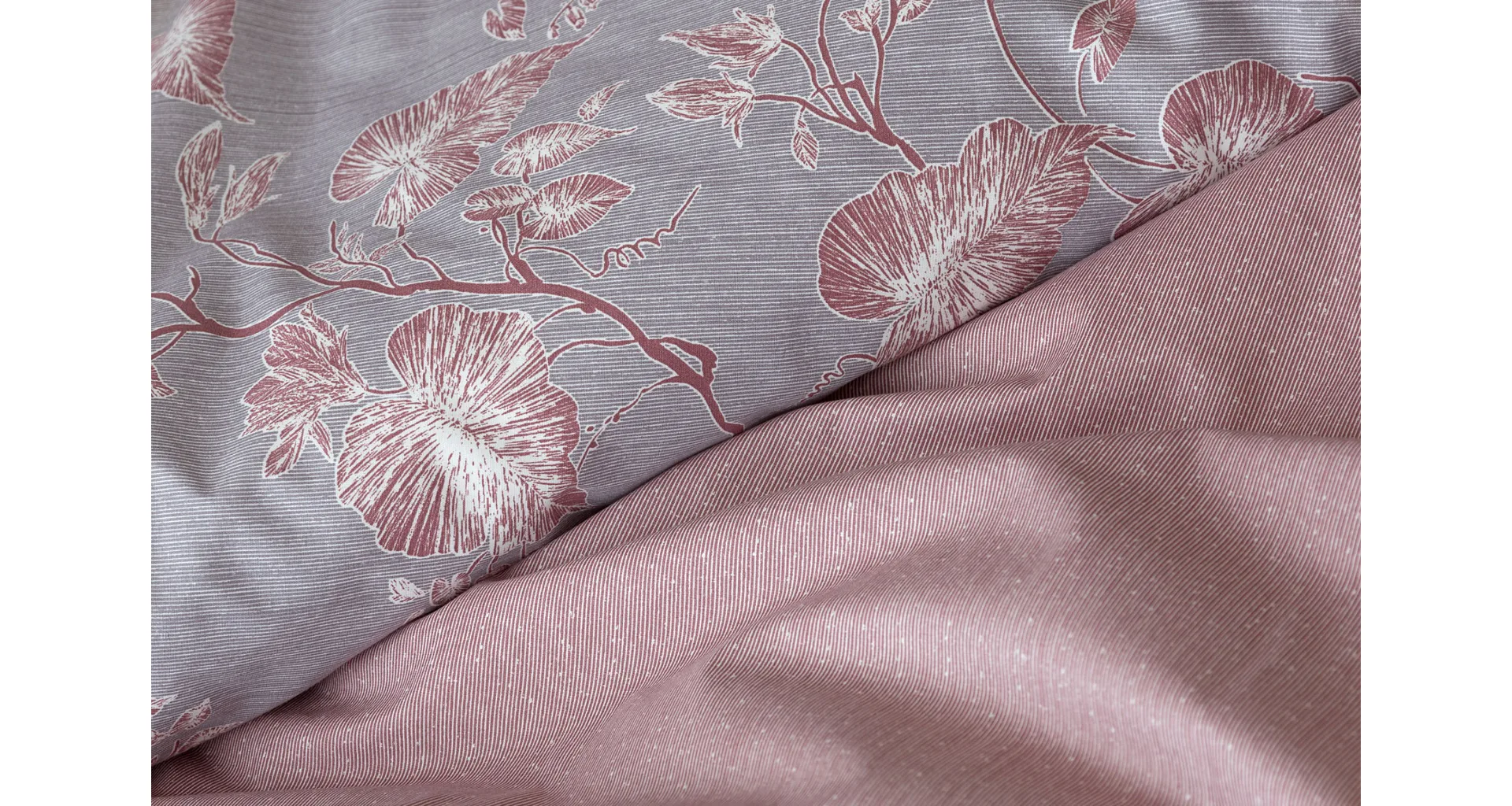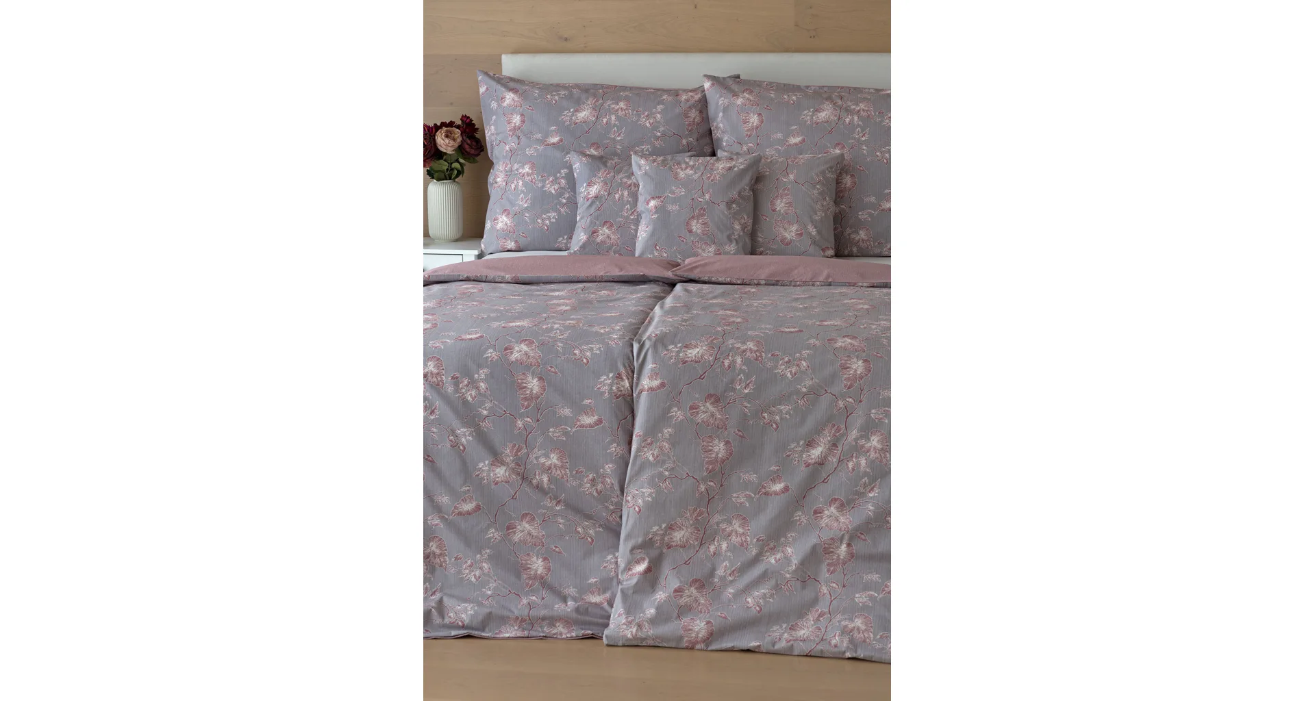 Bavlněné povlečení Bella se stane ozdobou moderní i rustikální ložnice díky něžné kombinaci barev a napáditému vzoru. Motiv jemných lístků v paletě starorůžových a šedých tónů na jedné straně se snoubí s jednobarevným starorůžovým podkladem, který zdobí zadní stranu povlečení. Podklad povlečení z obou stran je ozvláštěn jemnou proužkovanou stukturou.