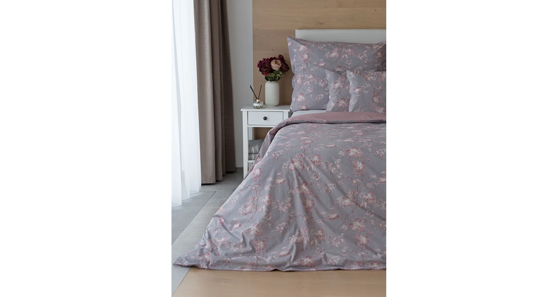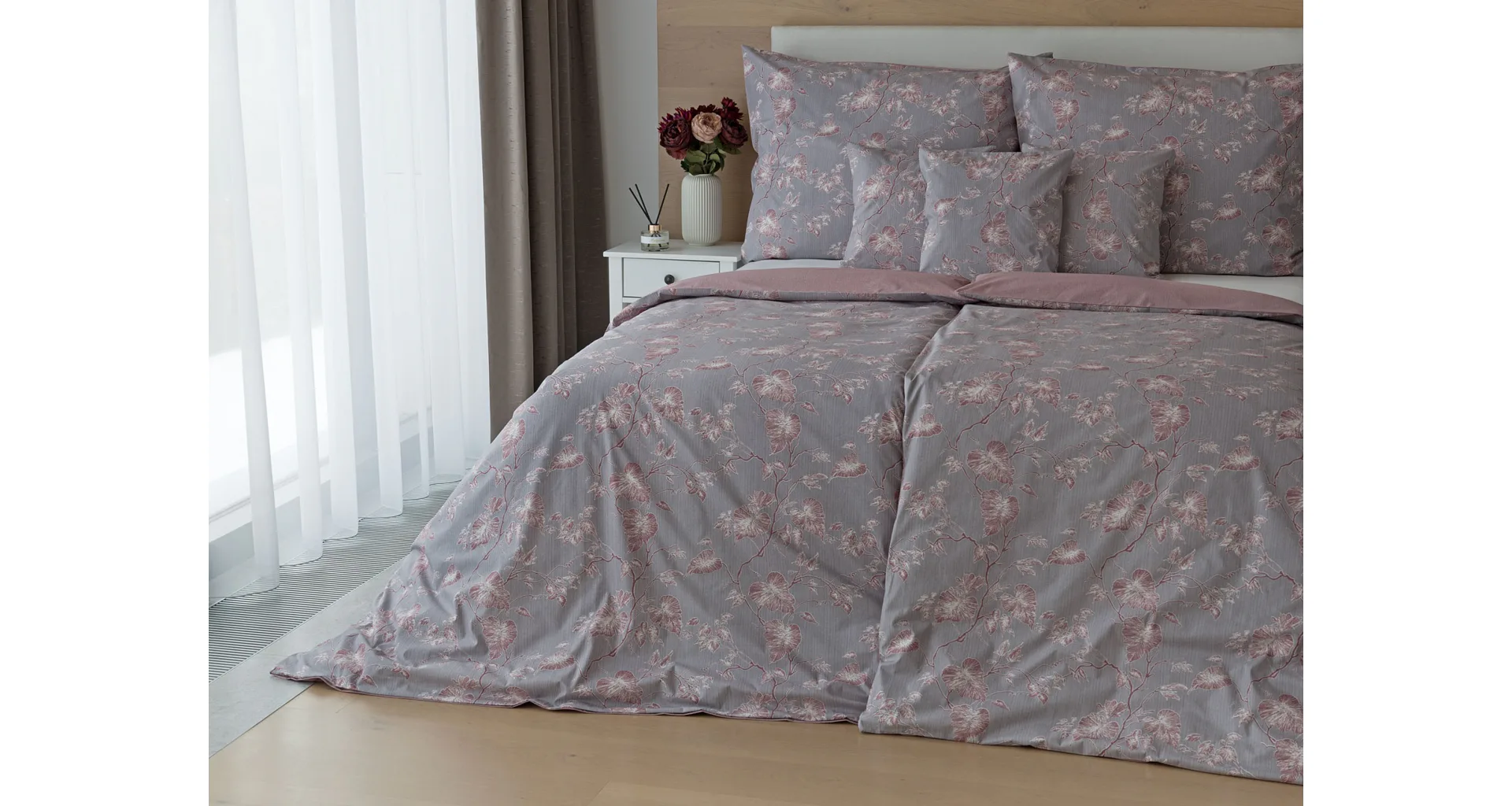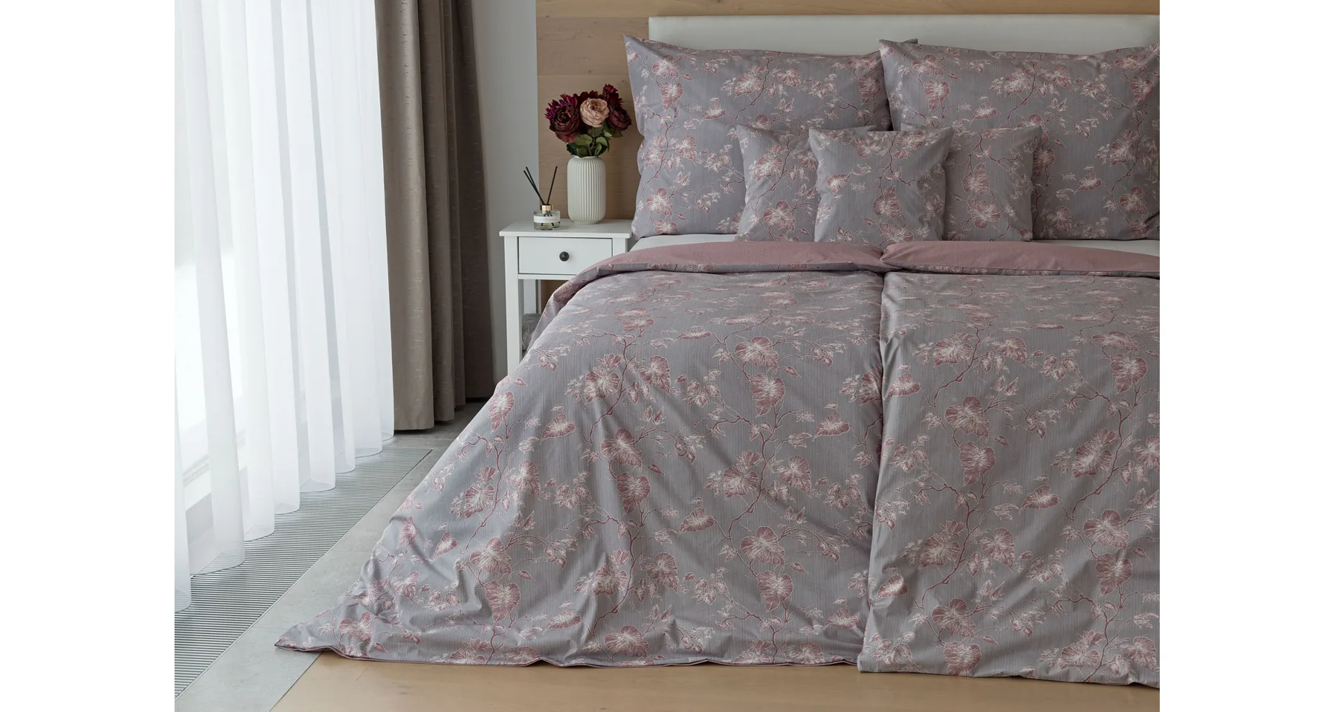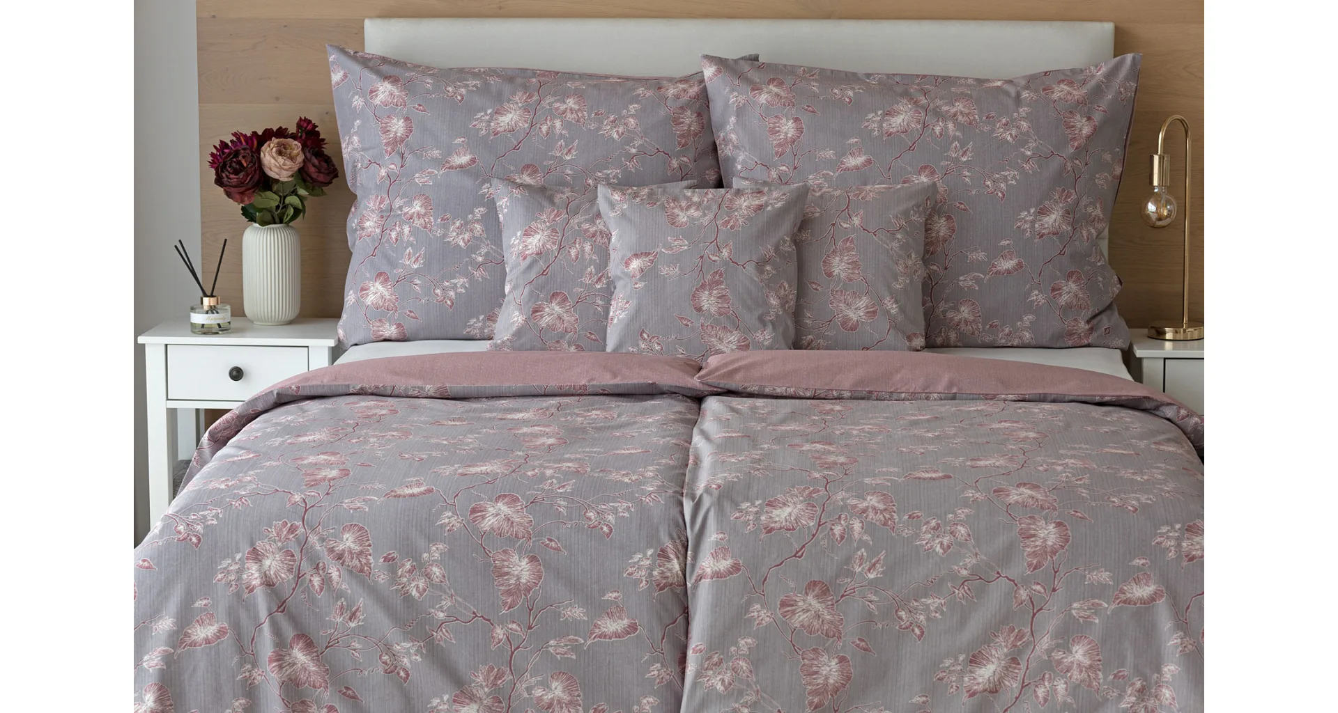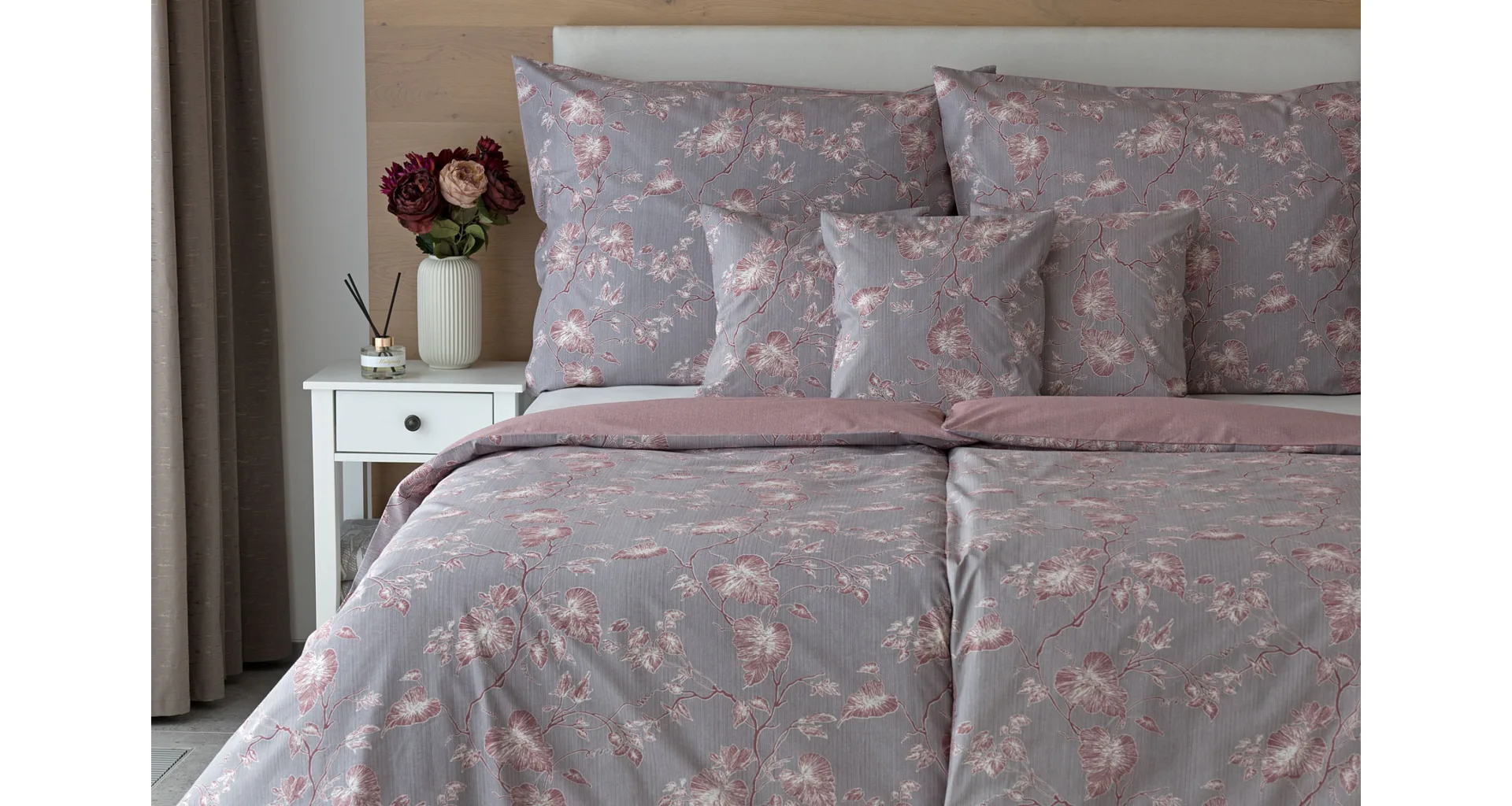 Bavlněné povlečení Bella se stane ozdobou moderní i rustikální ložnice díky něžné kombinaci barev a napáditému vzoru. Motiv jemných lístků v paletě starorůžových a šedých tónů na jedné straně se snoubí s jednobarevným starorůžovým podkladem, který zdobí zadní stranu povlečení. Podklad povlečení z obou stran je ozvláštěn jemnou proužkovanou stukturou.