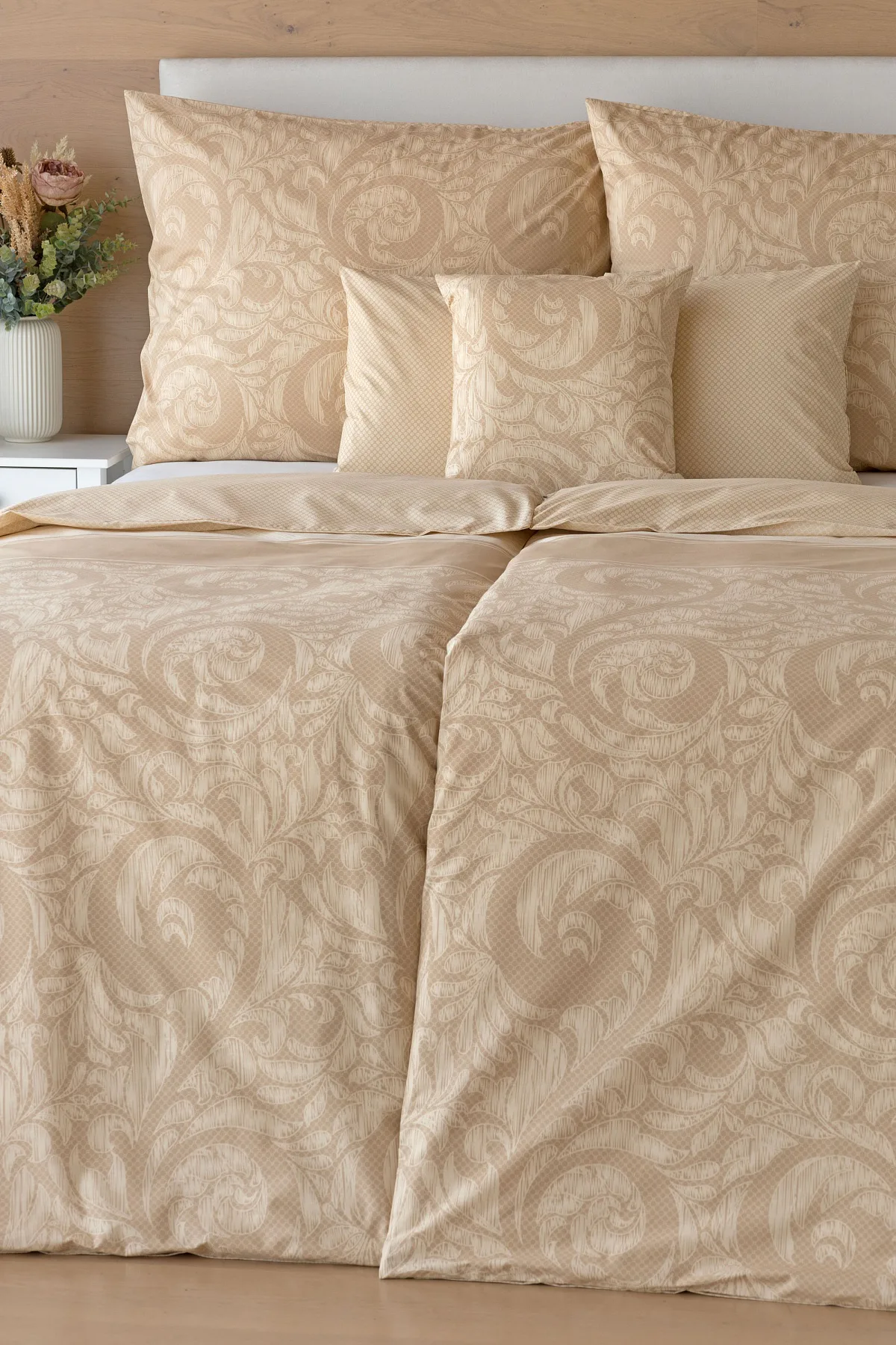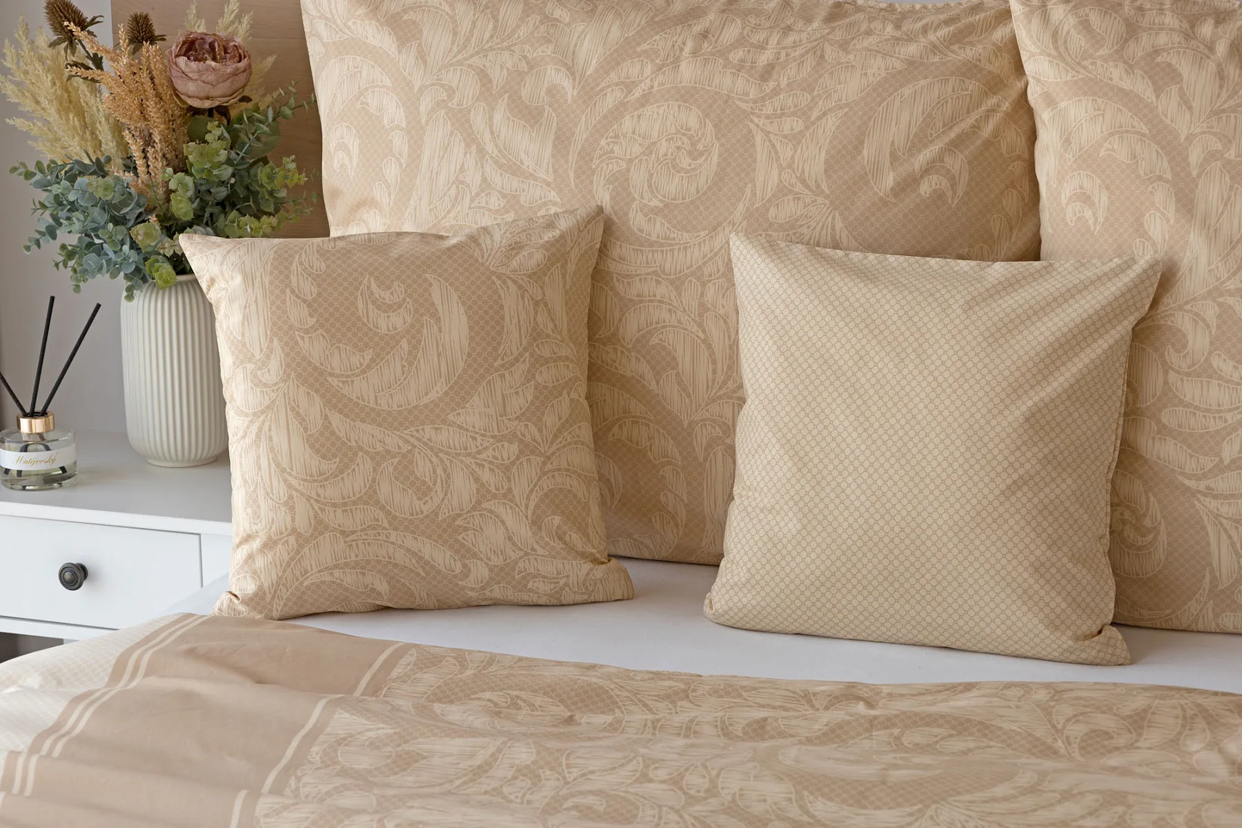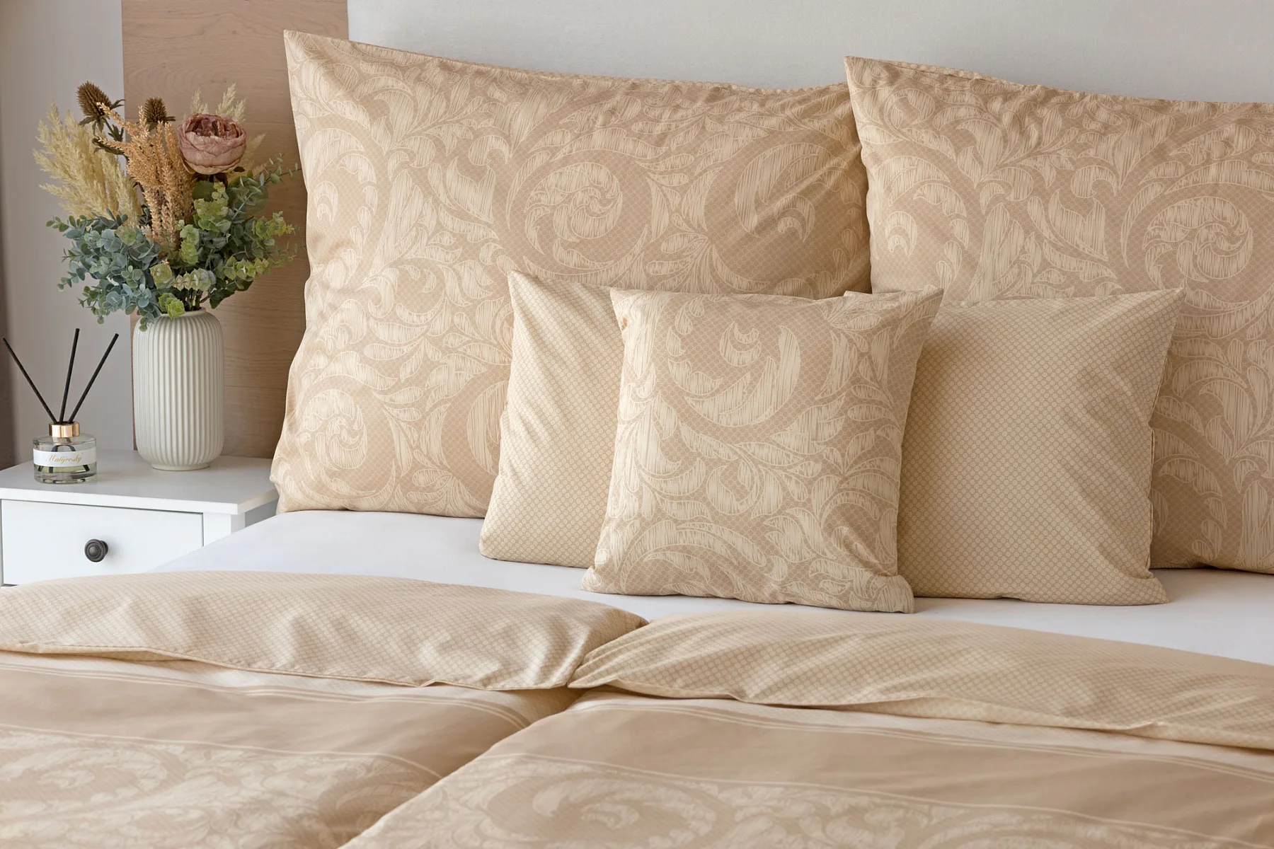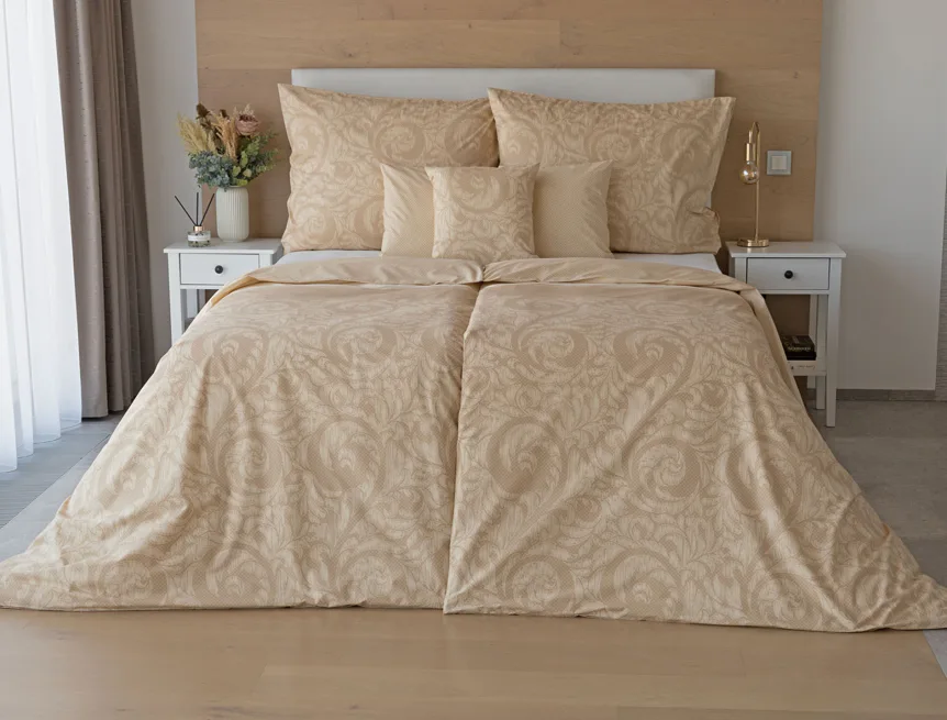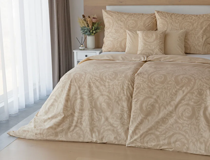 Bavlněné povlečení Bellora se postará o elegantní vzhled vaší ložnice i o vaše pohodlí. Decentní zdobný vzor v hřejivých tónech přírodní béžové a světle hnědé barvy je vhodný do moderní ložnice i do rustikálně zařízeného interiéru.