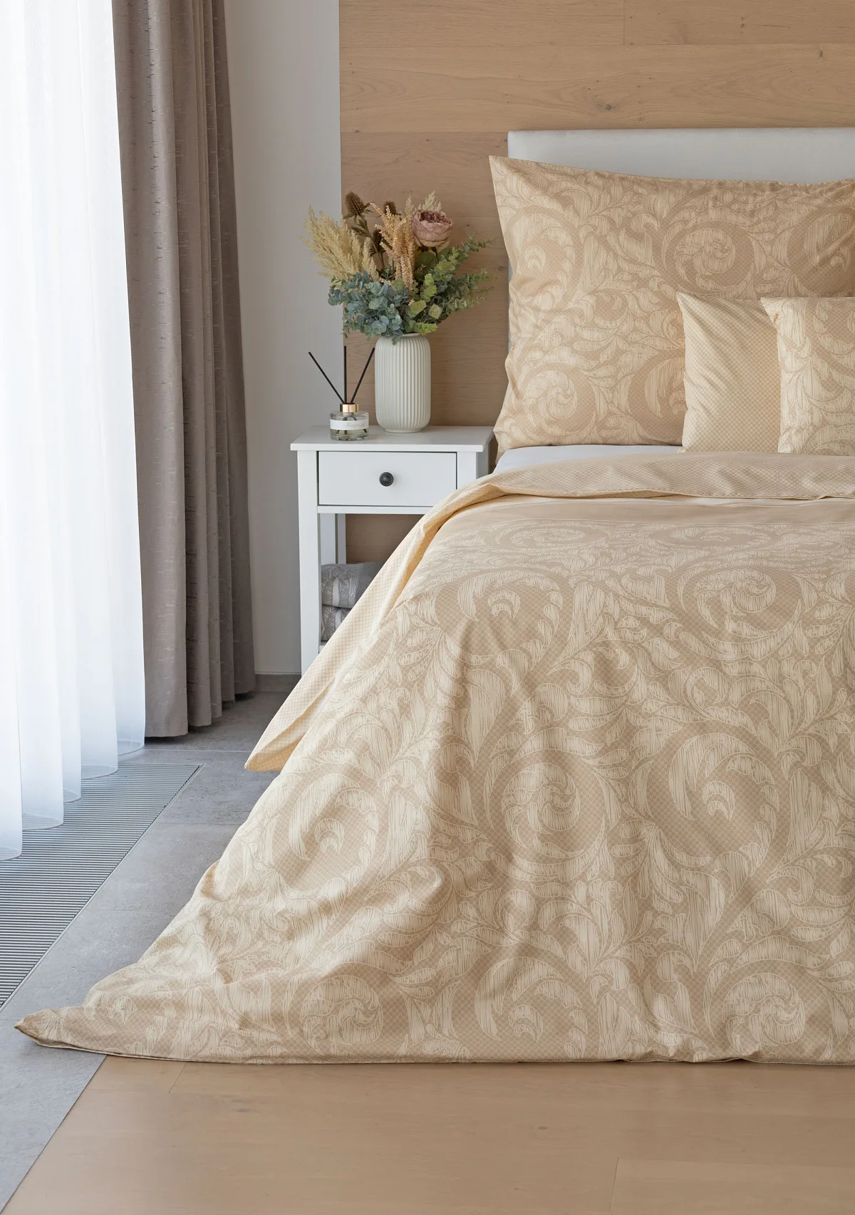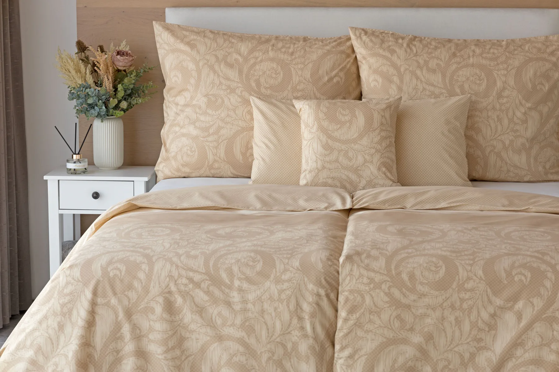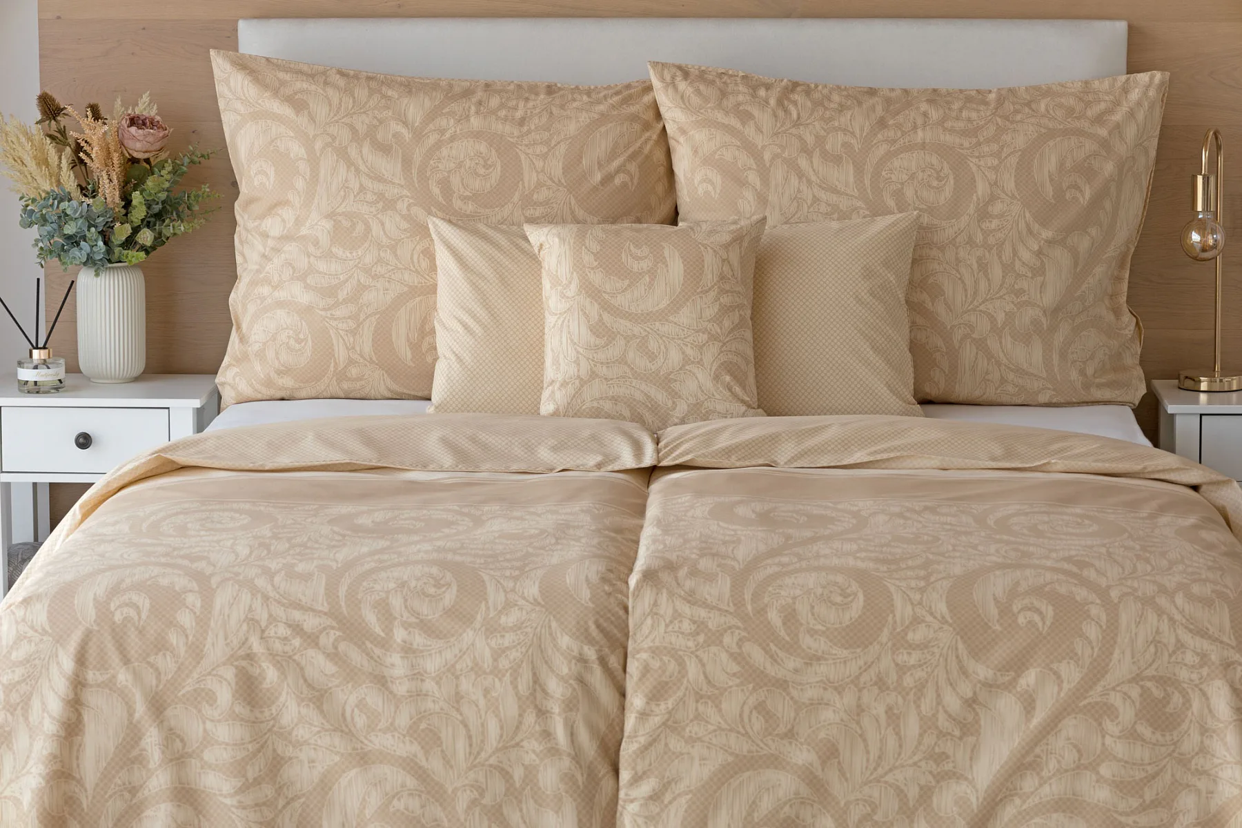 Bavlněné povlečení Bellora se postará o elegantní vzhled vaší ložnice i o vaše pohodlí. Decentní zdobný vzor v hřejivých tónech přírodní béžové a světle hnědé barvy je vhodný do moderní ložnice i do rustikálně zařízeného interiéru.