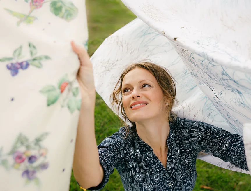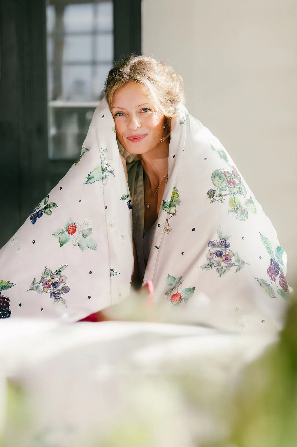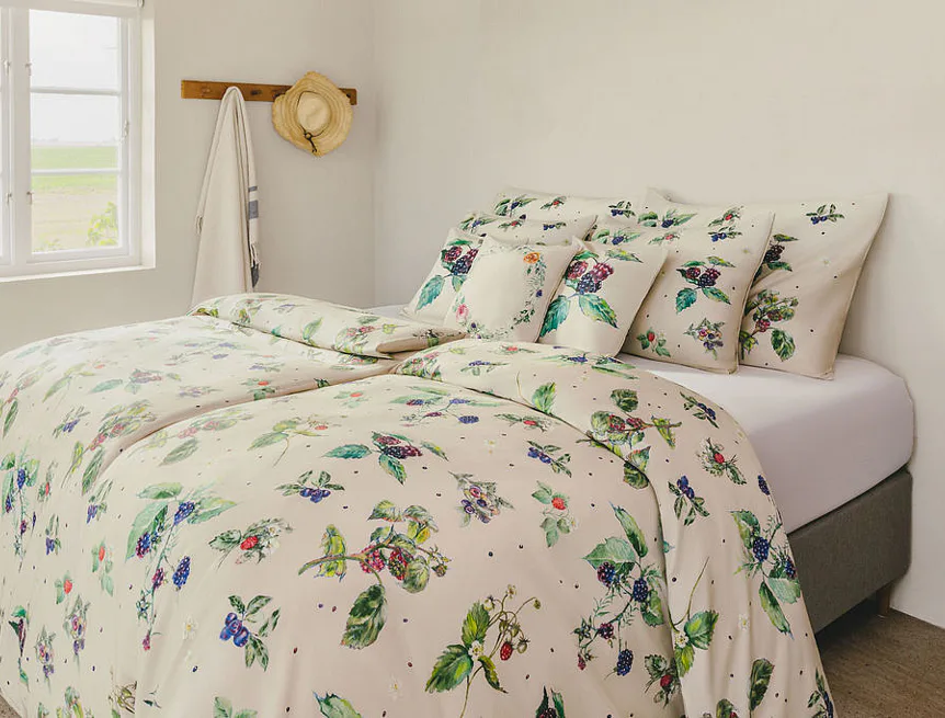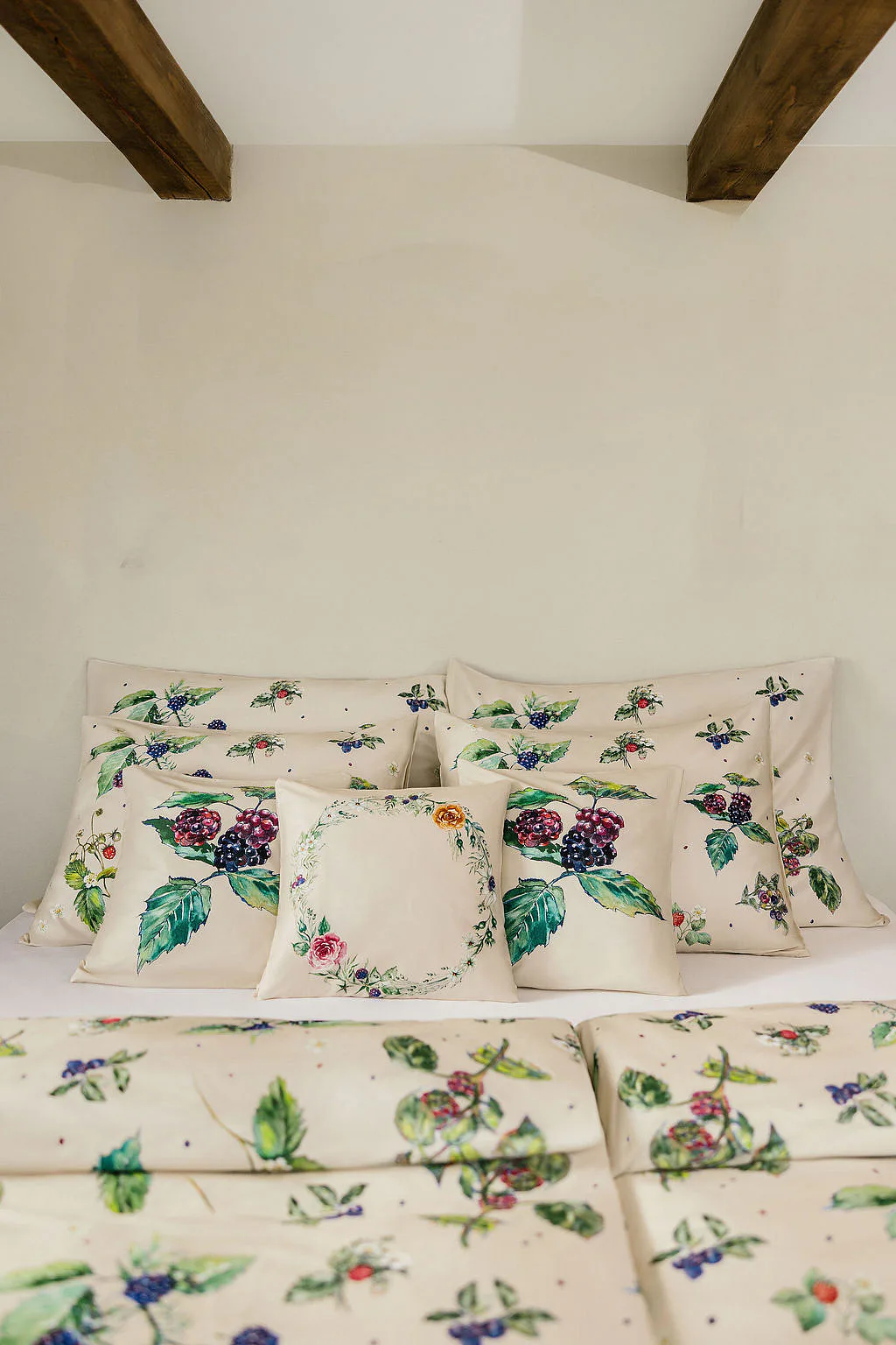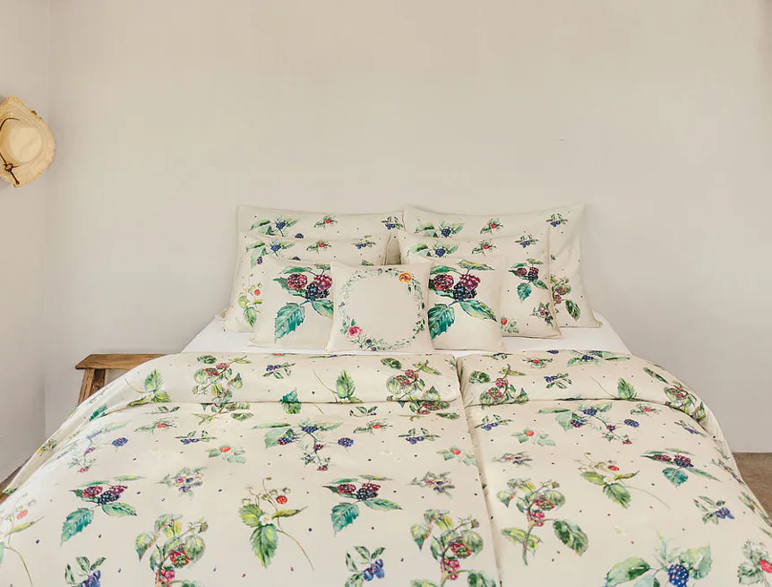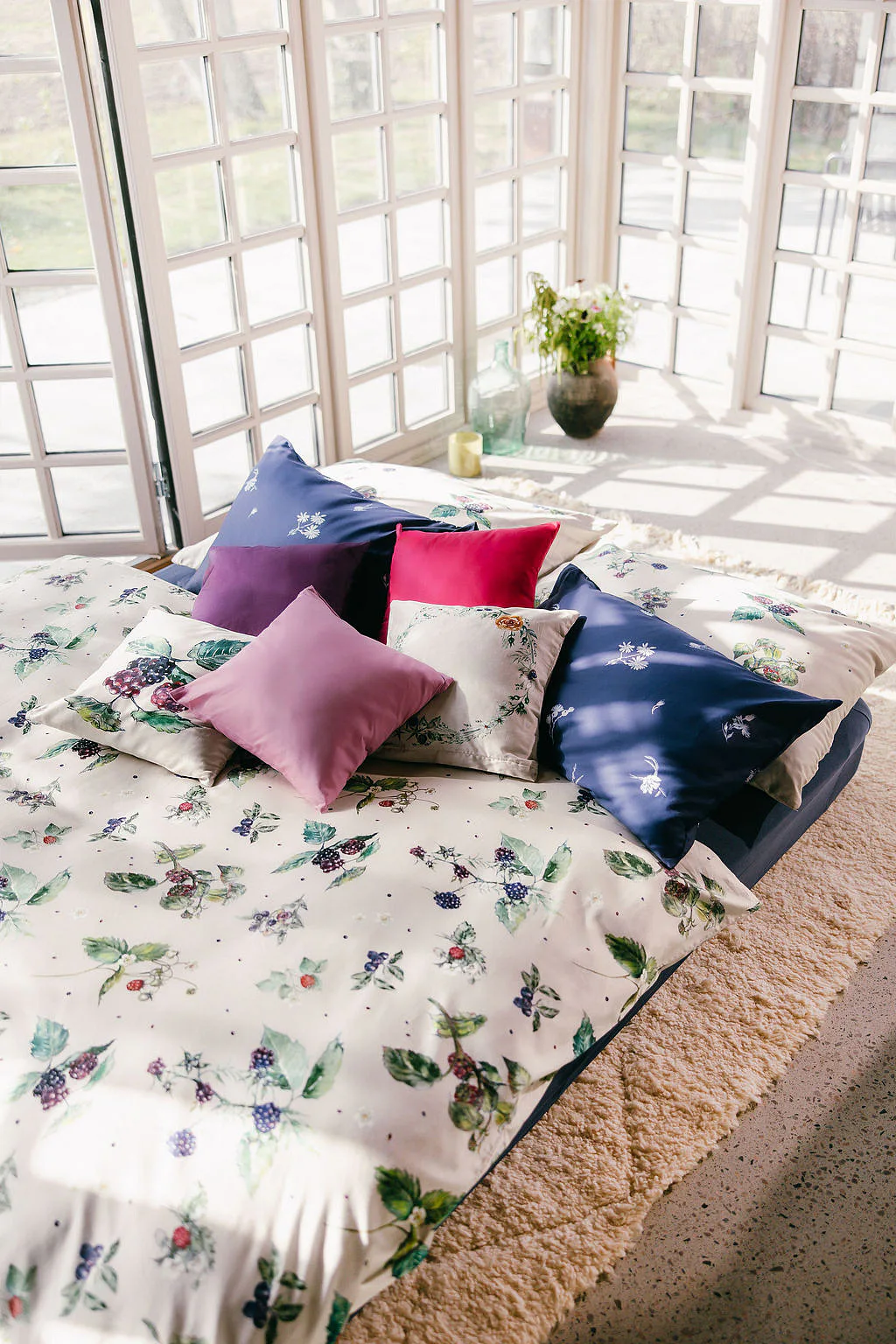 Hřejivý příběh léta i podzimní úkryt. „Útulnost hlubokých barev lesních plodů a listů“ podtrhuje béžový podklad s lehce zeleným podtónem – soudobě chic, přesto domácké. Název vychází z „berries“ a hravost barevných kuliček se krásně pojí se zemitými tóny. „Skoro jako bych si měla do postele zalézt až do jara,“ říká Zuzana – přesně tak působí: sametově, měkce, bezpečně.