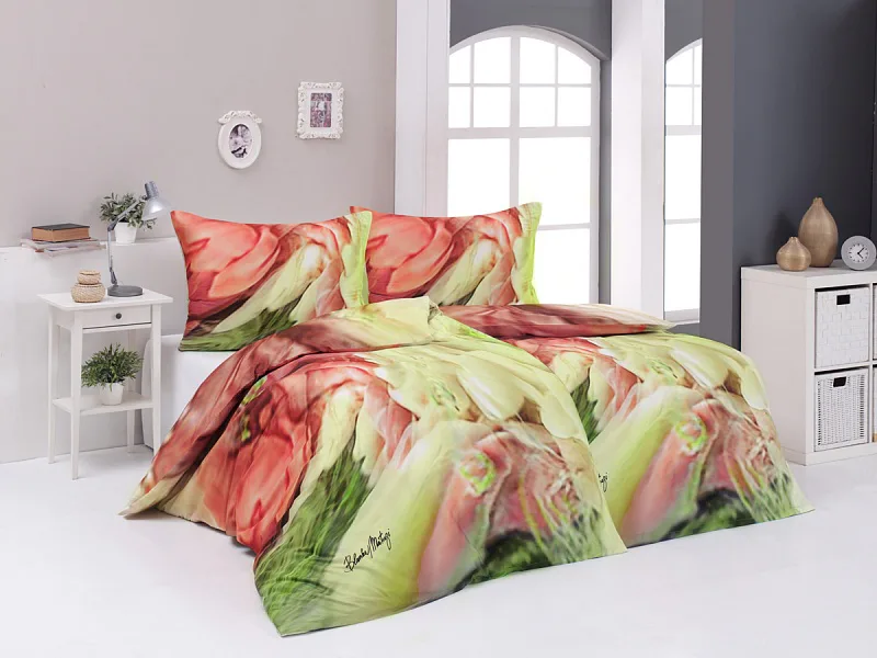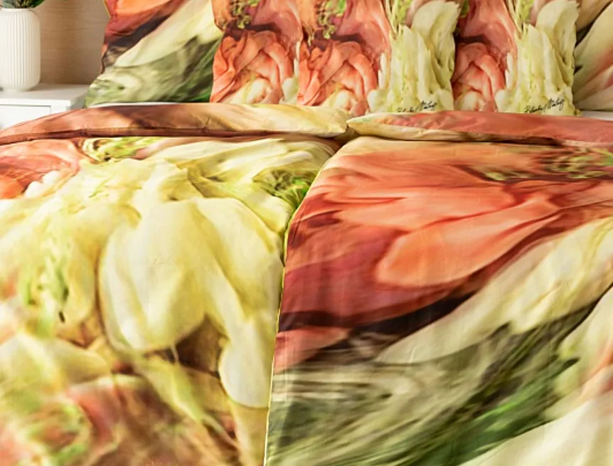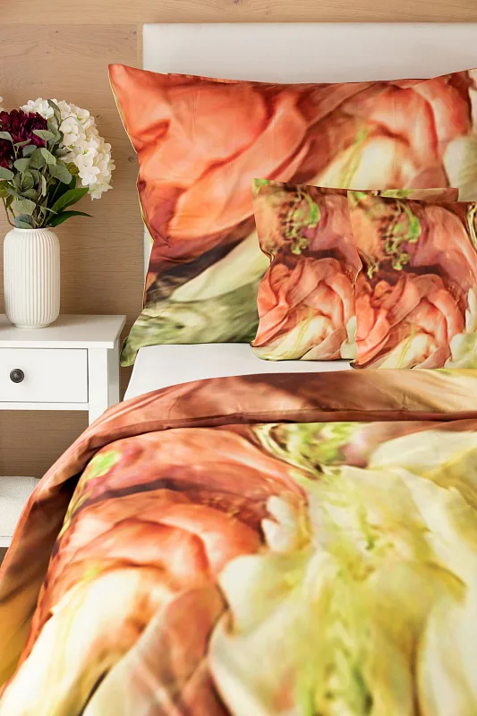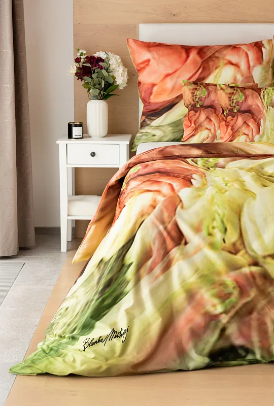 Užijte si dokonalé spojení červeno-růžových tónů s odstíny zelené v abstraktním květinovém vzoru povlečení Blooming. Zářivé barvy a propracované detaily činí z luxusního povlečení osobité umělecké dílo.