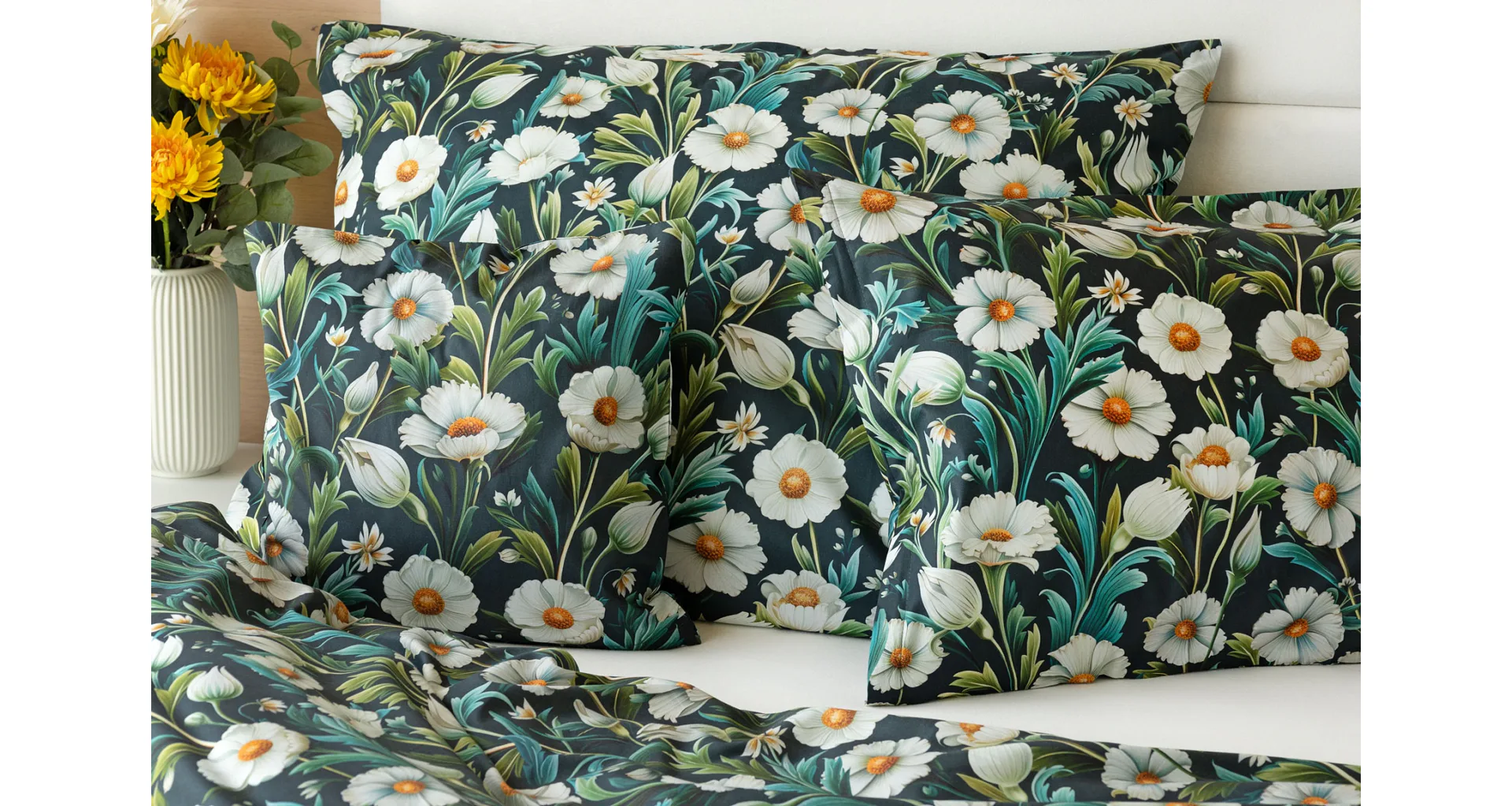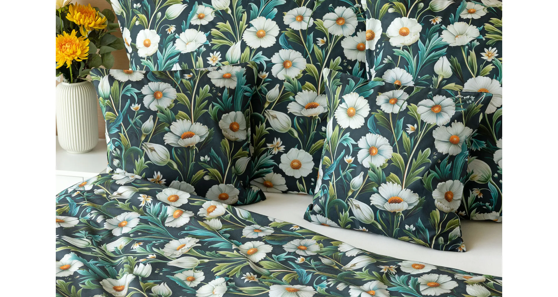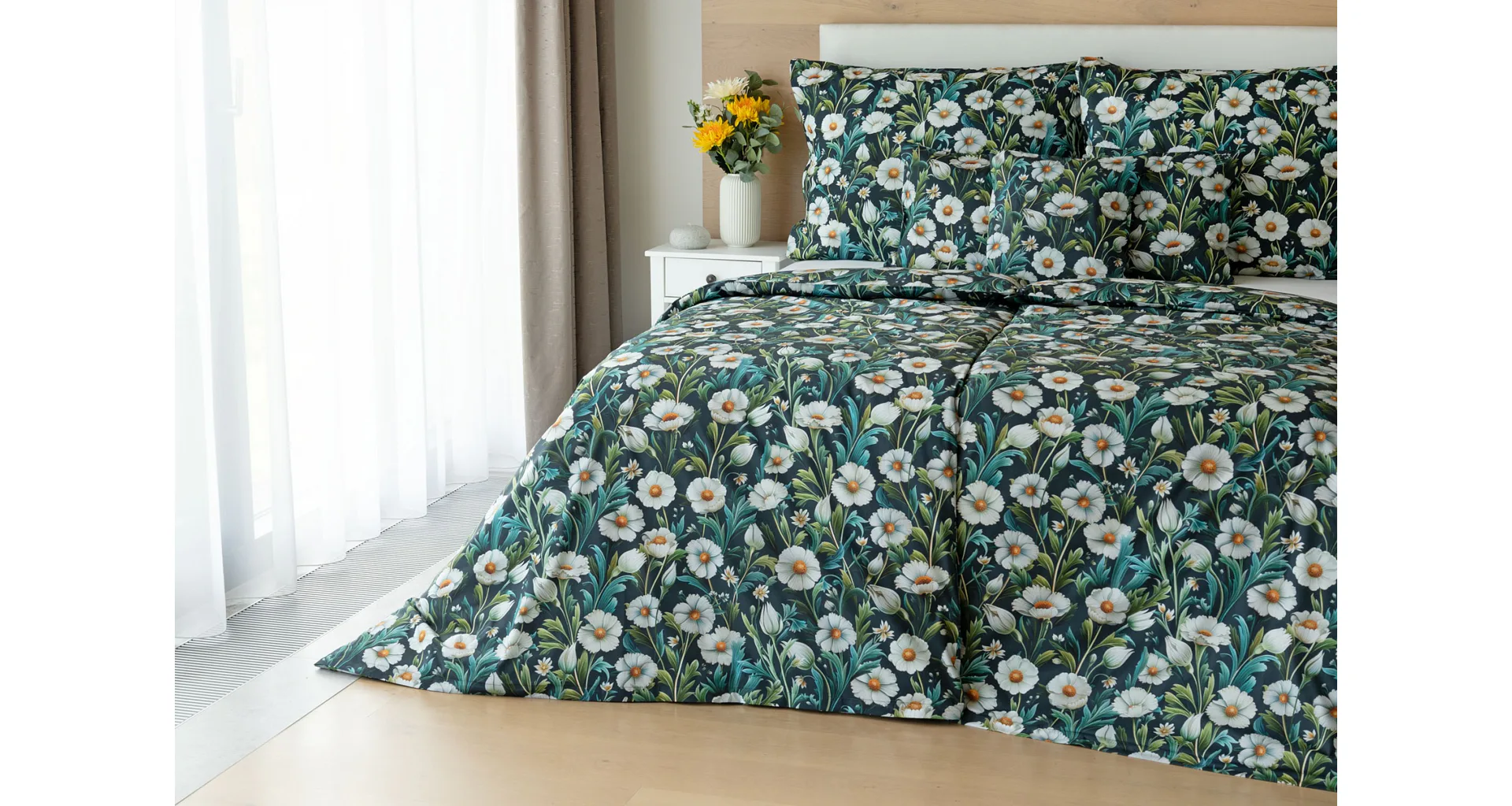 Vychutnejte si uklidňující harmonii ložního povlečení Bonnie. V okouzlujícím květinovém vzoru se snoubí pestrá paleta zelených tónů, které vynikají mezi drobnými kvítky na temně modrozeleném podkladu. Díky nejmodernější digitální tiskové technologii se povlečení pyšní precizním detailem potisku.