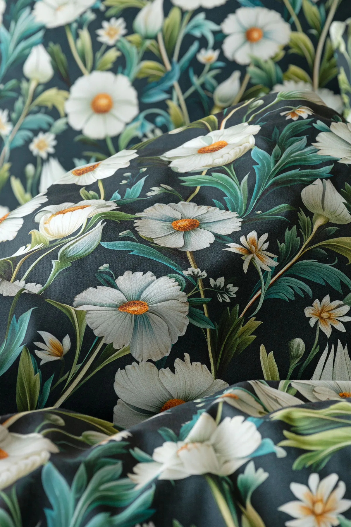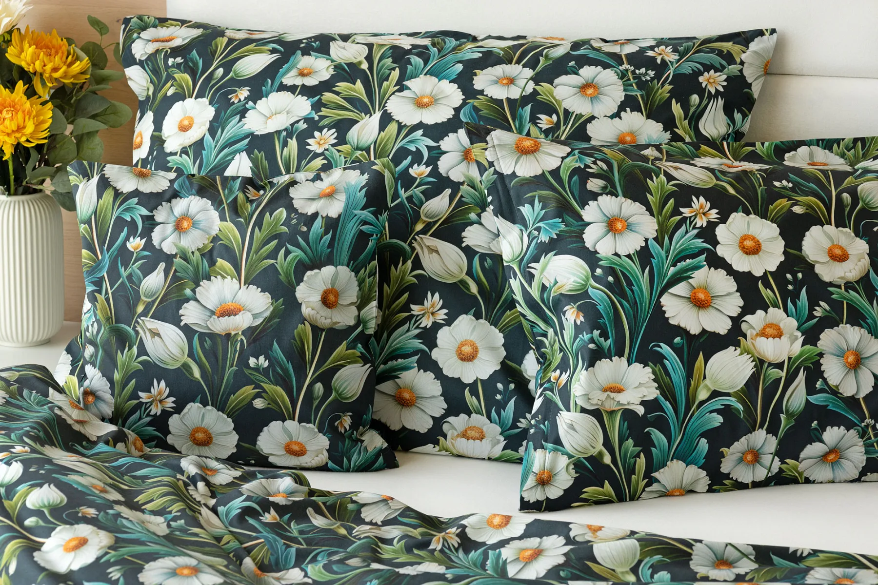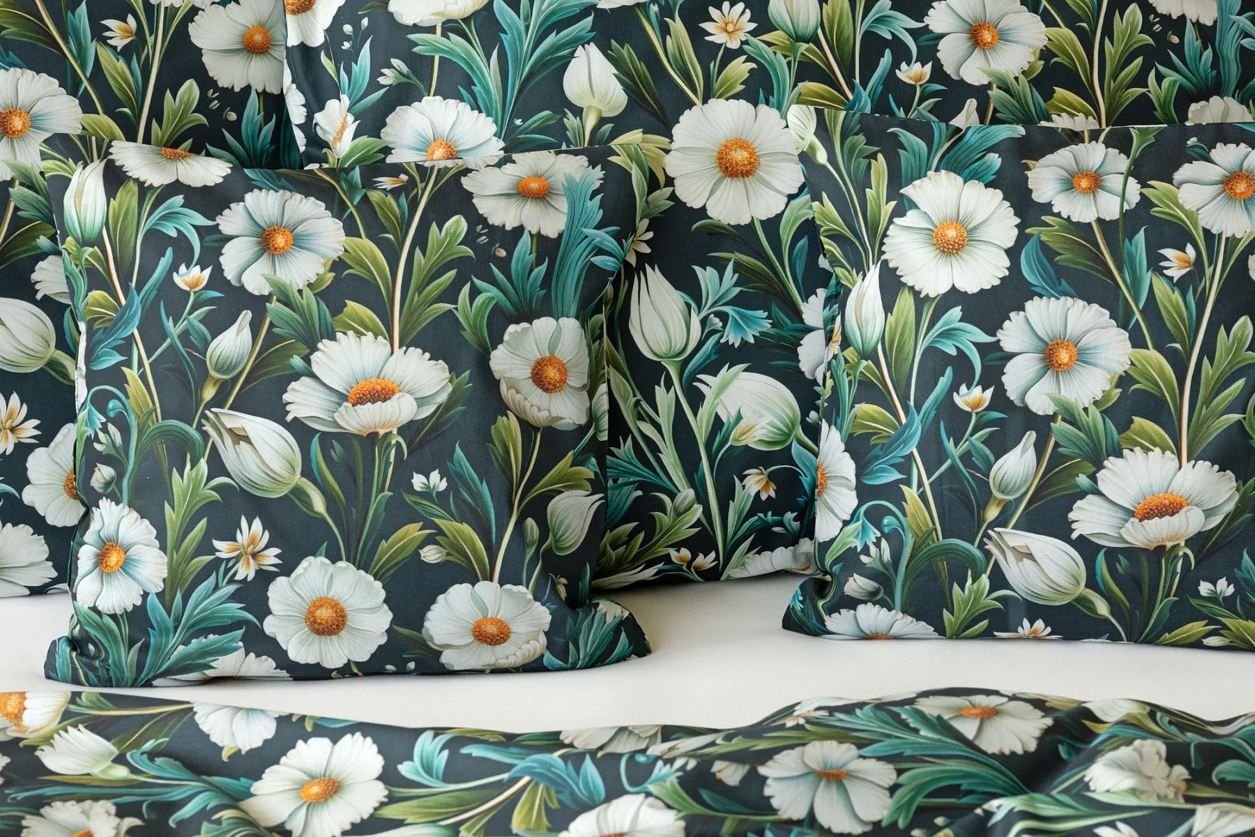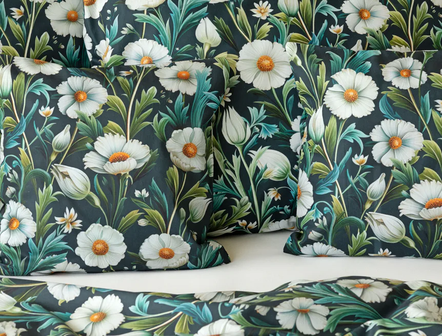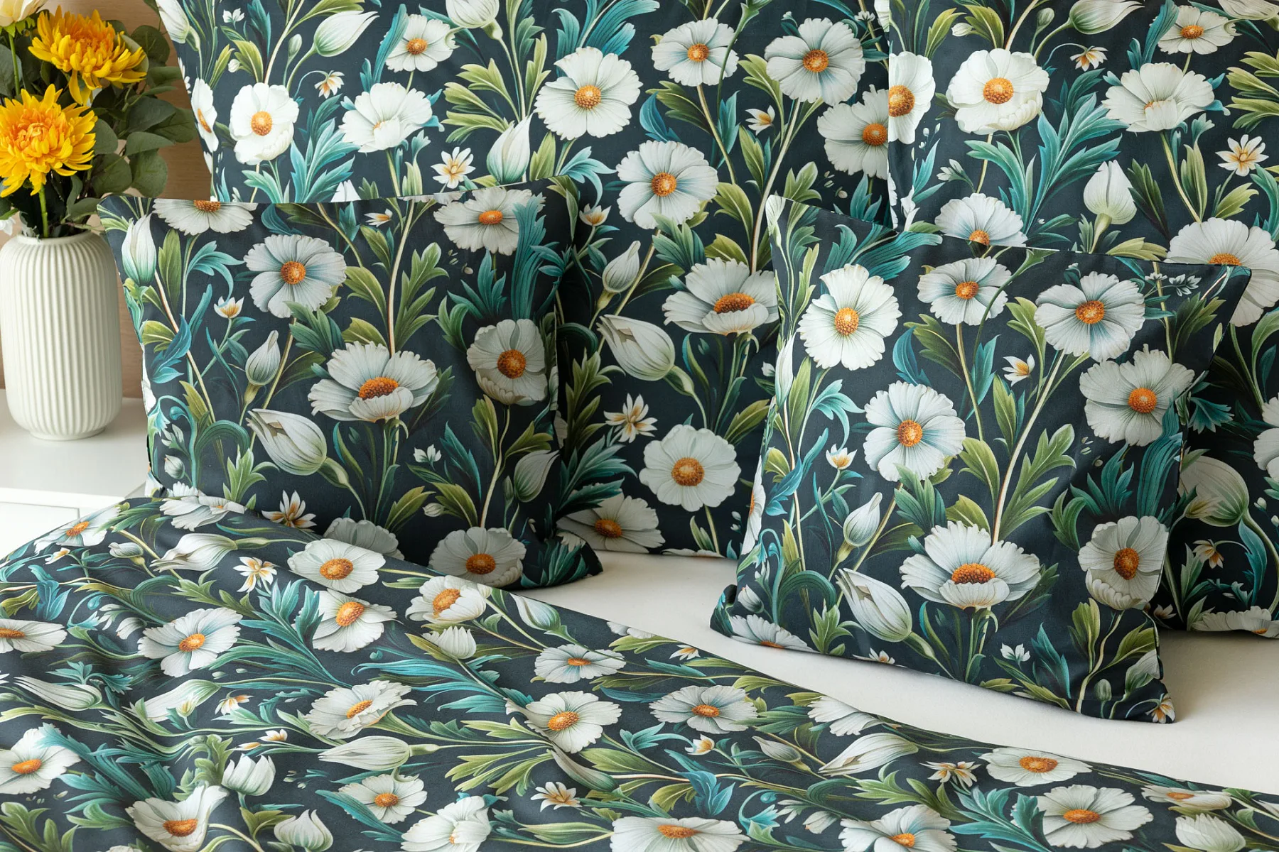 Vychutnejte si uklidňující harmonii ložního povlečení Bonnie. V okouzlujícím květinovém vzoru se snoubí pestrá paleta zelených tónů, které vynikají mezi drobnými kvítky na temně modrozeleném podkladu. Díky nejmodernější digitální tiskové technologii se povlečení pyšní precizním detailem potisku.