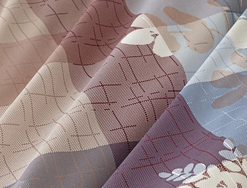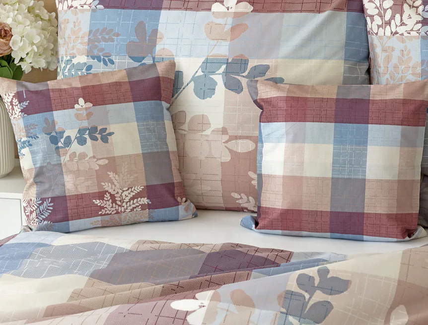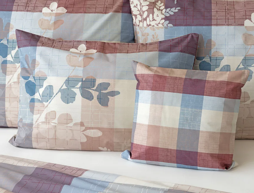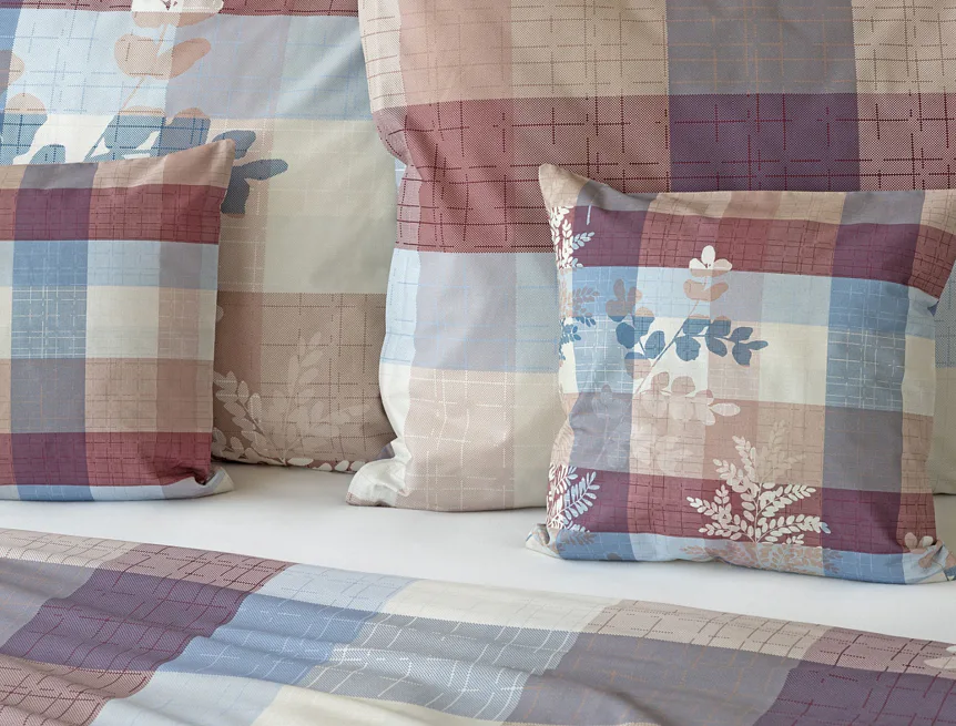 Povlak na přikrývku je z obou stran stejný. Povlak na polštář zachycuje na spodní straně pouze károvaný vzor, vrchní stranu zdobí navíc florální motiv a malé logo "M" v pravém dolním rohu. Povlečení je opatřeno komfortním zipovým uzávěrem
