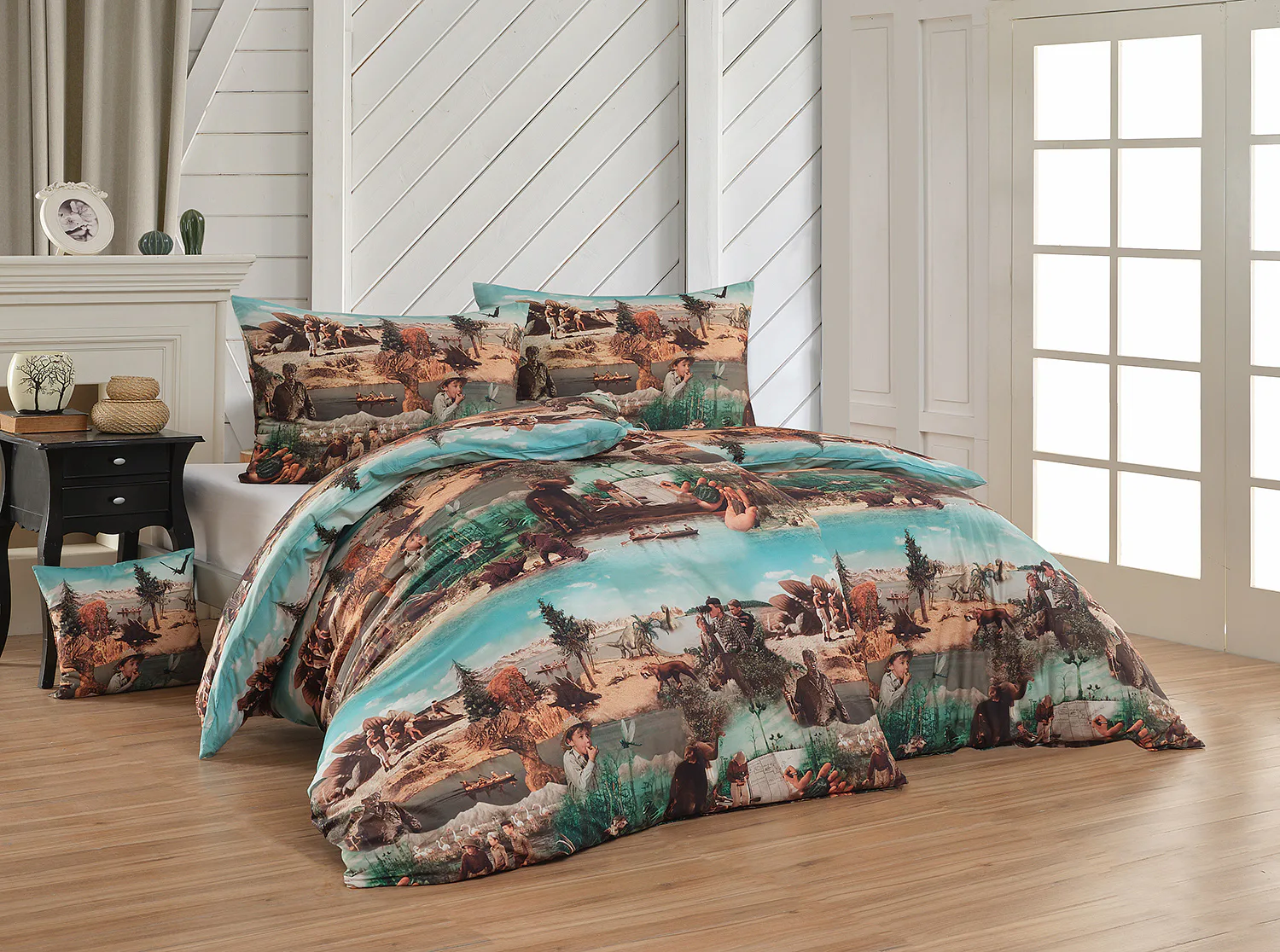Vydejte se na napínavou výpravu do světa dávných dob s autorským motivem Cesta do pravěku, který promění každý dětský či studentský pokoj v místo plné fantazie a dobrodružství. Toto povlečení vybízí k objevování, snění i vlastním příběhům, které začínají pokaždé, když se uložíte ke spánku. O precizní detaily obrázků ze slavného československého filmu režiséra Karla Zemana se postarala nejmodernější digitální tisková technologie.