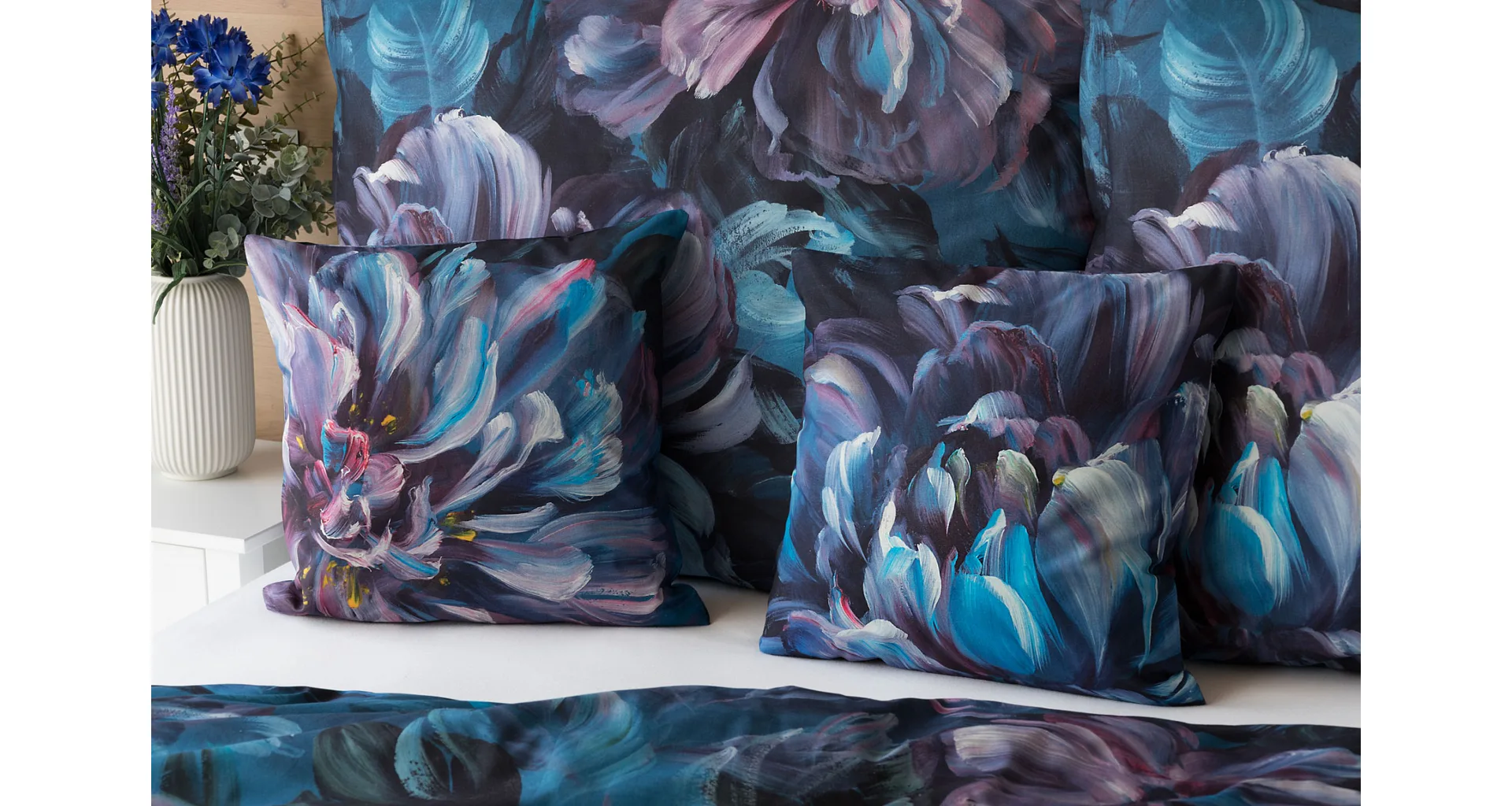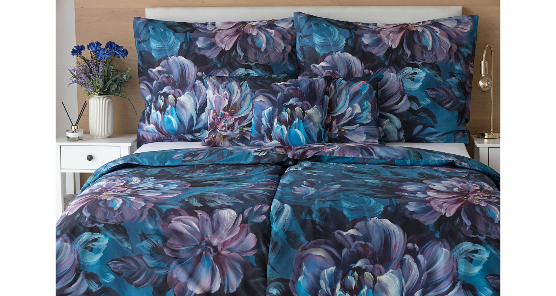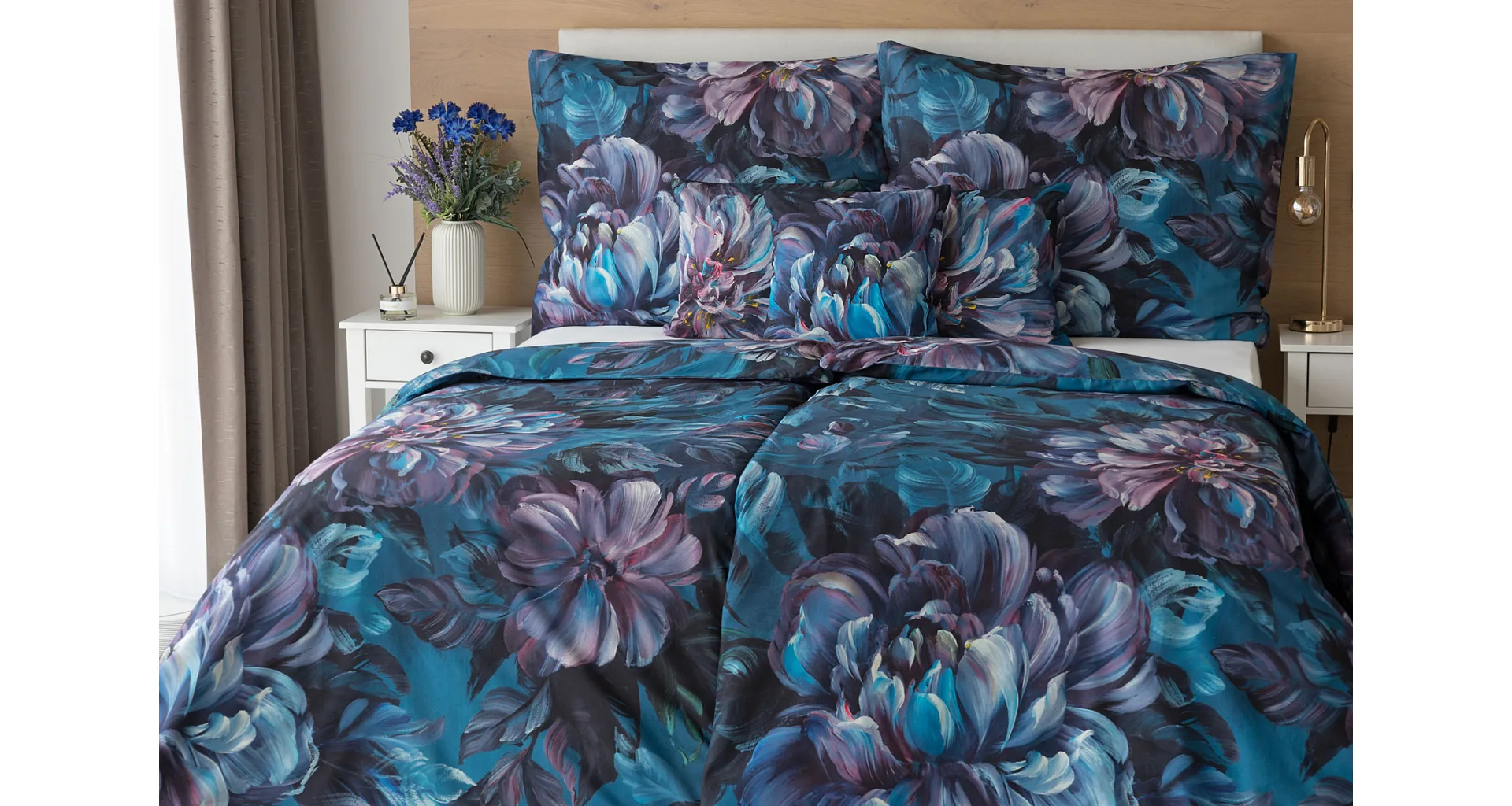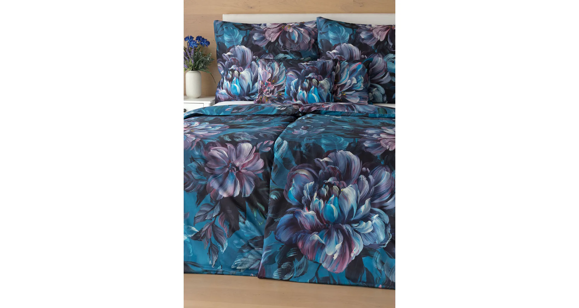 Vychutnejte si magické souznění barev v květinové malbě, která je v jedinečném detailu přenesena na bavlněné ložní povlečení Christine. Převažující petrolejové tóny hravě doplňuje paleta růžových a fialových odstínů. Díky nejmodernější digitální tiskové technologii se povlečení pyšní precizním detailem potisku.